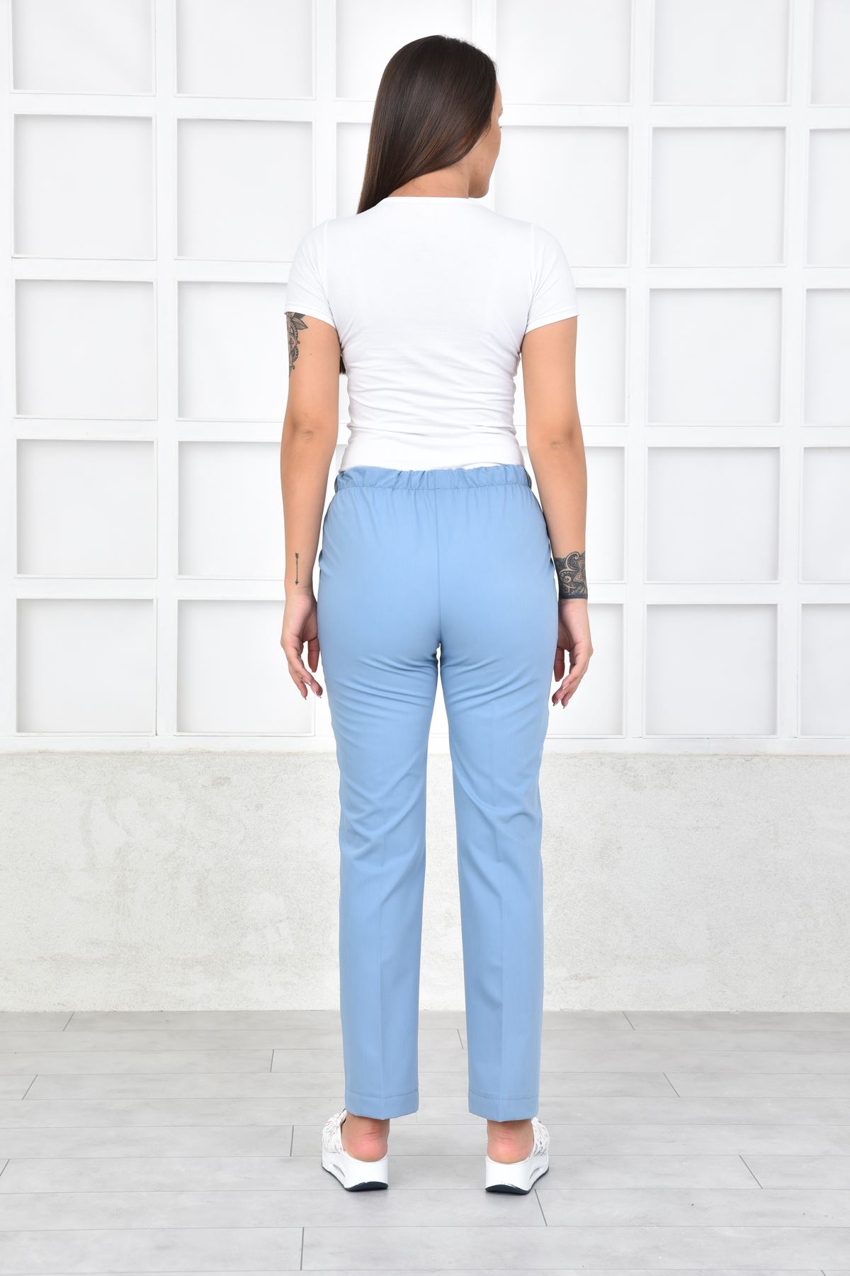 Kadın Medikal Pantolon - Bulut Mavi, ferah Bulut Mavi rengiyle sakin ve profesyonel bir stil sunar. Yumuşak viskon kumaşı %11-14 rutubet toplar, %80- su emer ve %15-30 esneme oranı ile gün boyu hareket kabiliyeti sağlar. Yoğun çalışma temposunda uzun süre rahatlık ve nefes alabilirlik sağlar.