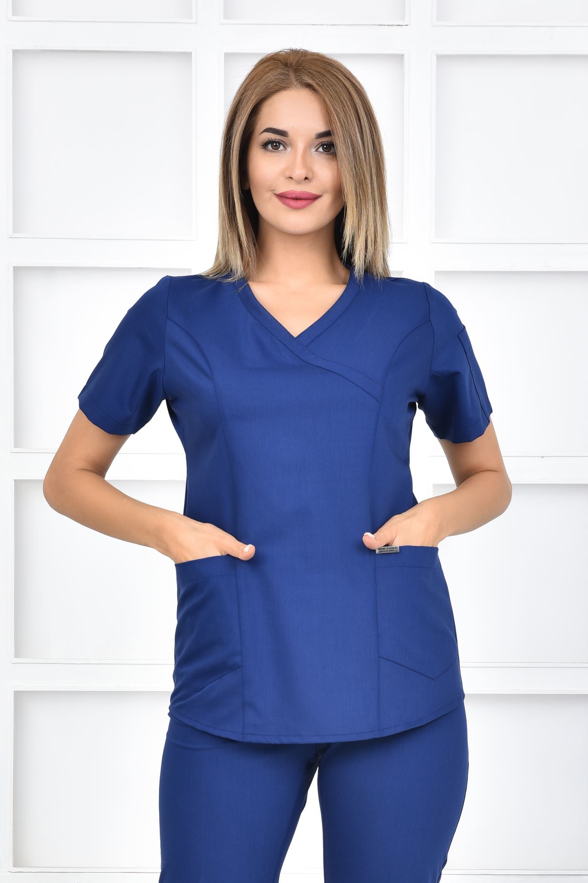 Green kadın üst forma, İndigo rengiyle medikal giyimde sofistike bir seçenek sunar. Green koleksiyonunun minimal çizgileri, nefes alabilir viskon kumaşla desteklenir. Kumaş %11-14 rutubet toplar, %80’e kadar su emer ve %15-30 esneme oranı sayesinde konforlu bir hareket kabiliyeti sağlar.