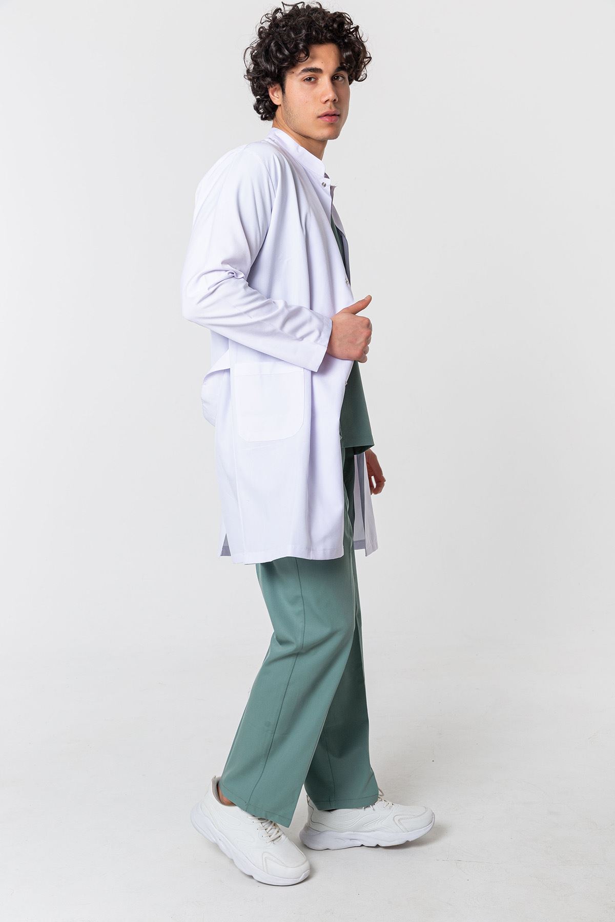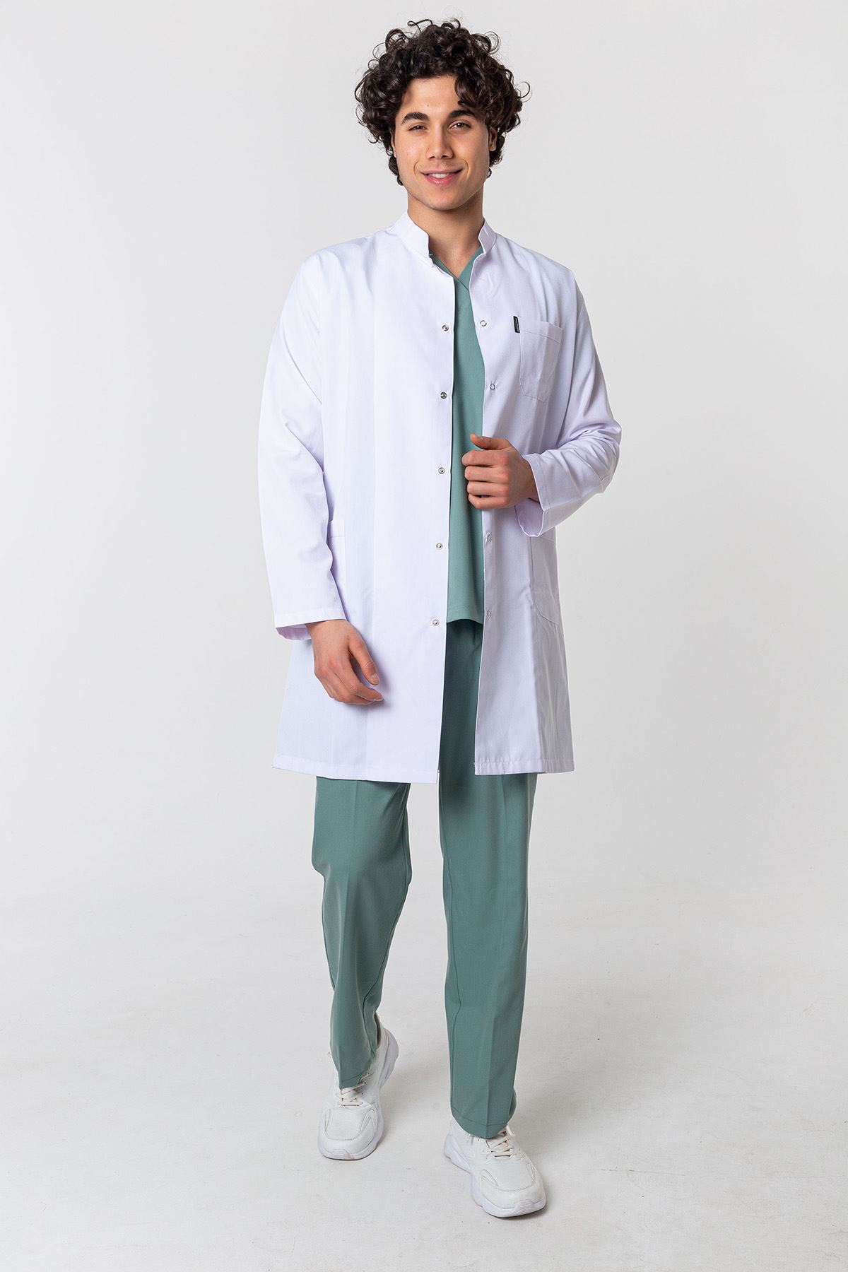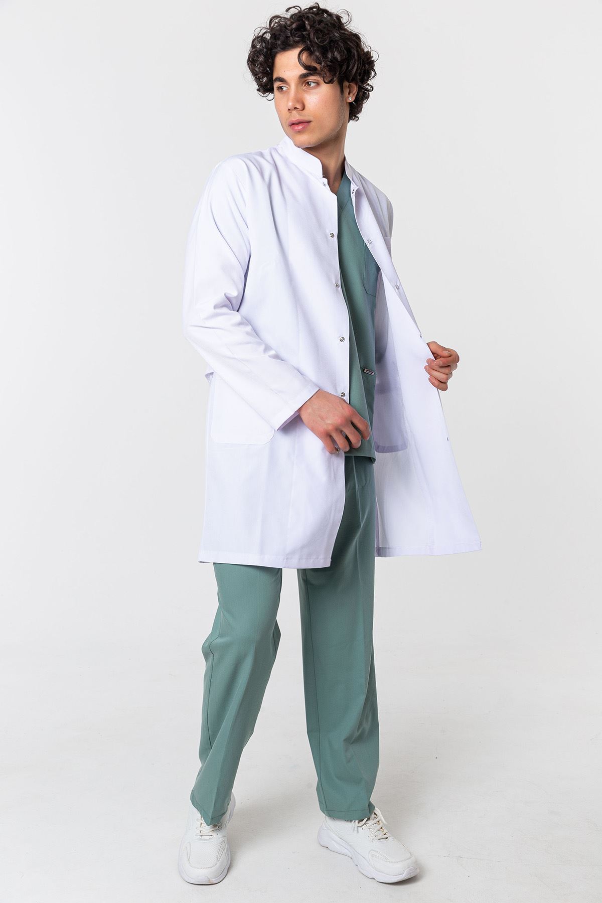 Hakim Yaka Erkek Medikal Önlük - Beyaz; klasik şıklığı, pratik detayları ve ergonomik kalıbıyla öne çıkar. Endüstriyel yıkamalara uygun yapısı sayesinde sık yıkamalarda bile formunu kaybetmez. Doktorlar, diş hekimleri ve teknisyenler için işlevsel ve profesyonel bir tercihtir. Günlük kullanımda hem şıklık hem de konforu bir arada sunar.