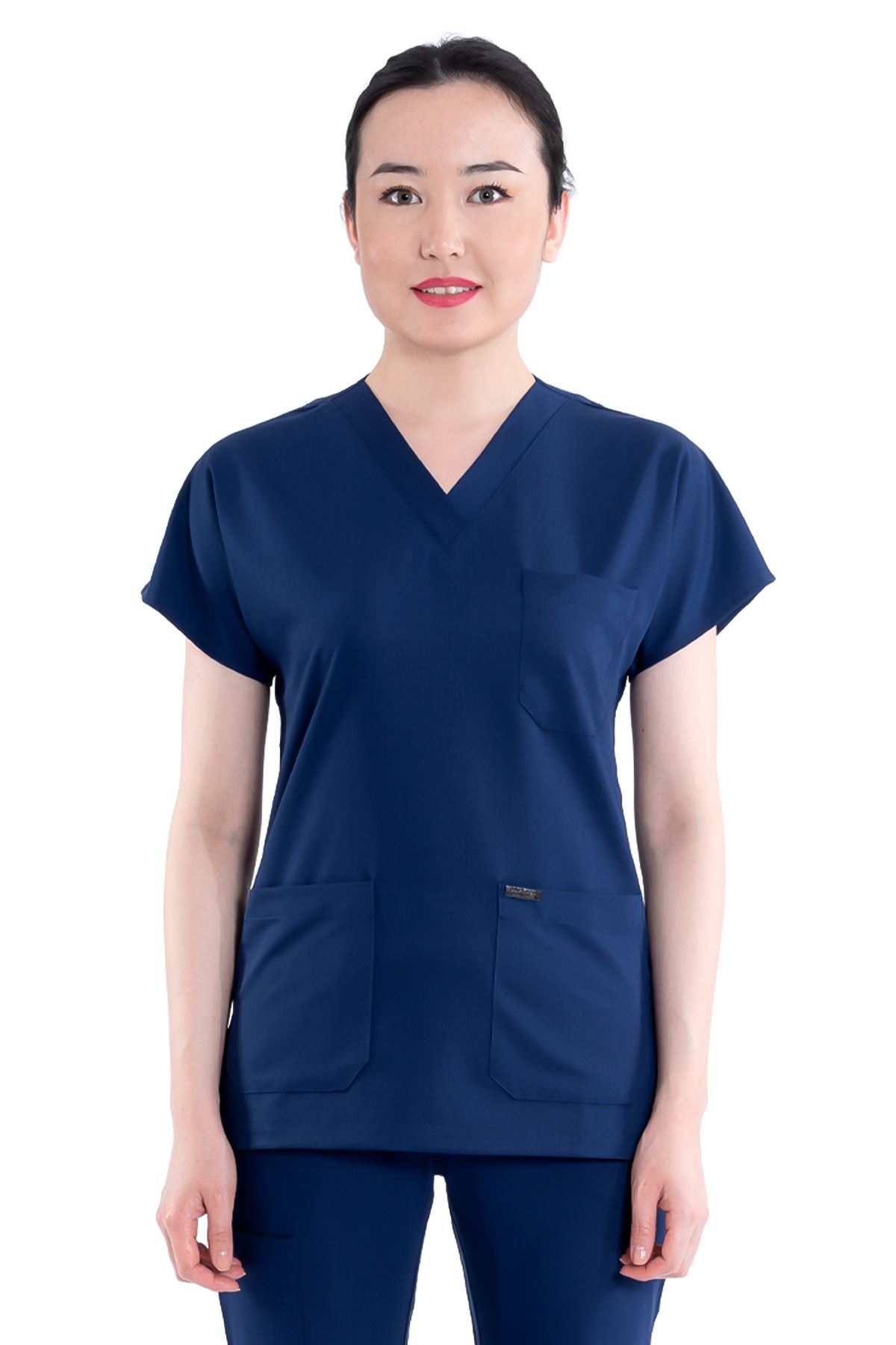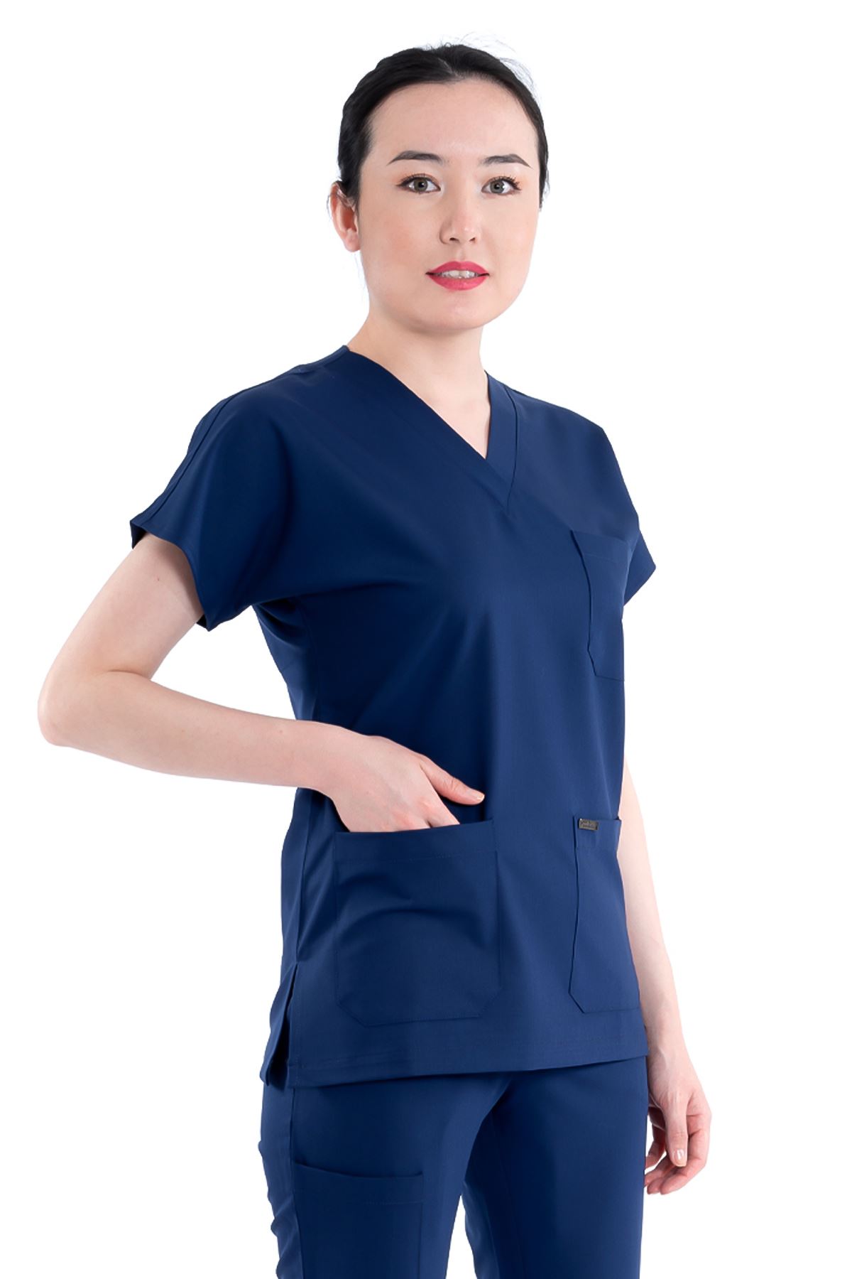 Greys Kadın Medikal Üst - İndigo, zarif ve dinamik rengiyle sağlık çalışanlarına farklı bir şıklık kazandırır. Viskon karışımlı kumaşı %11-14 rutubet toplar, %80’e varan su emiciliği ve %15-30 esneme oranıyla rahat ve esnek bir kullanım sağlar. Nefes alabilir yapısı sayesinde uzun vardiyalarda ferah bir deneyim sunar.