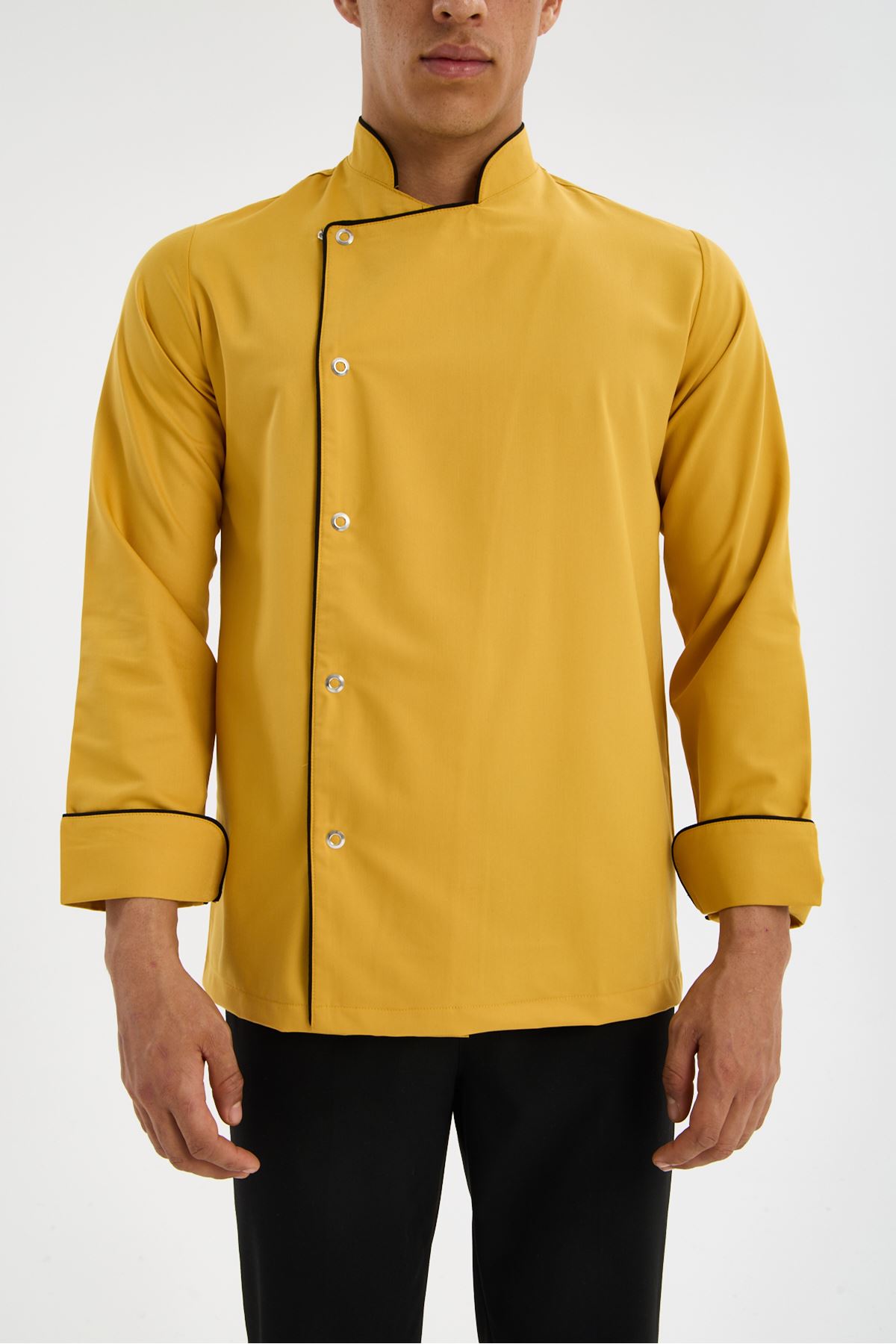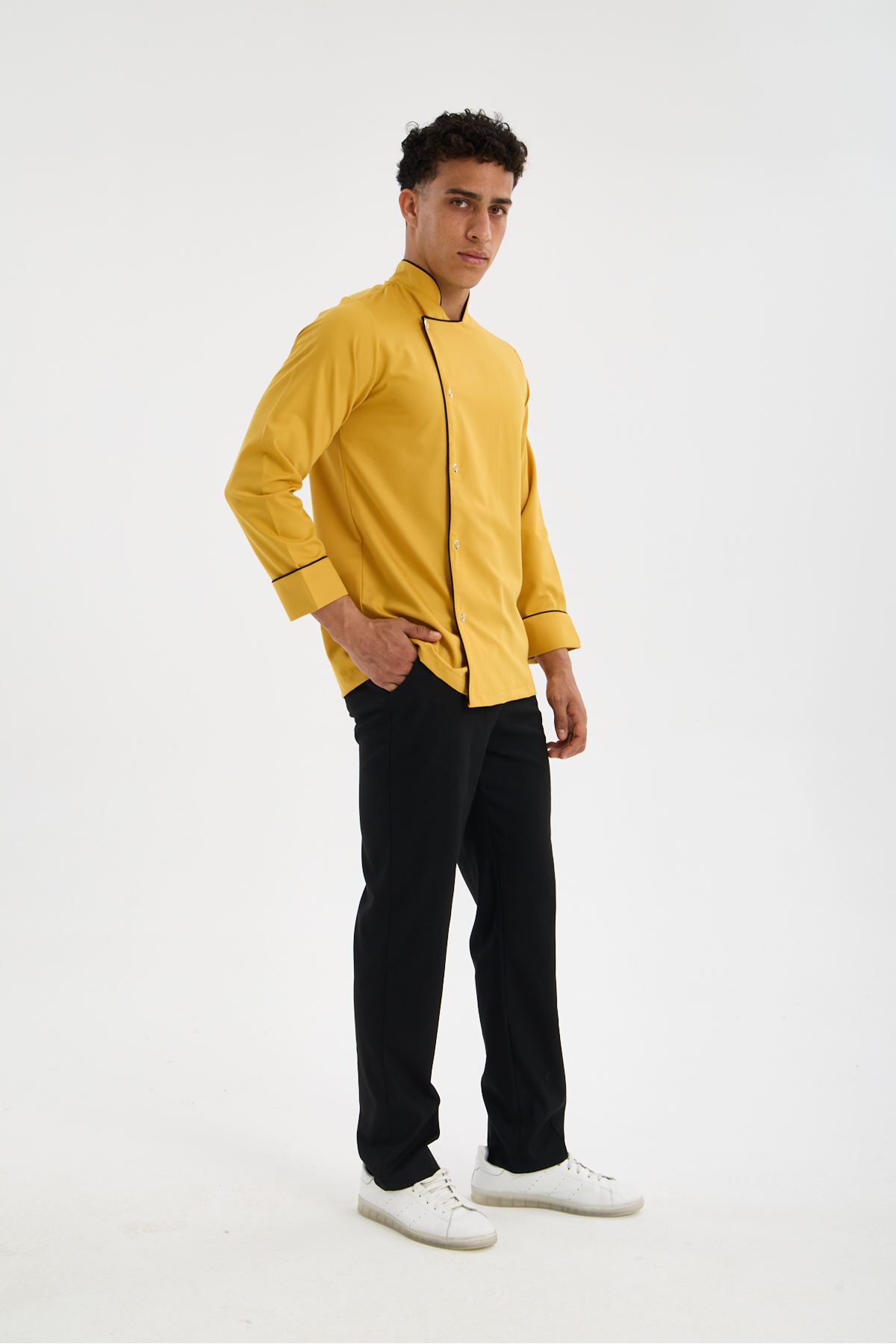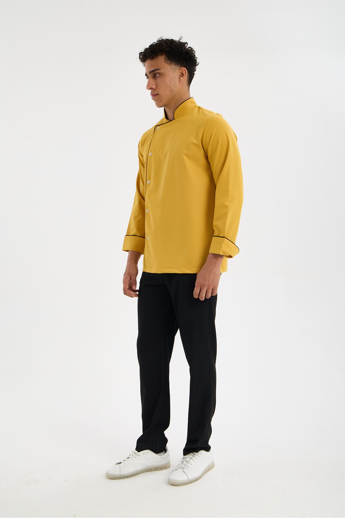 Erkek Chef Üniforma Takım Hardal Sarı-Siyah