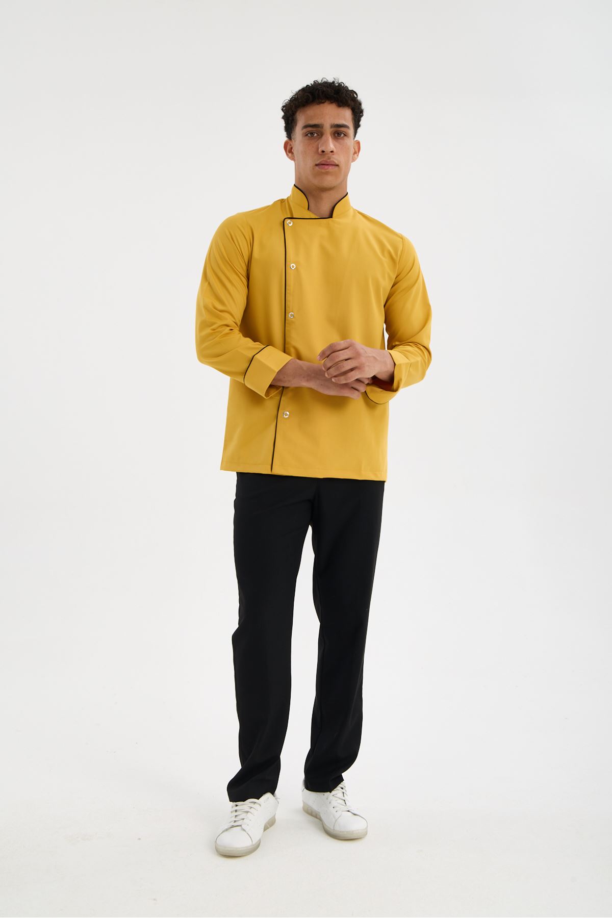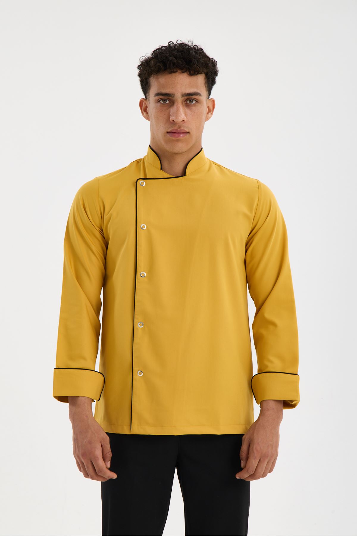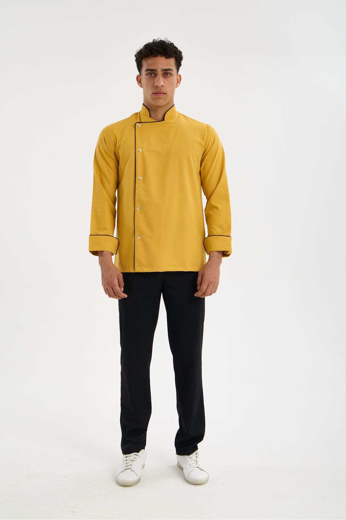 Erkek Chef Üniforma Takım Hardal Sarı-Siyah