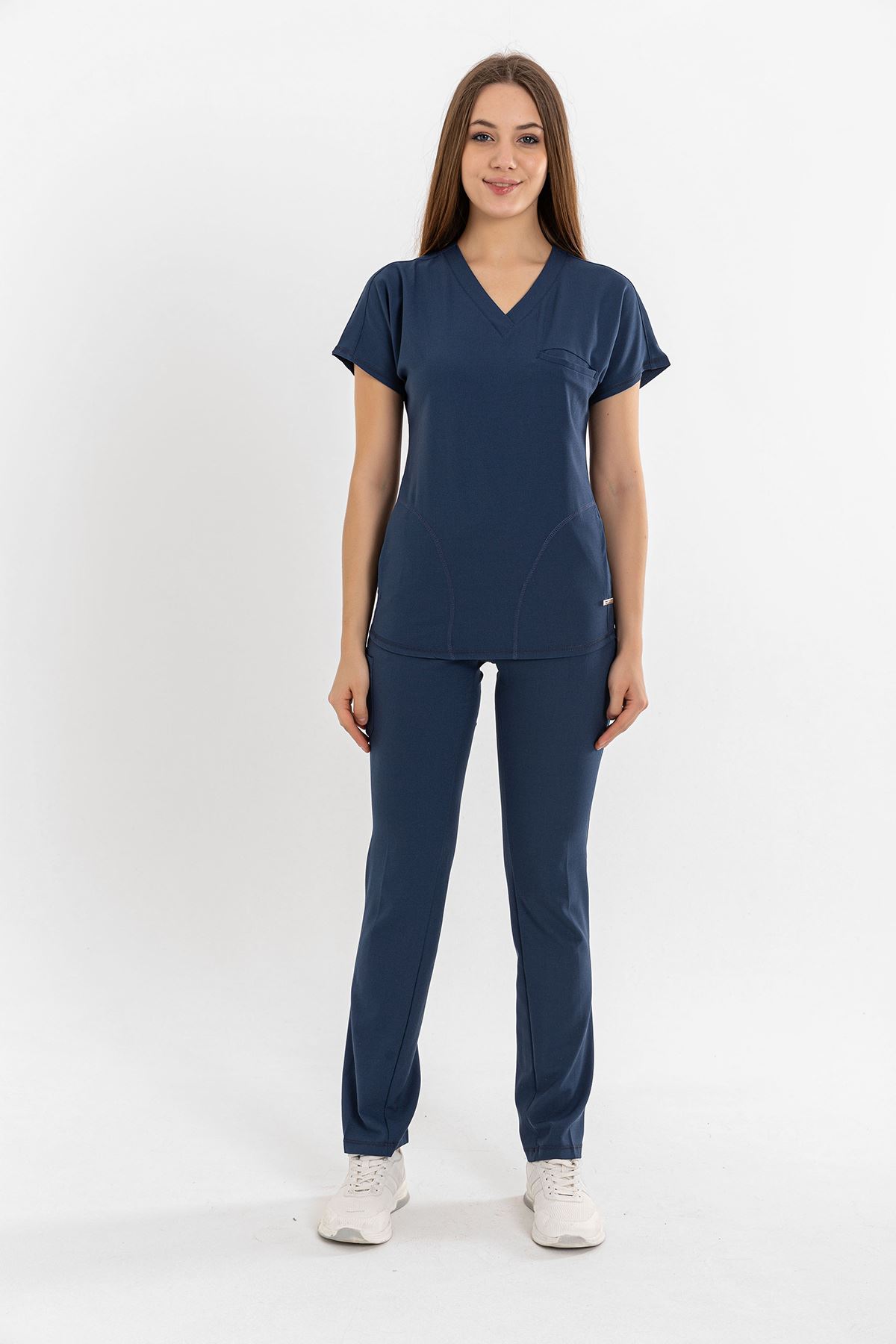 Combing Comfort Kadın Medikal Takım İndigo; zarif görünümü, dayanıklı kumaşı ve rahat kalıbıyla uzun süreli kullanıma uygundur. Endüstriyel yıkamalara dayanıklıdır ve formunu kaybetmez. Cerrahlar, doktorlar ve hemşireler için güvenilir bir alternatif olup modern çizgileriyle profesyonel şıklığı destekler.