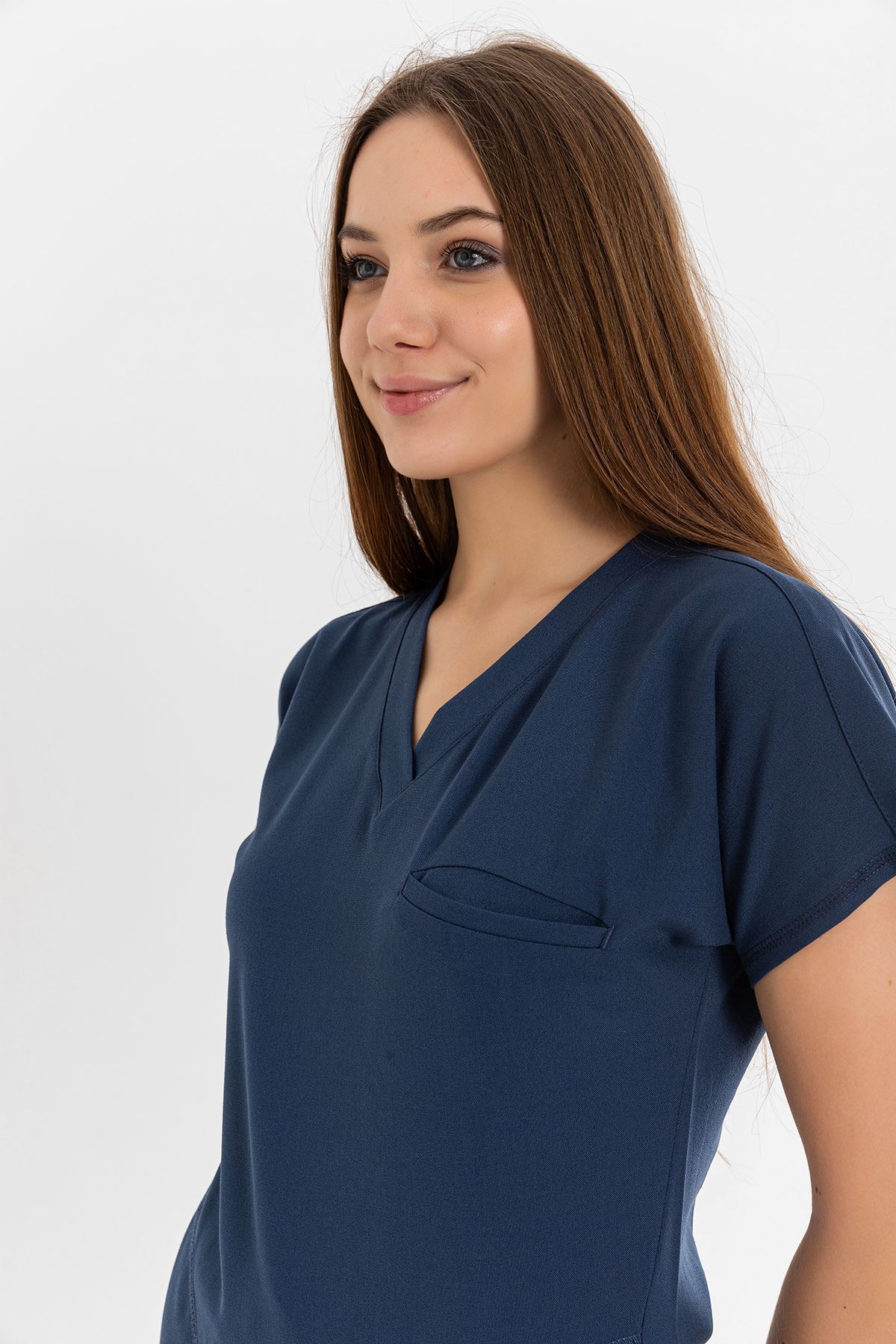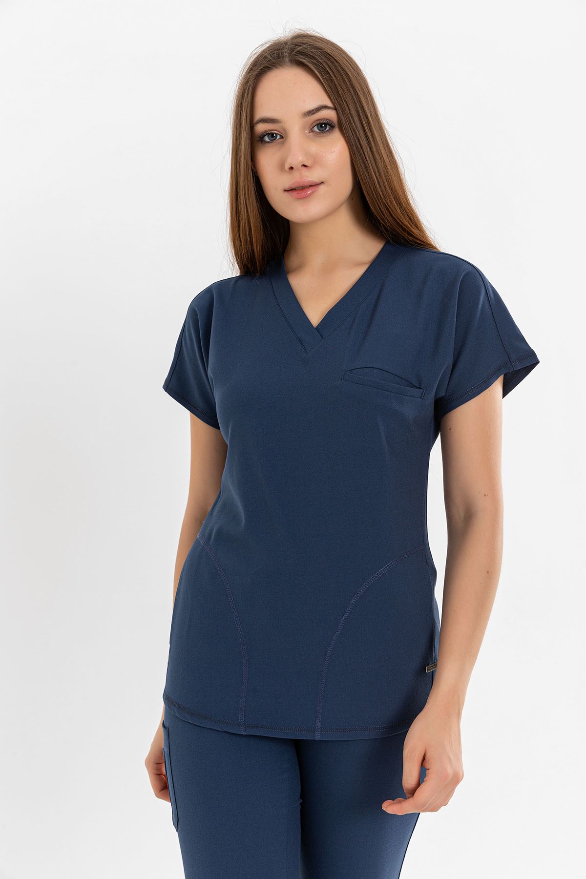 Likralı viskon karışımıyla esnek, hafif ve rahattır. İndigo tonu steril ve profesyonel bir görünüm kazandırır. Dayanıklı yapısı uzun vadede formunu korur. Klinik ve hastane ortamlarında güvenle tercih edilebilir.