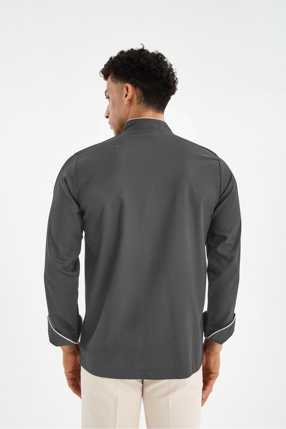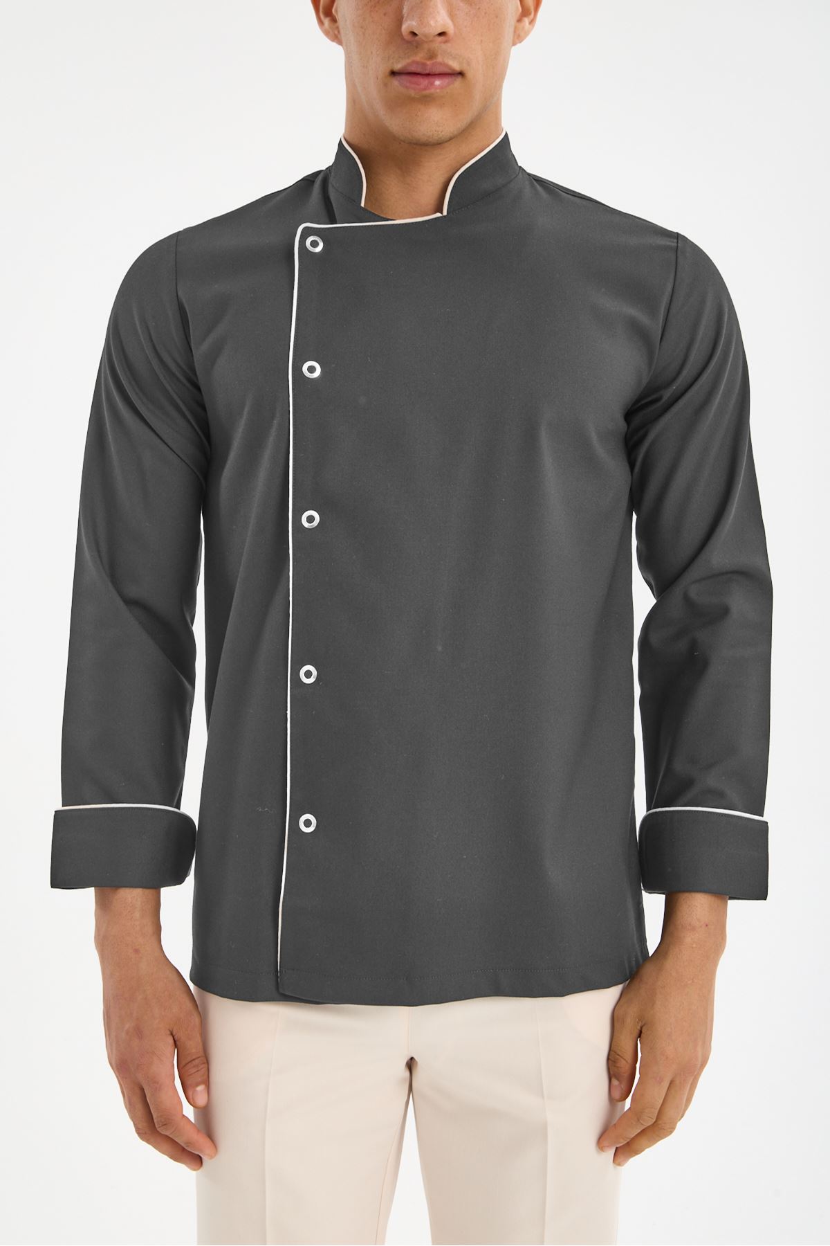 Erkek Chef Üniforma Tek Üst Füme Gri