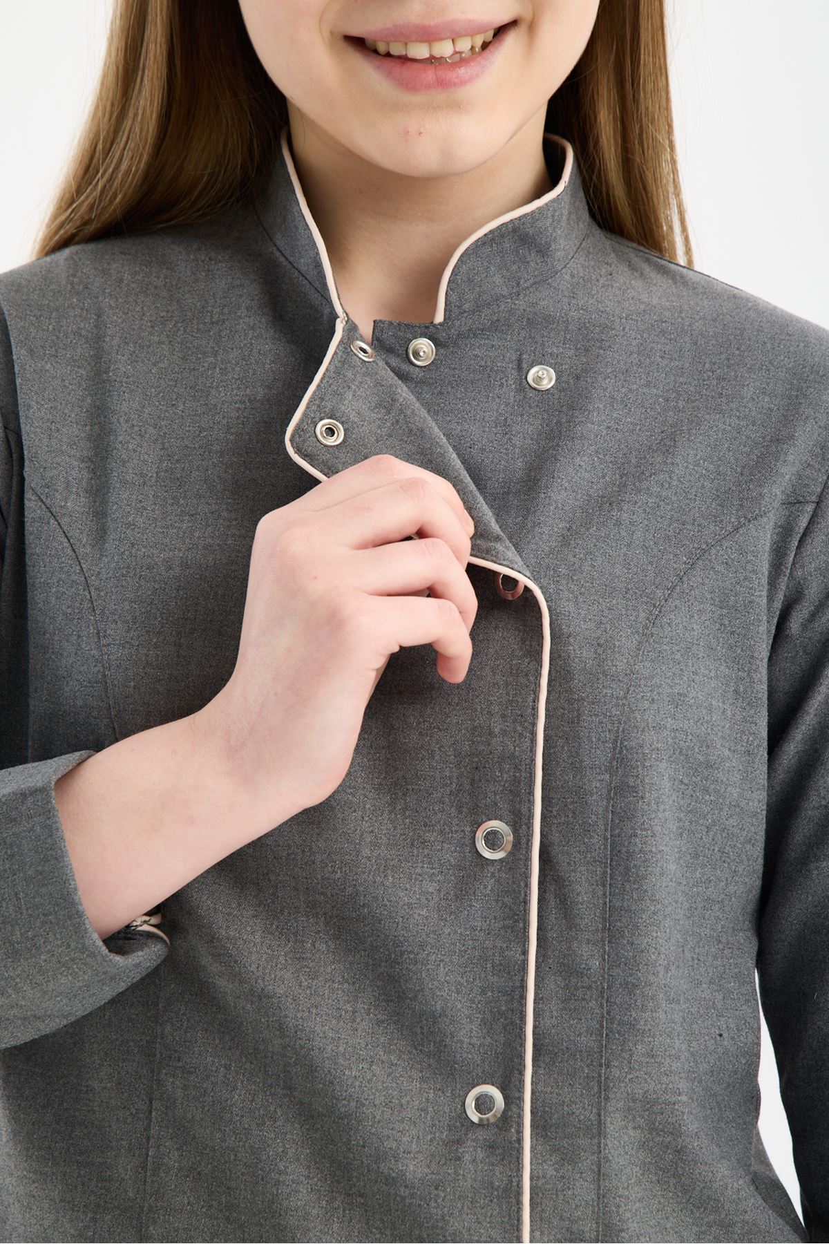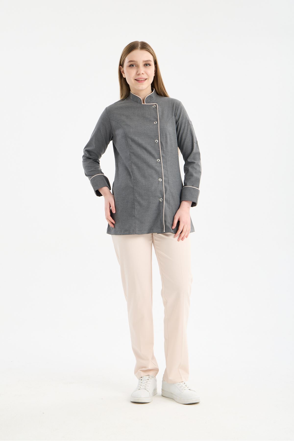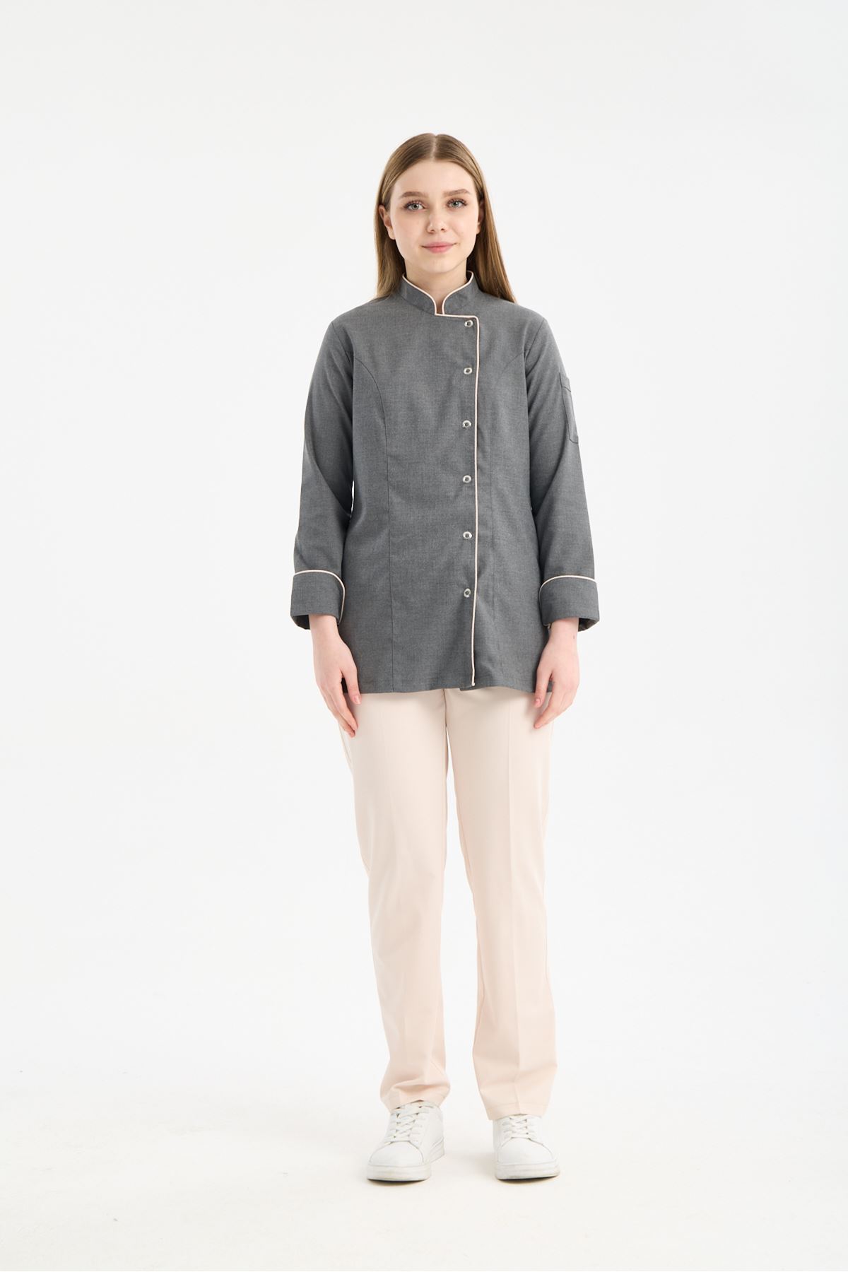 Kadın Chef Üniforma Takım Antrasit Gri-Krem