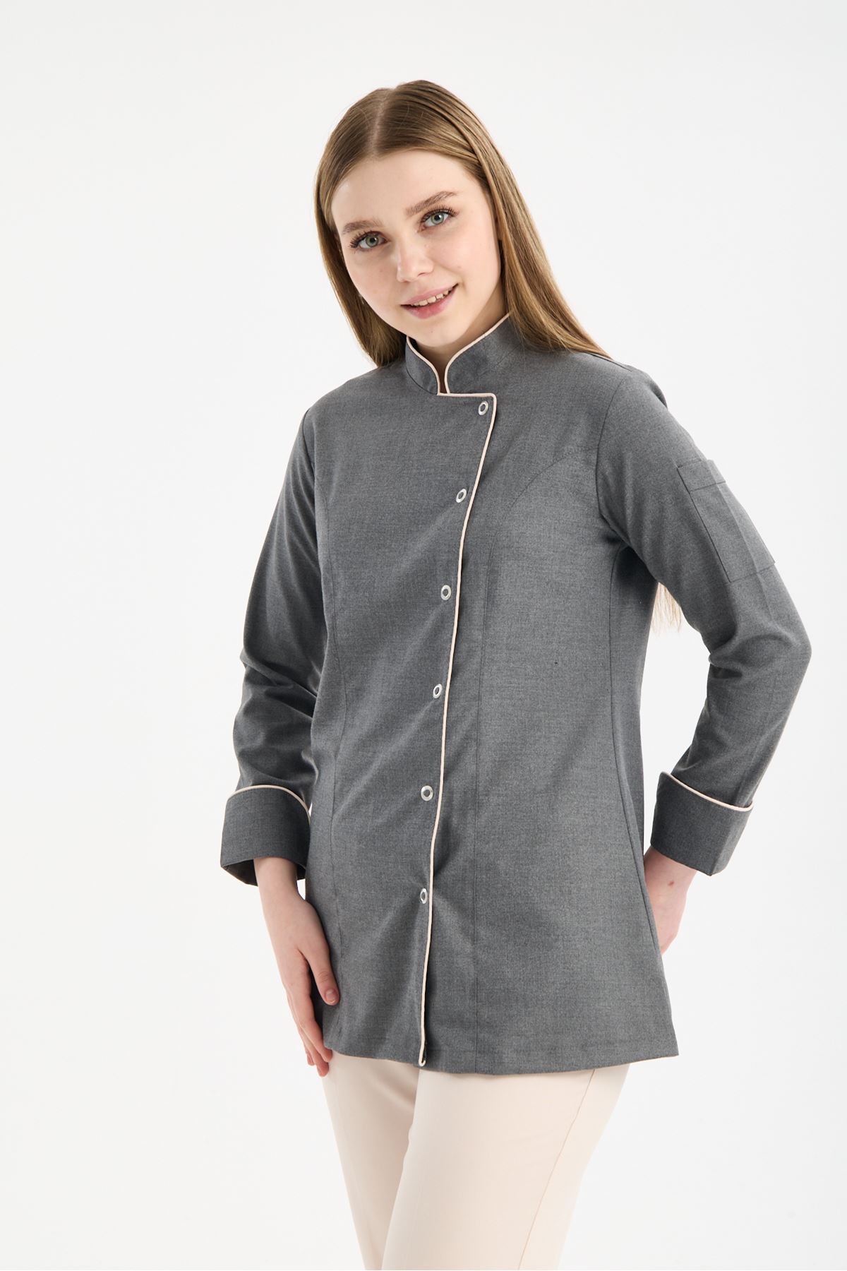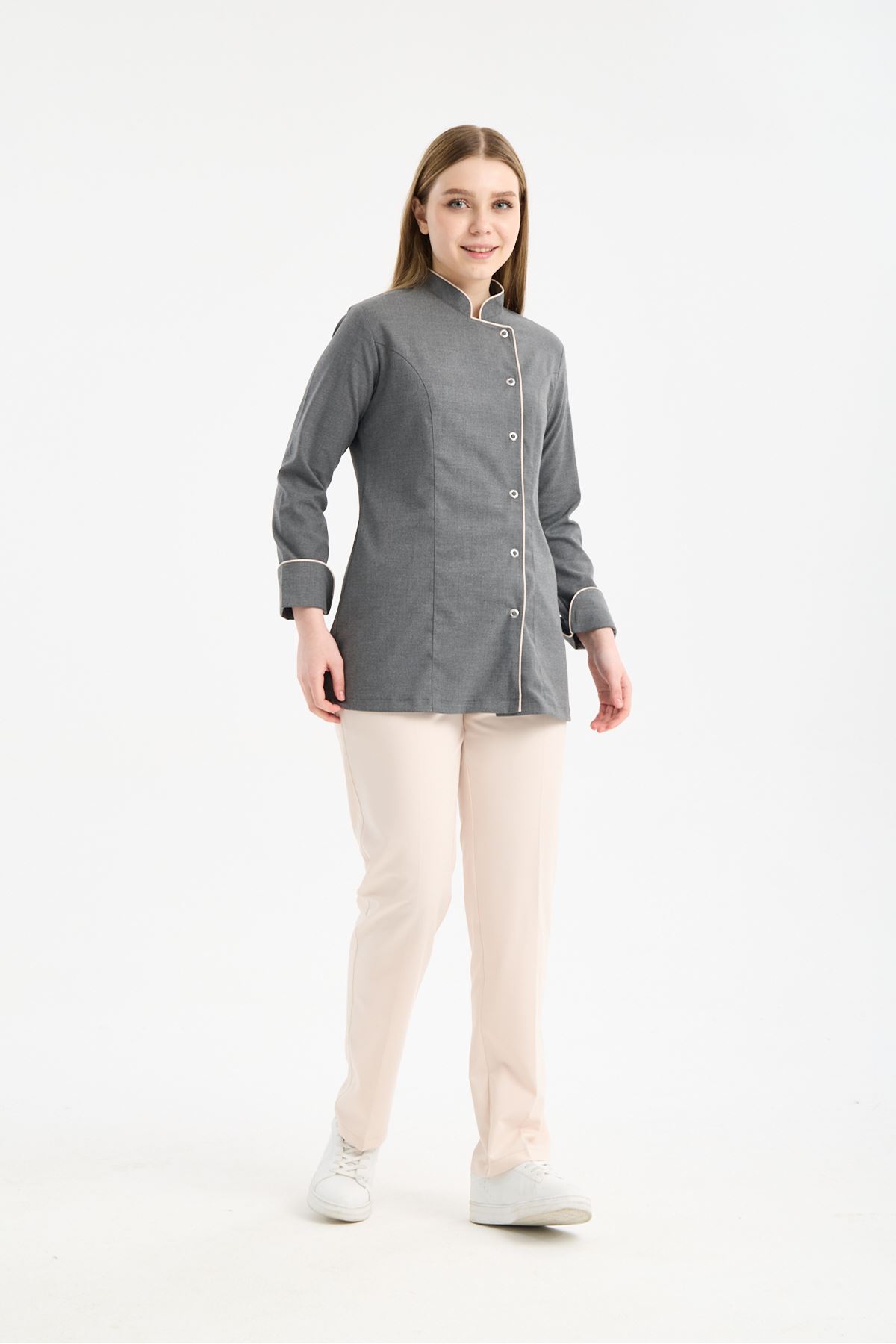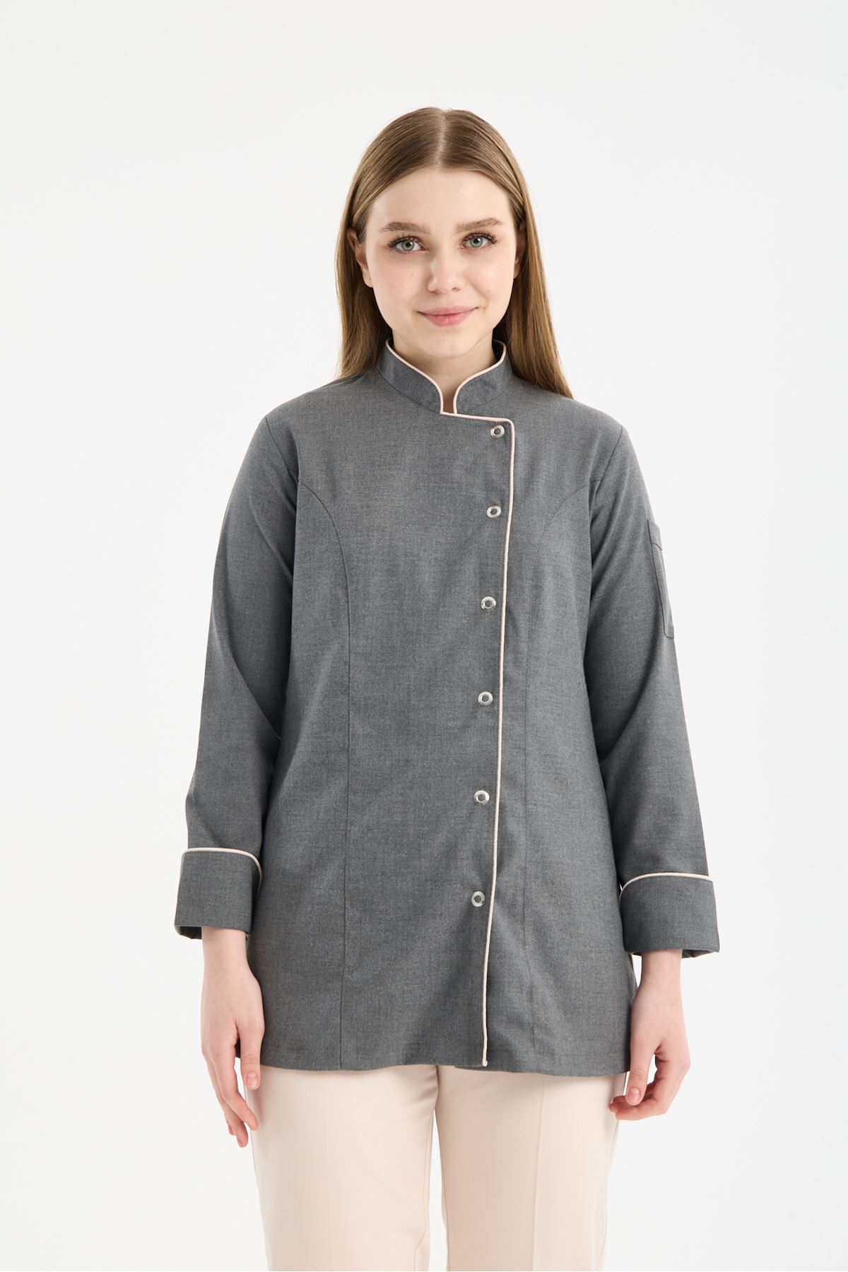Kadın Chef Üniforma Takım Antrasit Gri-Krem