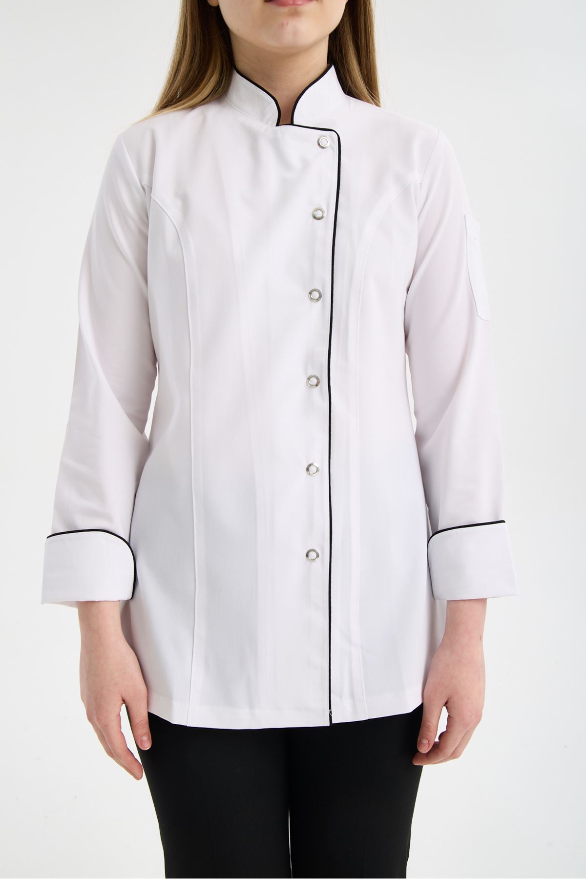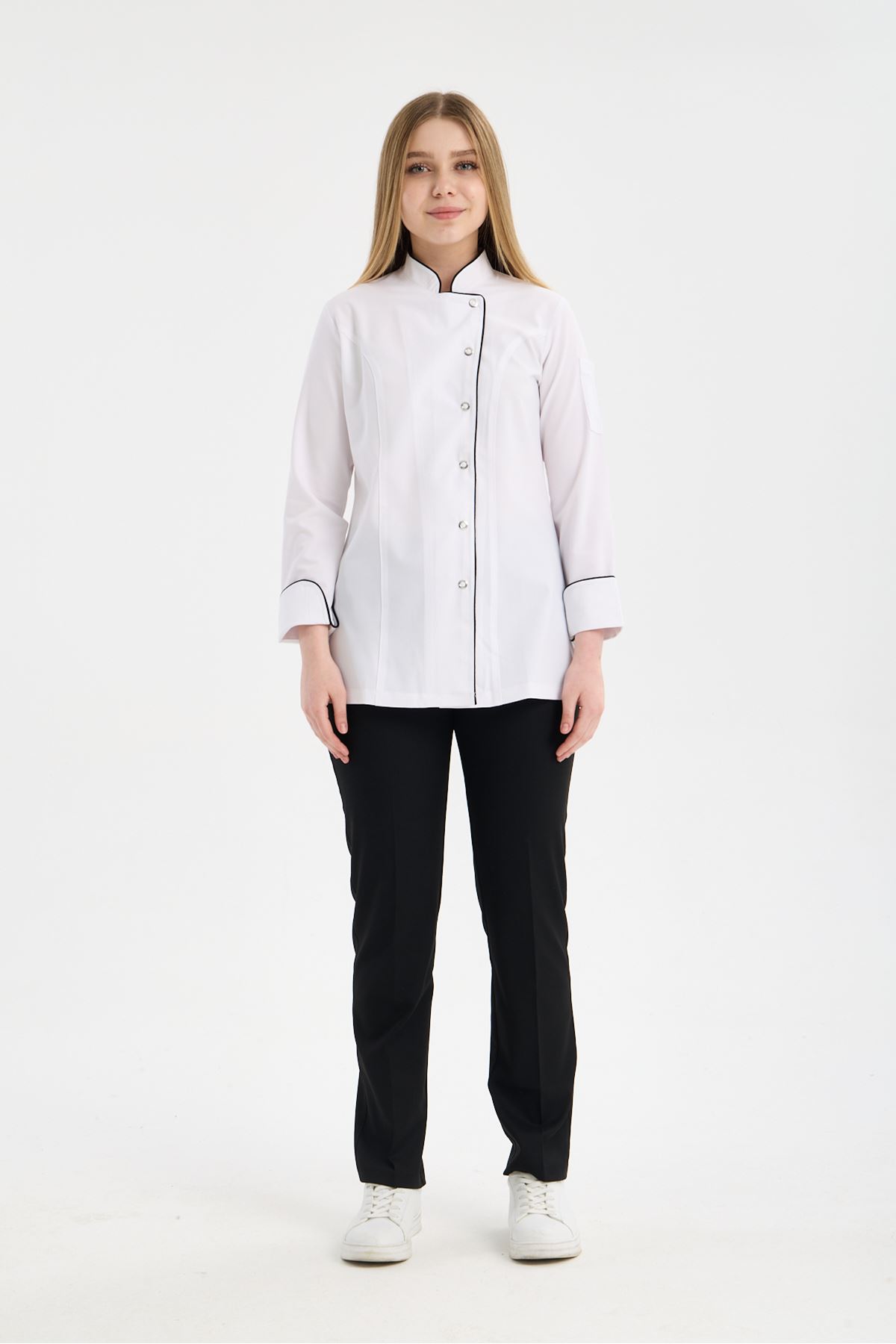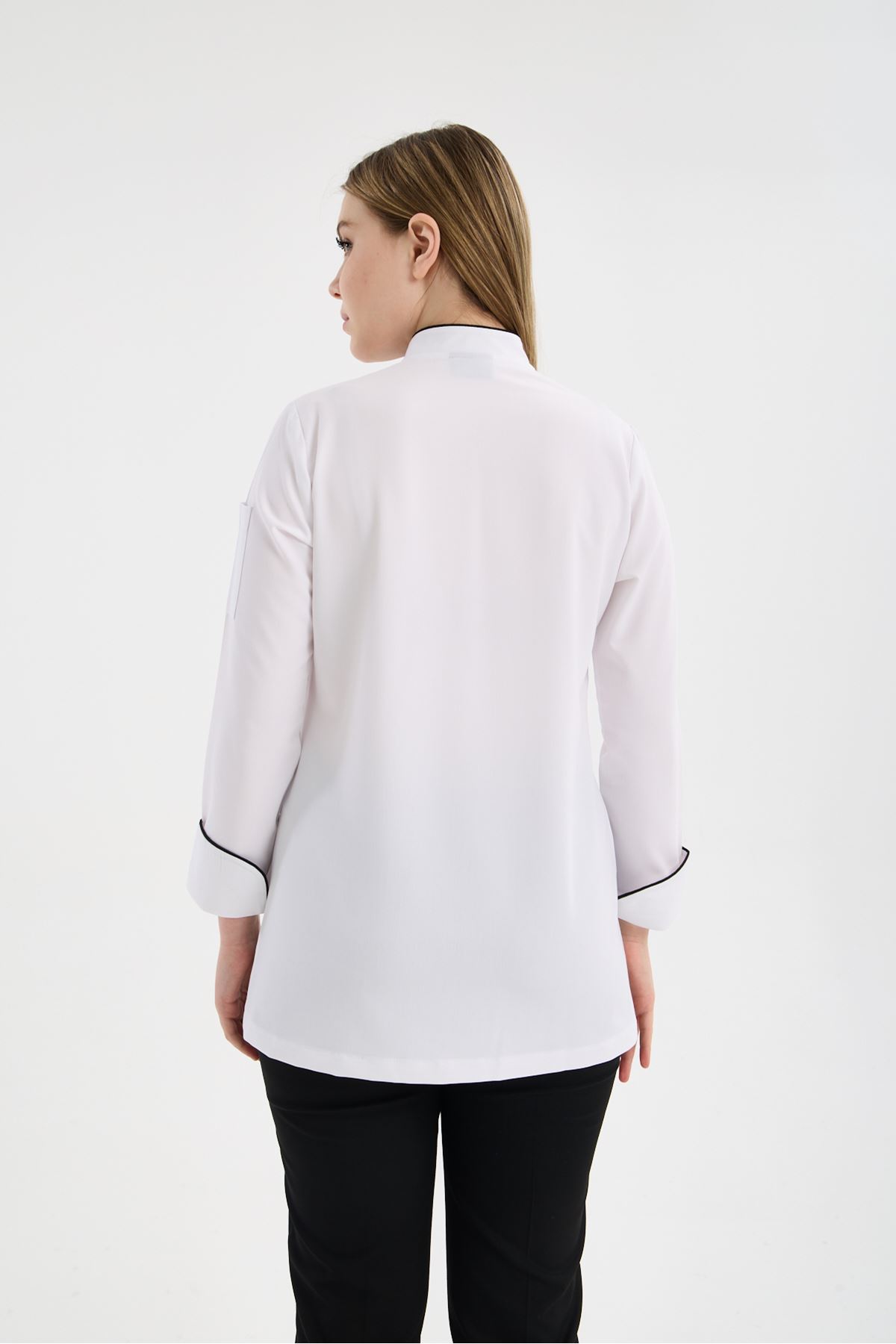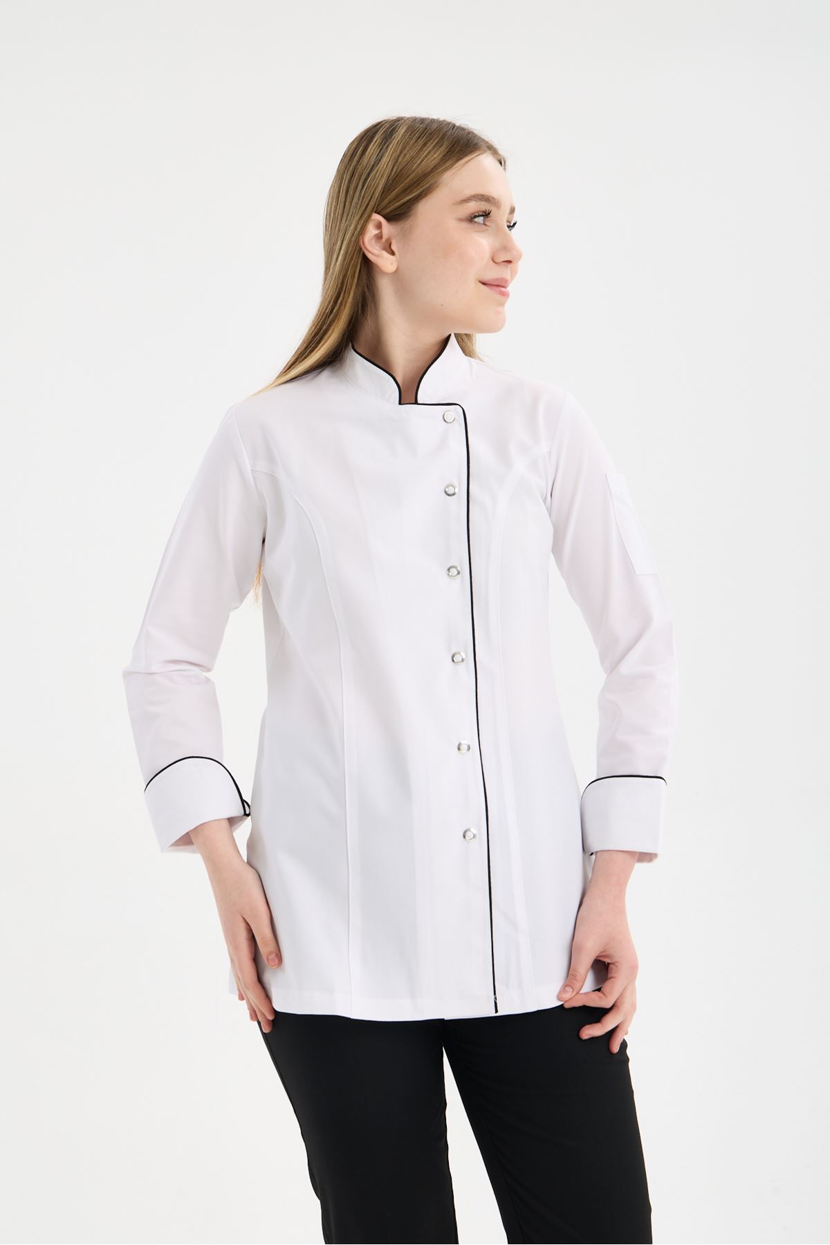 Kadın Chef Üniforma Takım Beyaz-Siyah