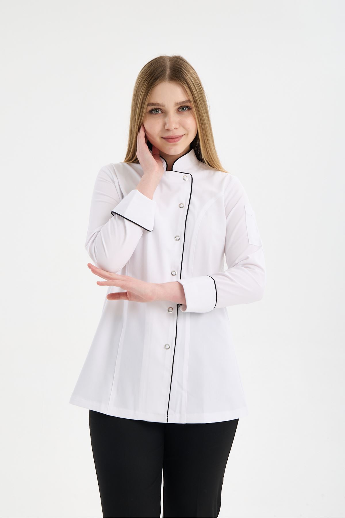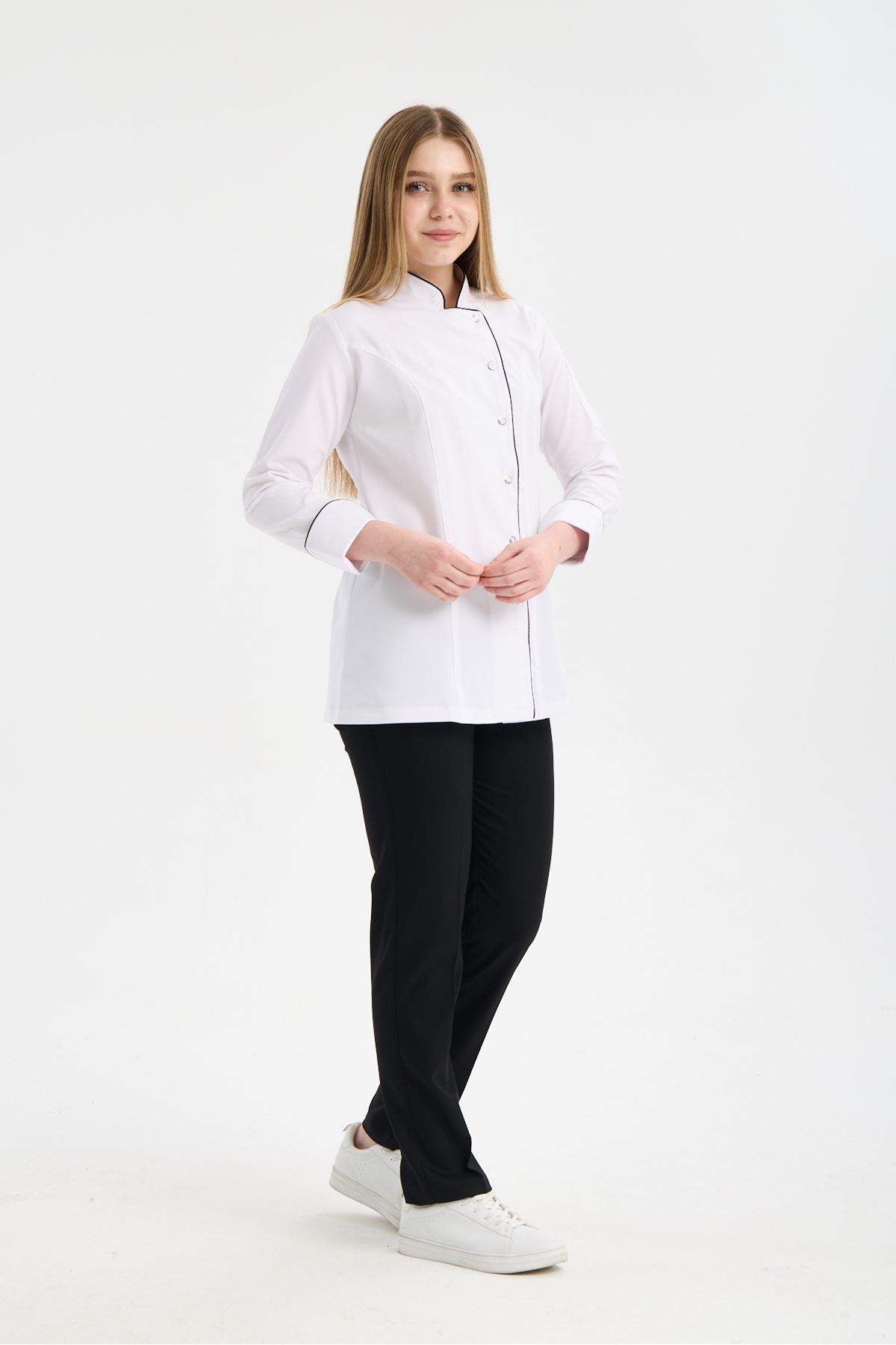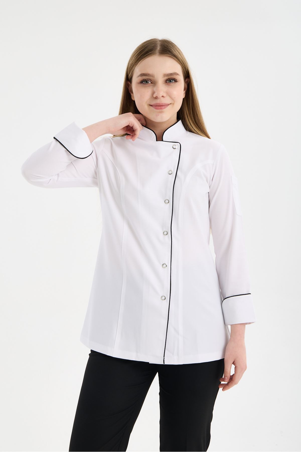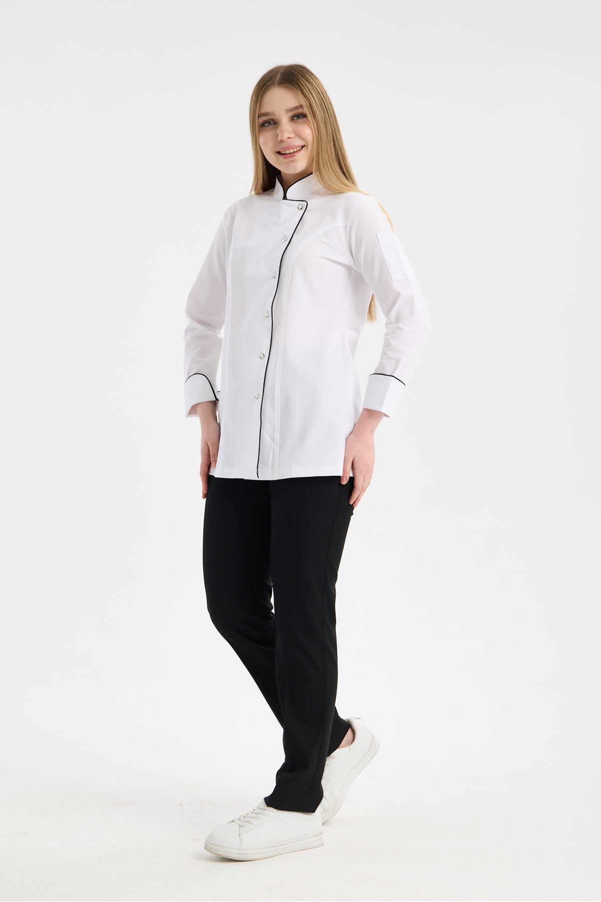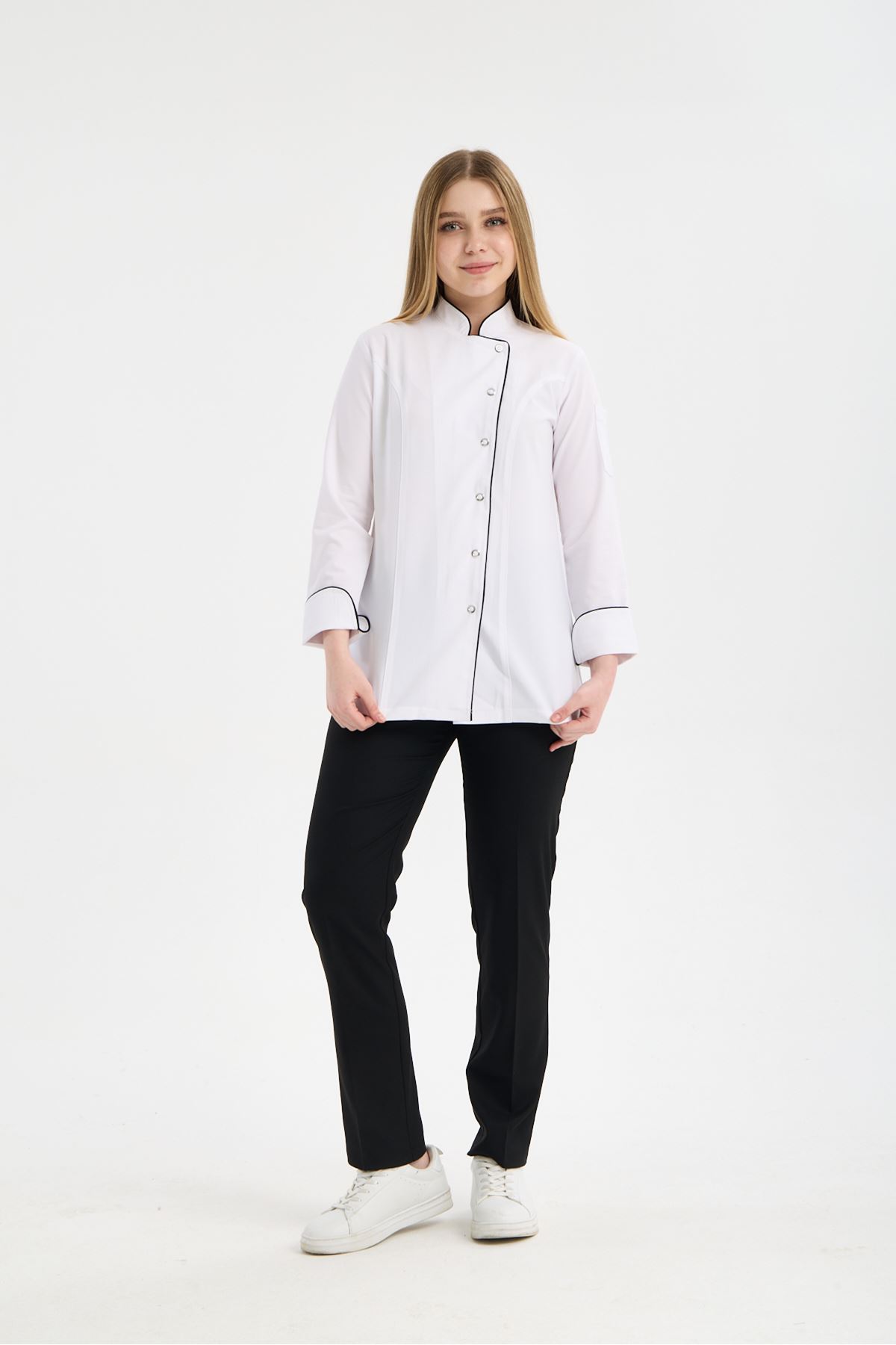 Kadın Chef Üniforma Takım Beyaz-Siyah