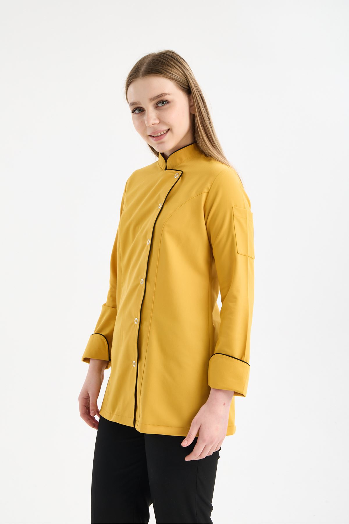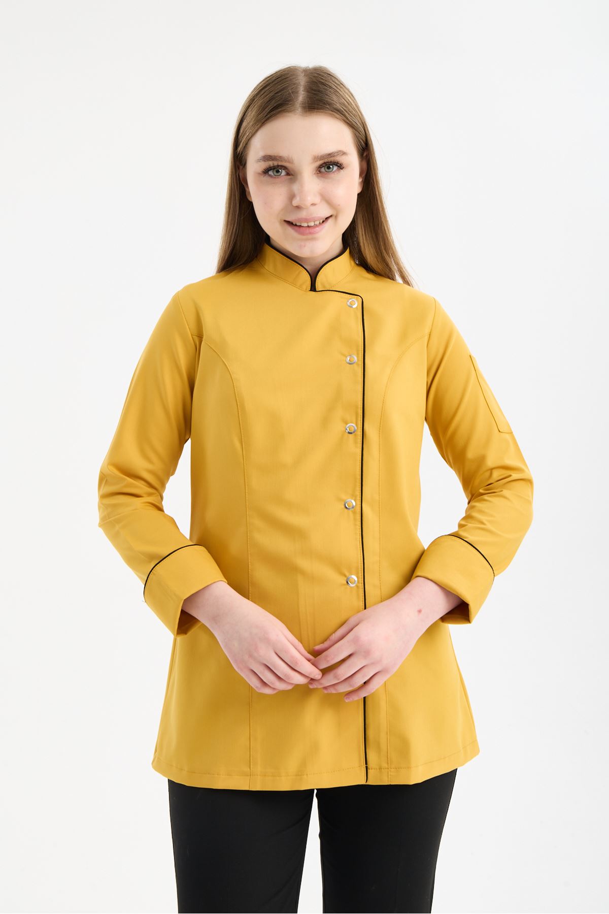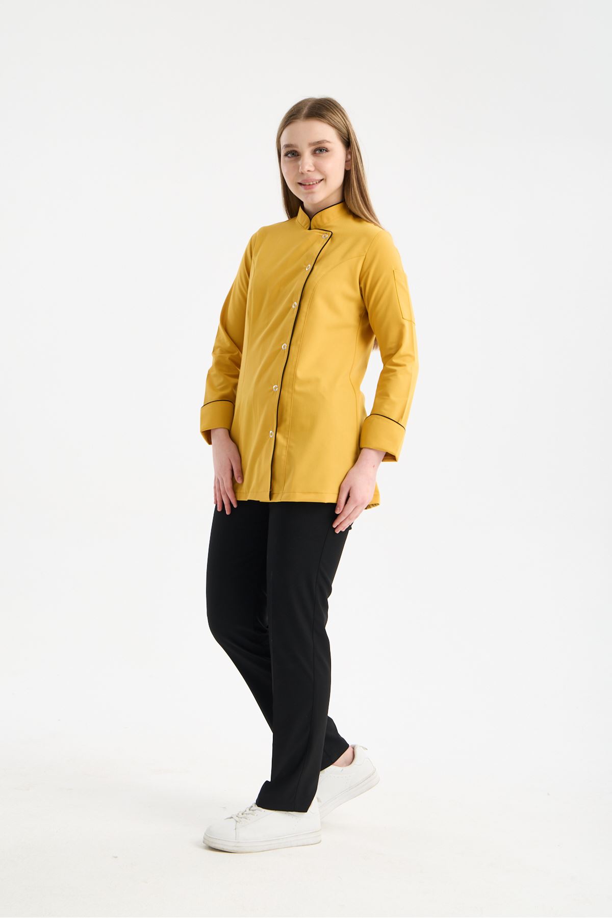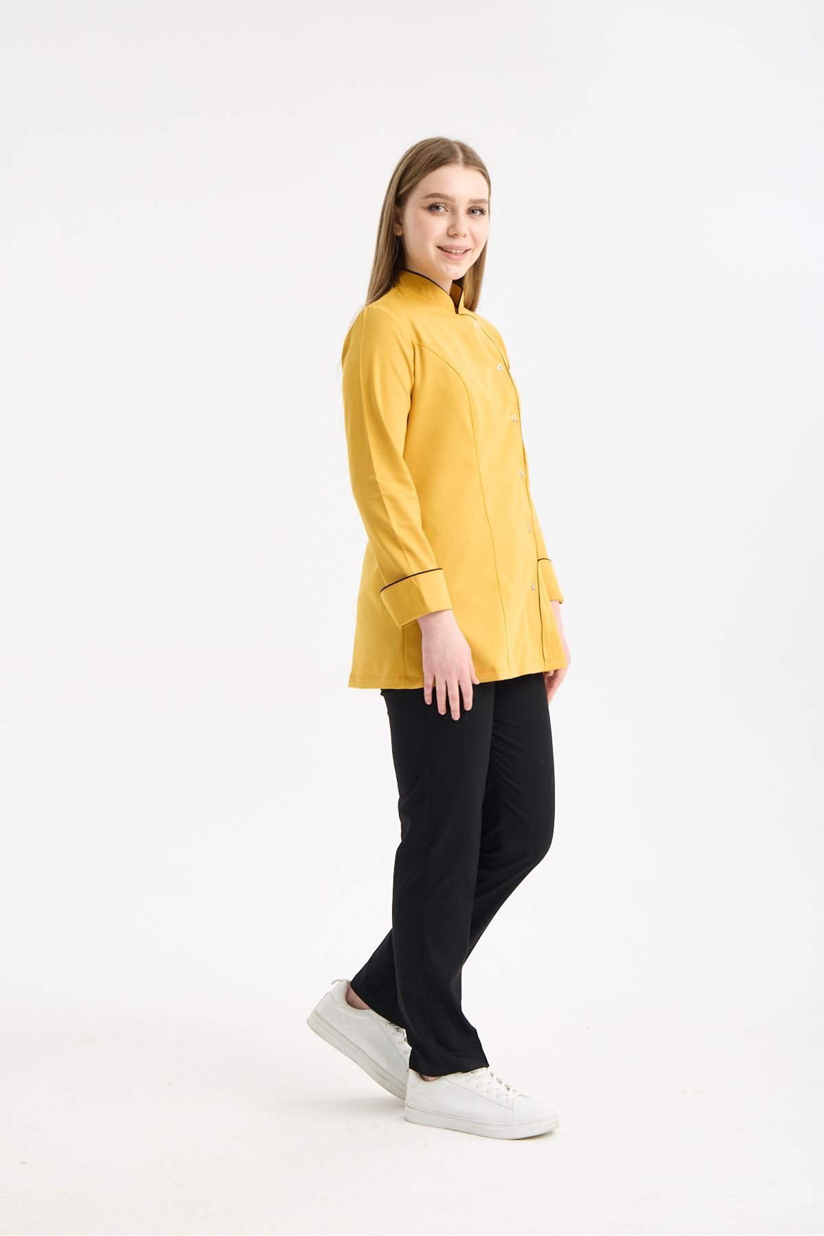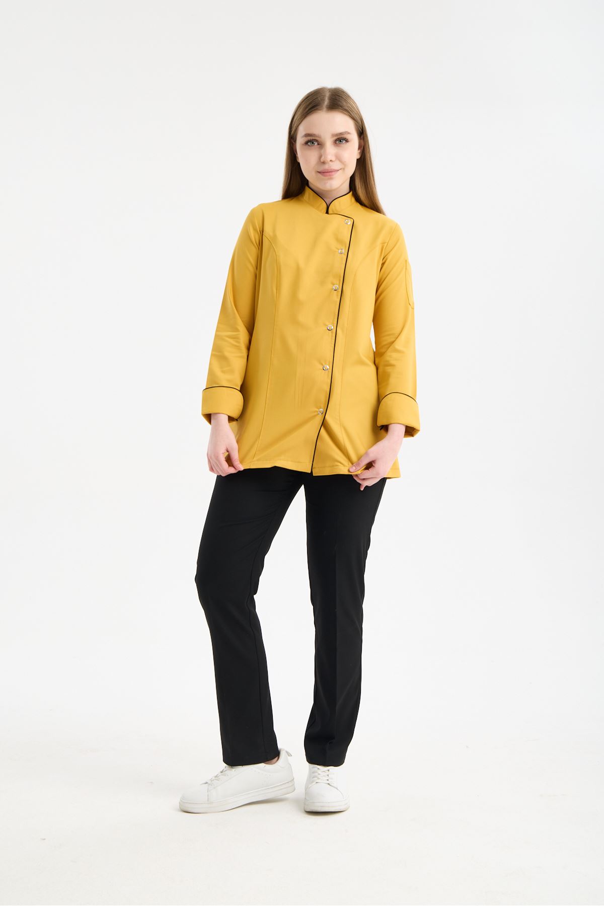Kadın Chef Üniforma Takım Hardal Sarı-Siyah