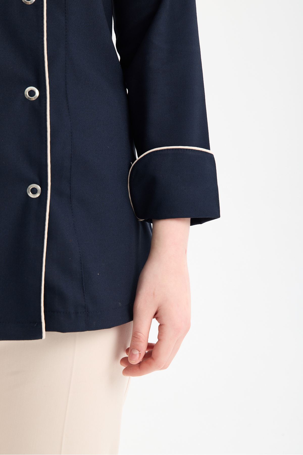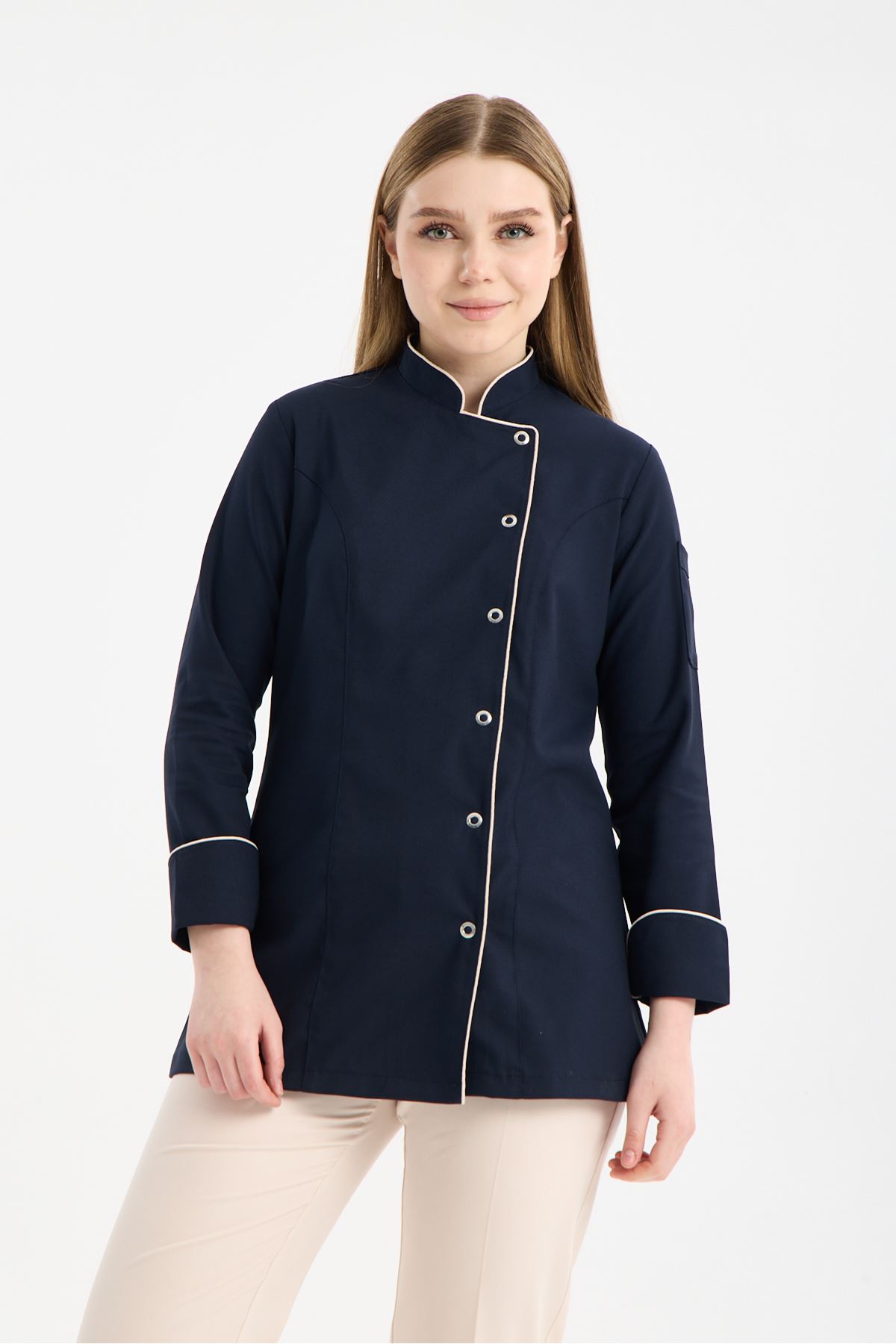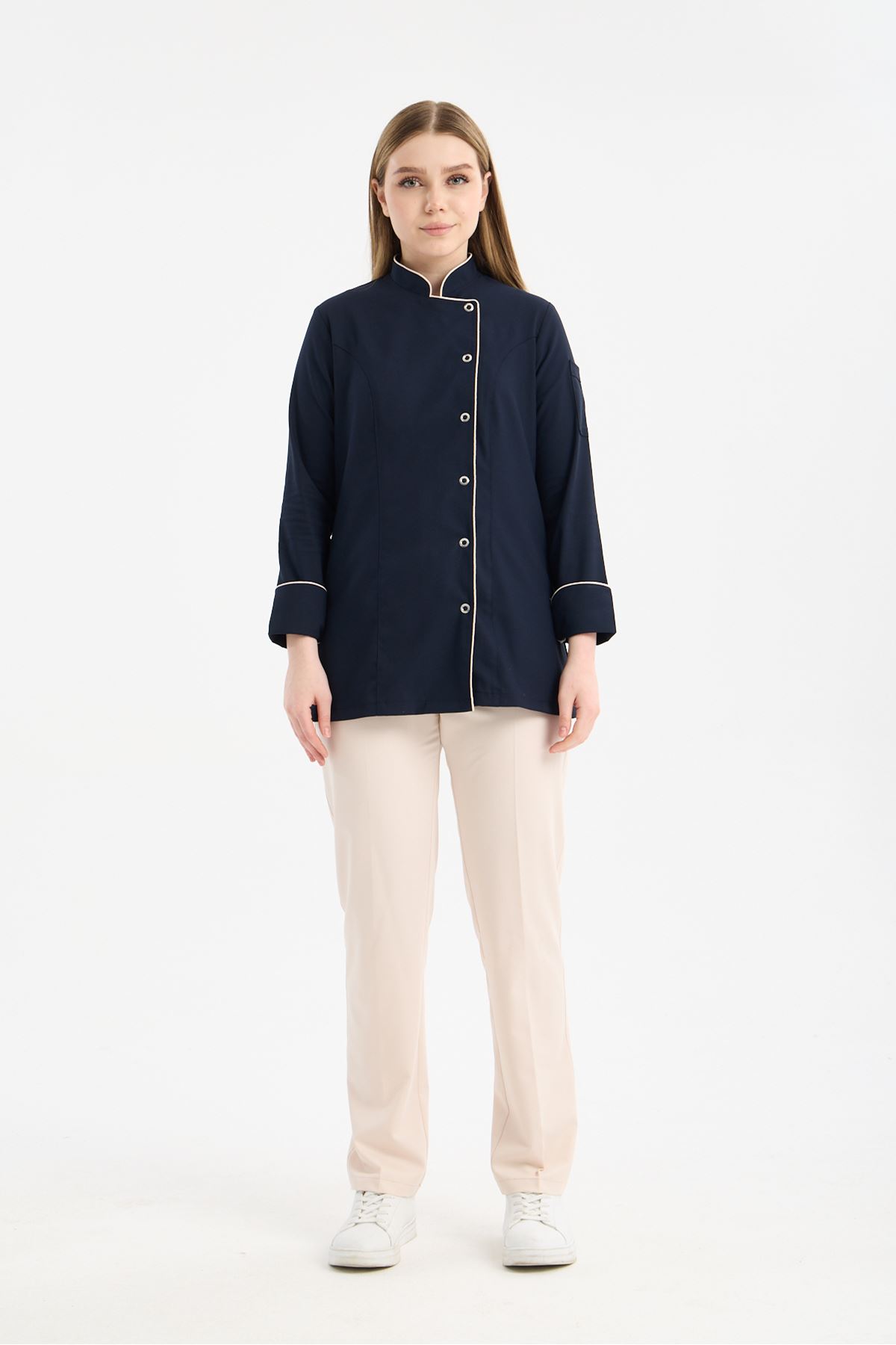 Kadın Chef Üniforma Takım Lacivert -Krem