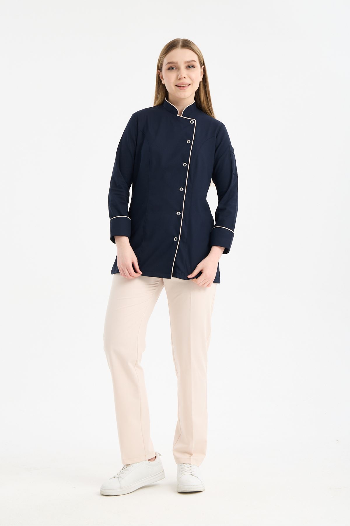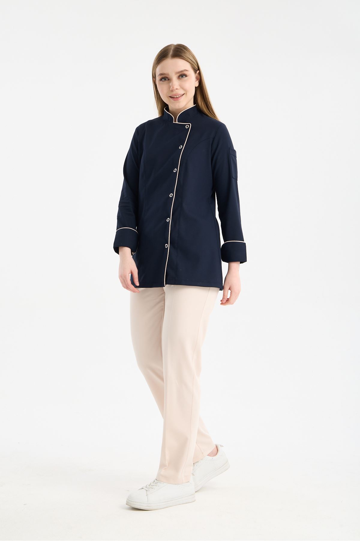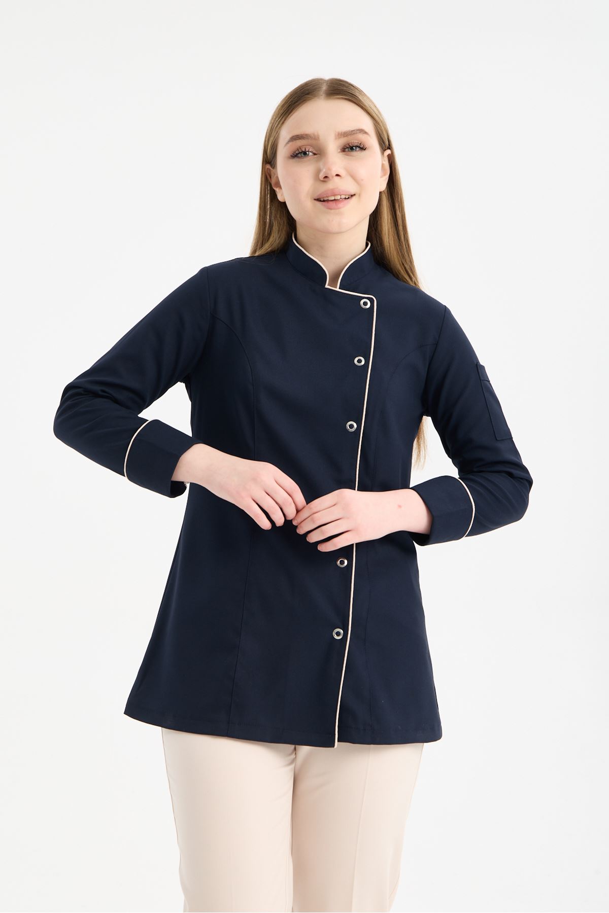 Kadın Chef Üniforma Takım Lacivert -Krem