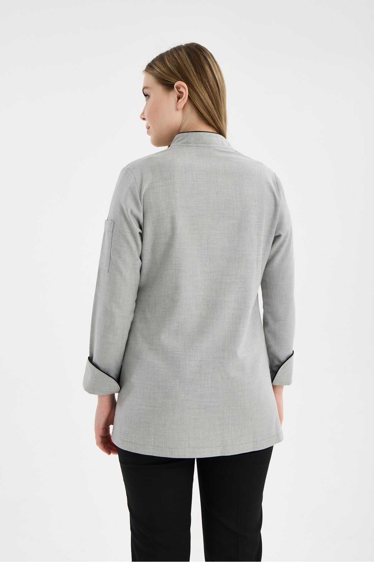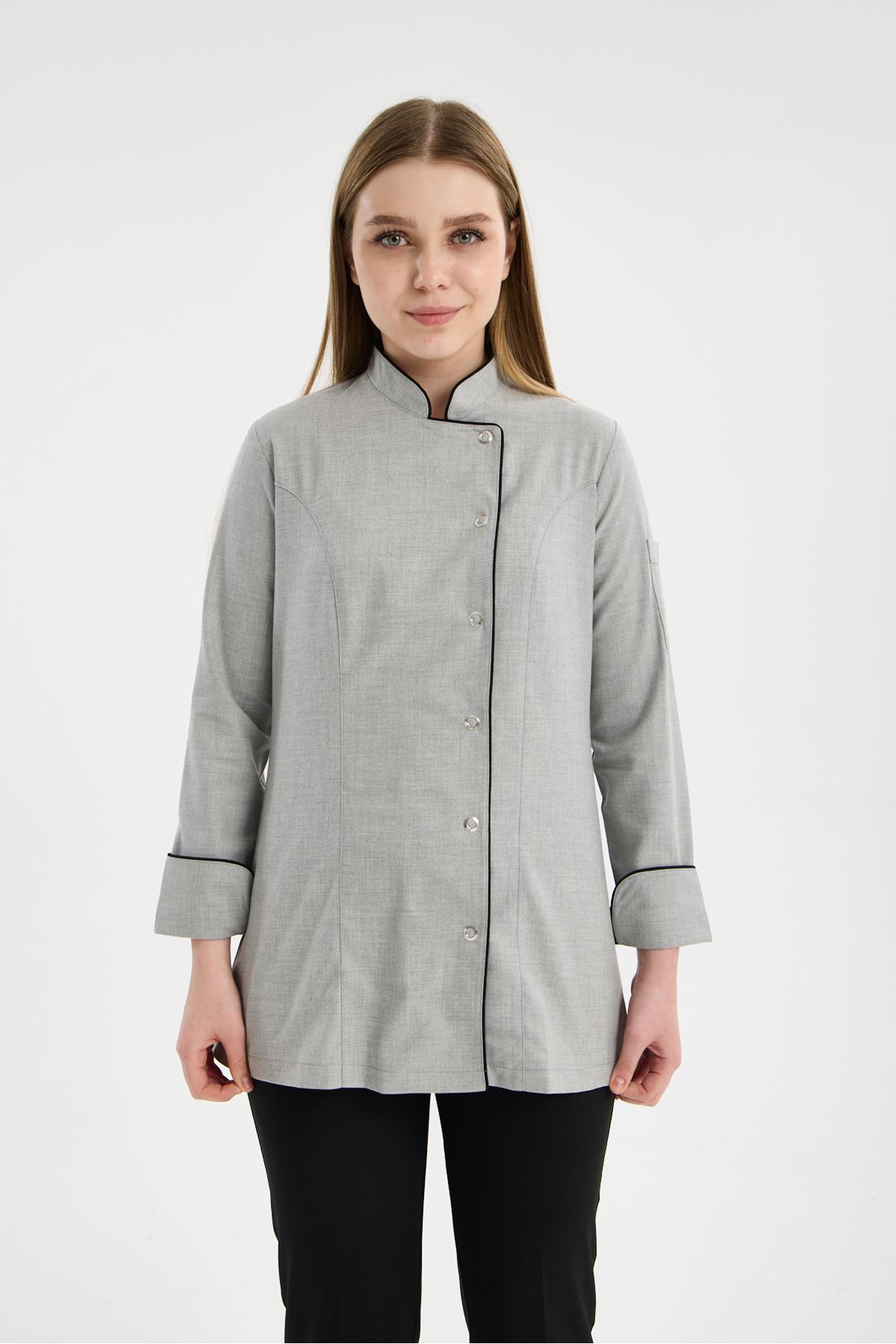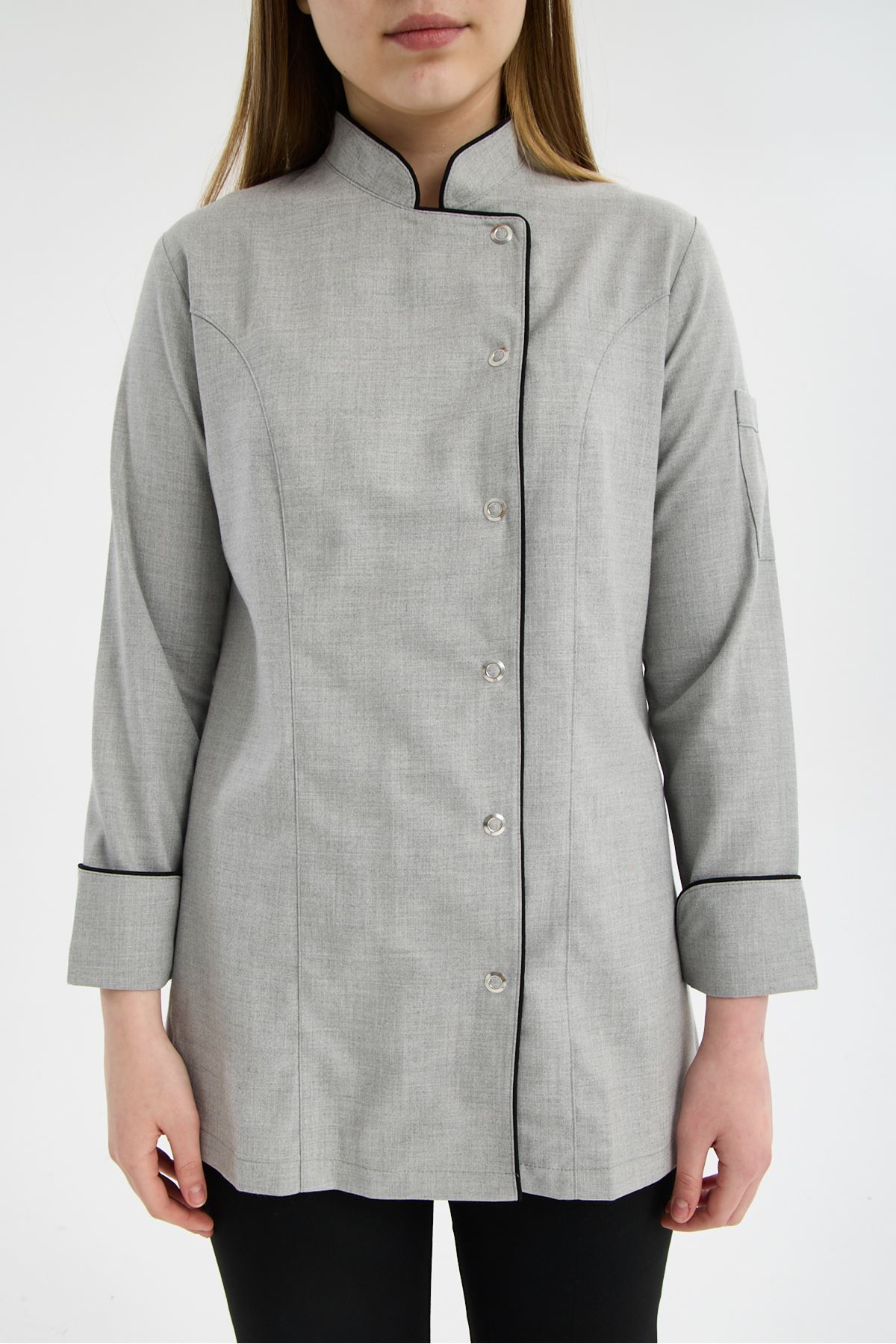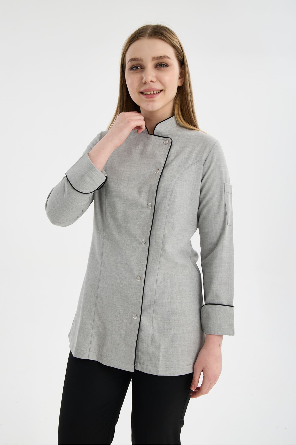 Kadın Chef Üniforma Takım Açık Gri-Siyah