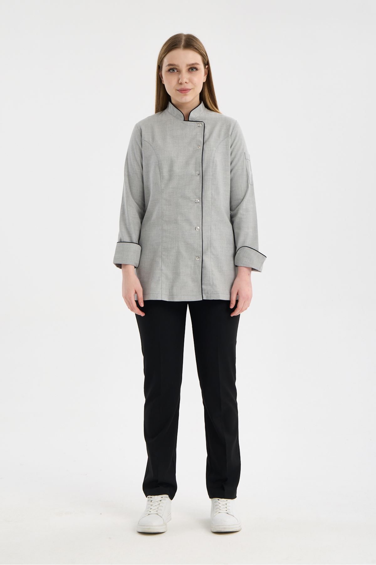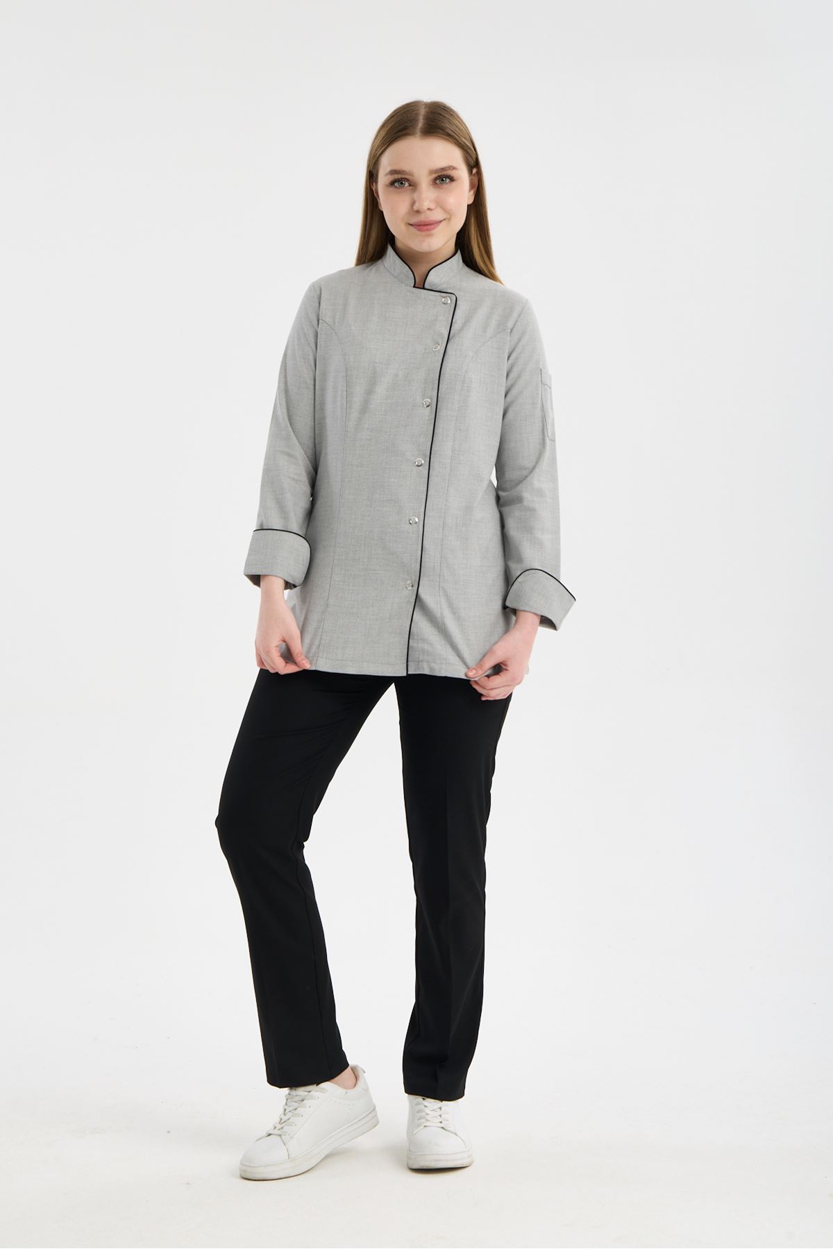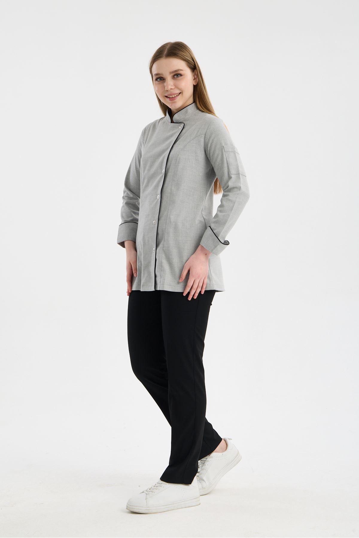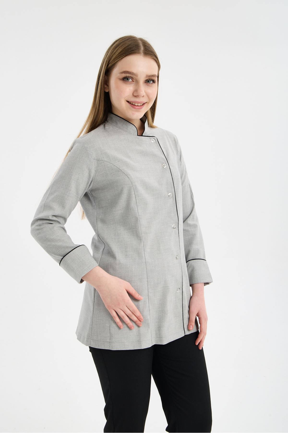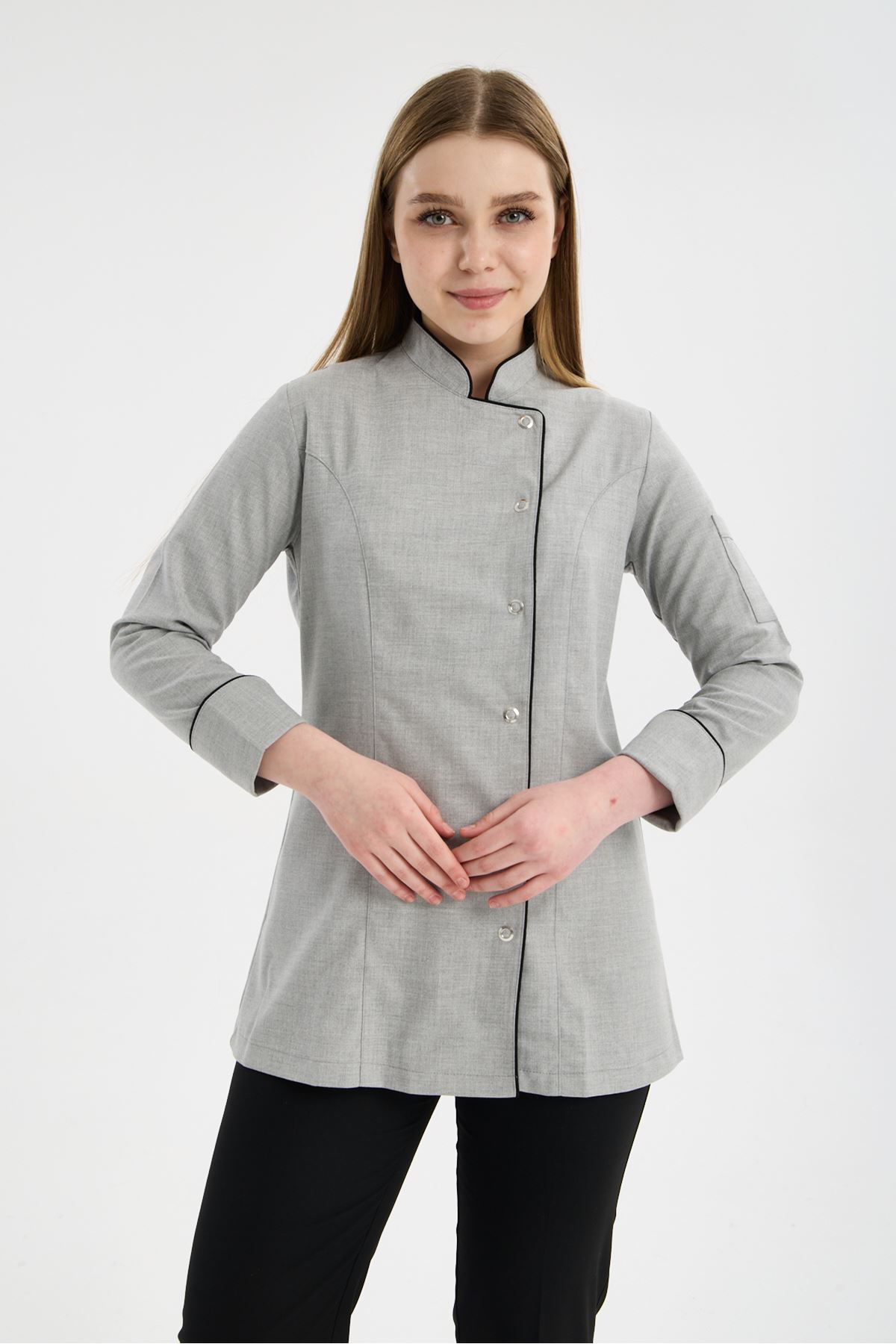 Kadın Chef Üniforma Takım Açık Gri-Siyah