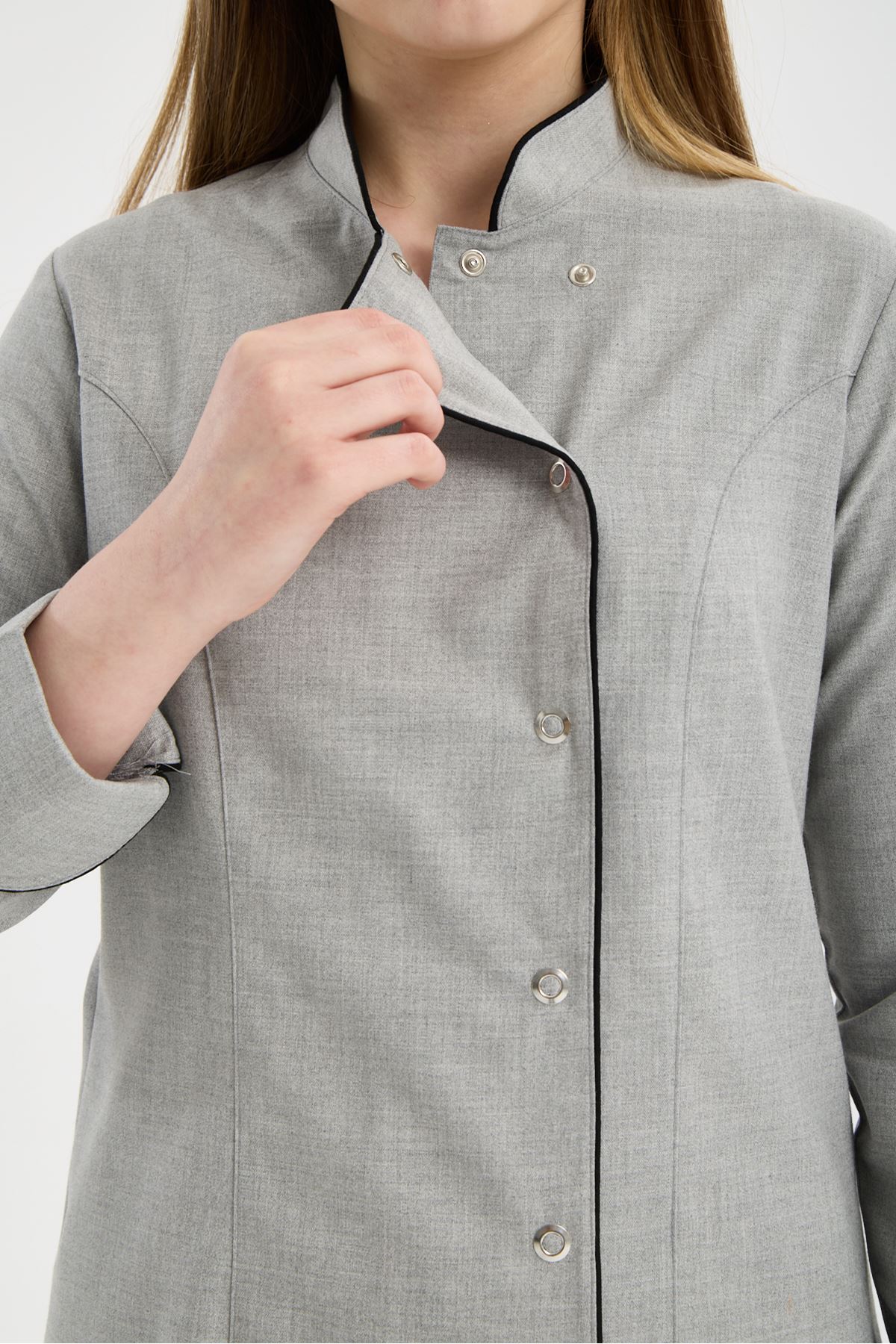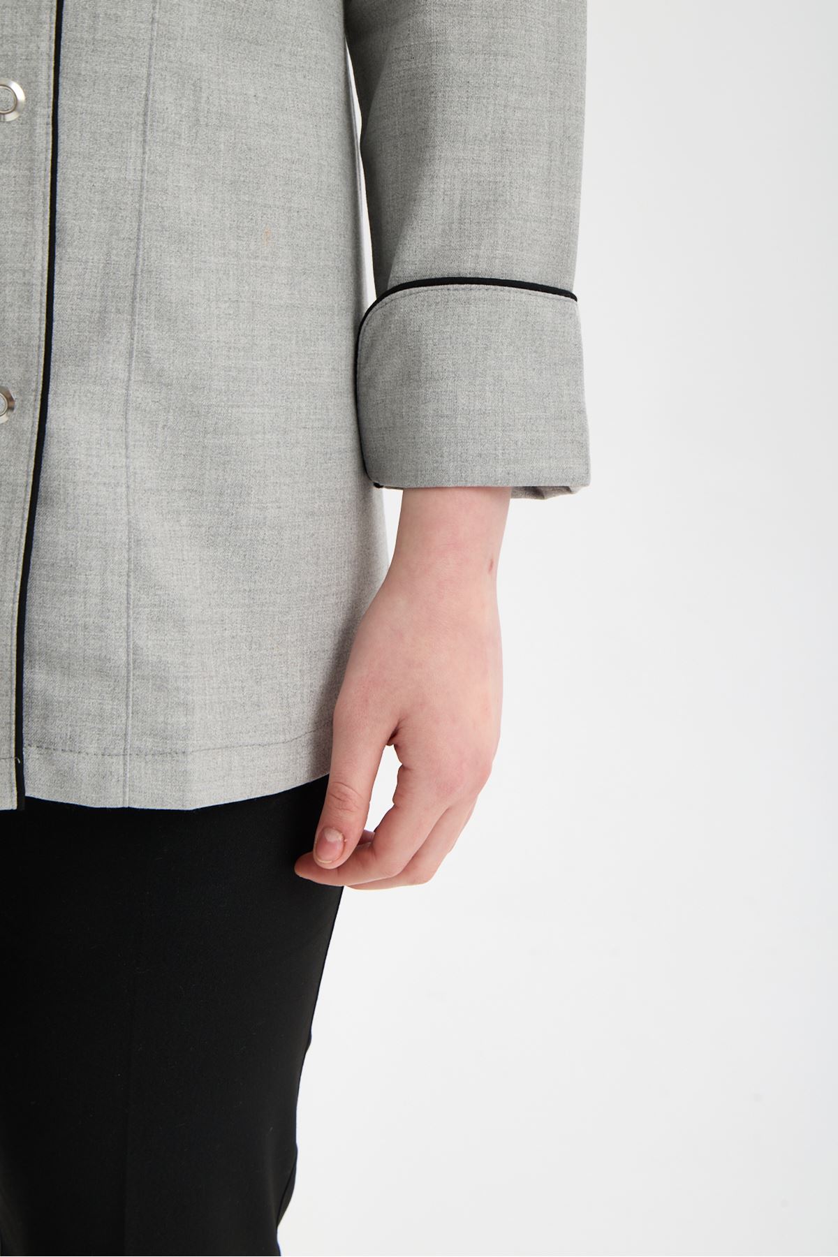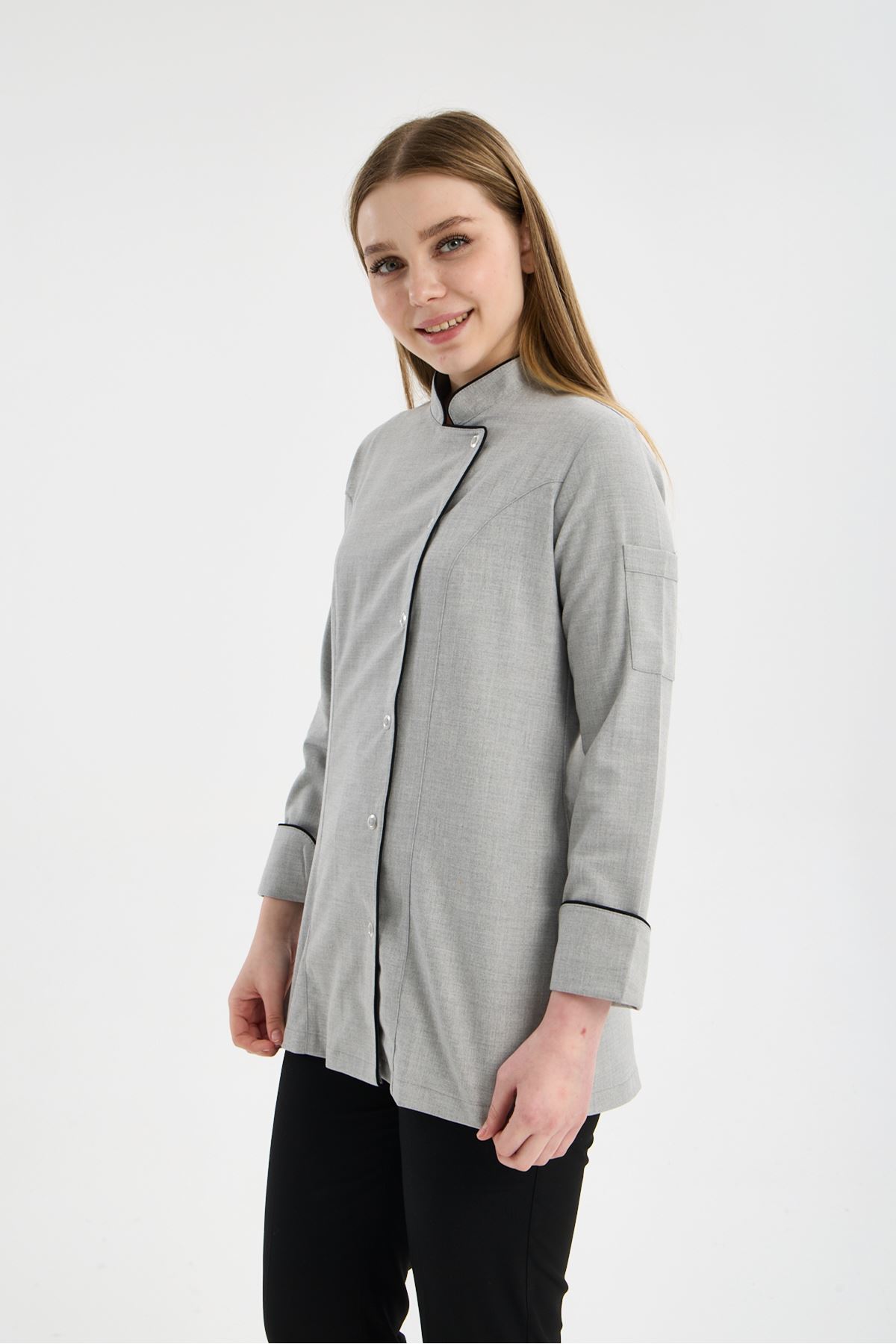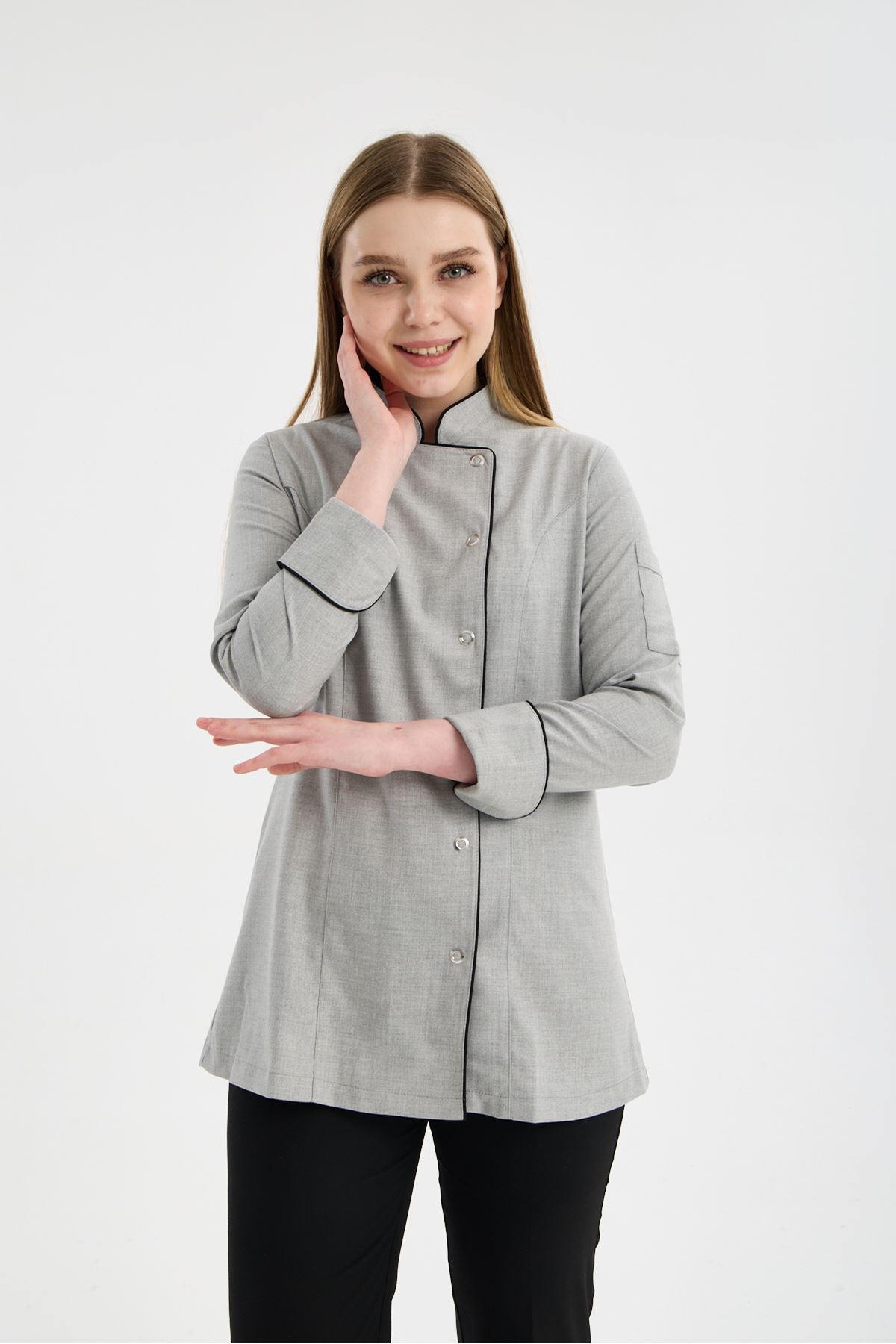 Kadın Chef Üniforma Takım Açık Gri-Siyah