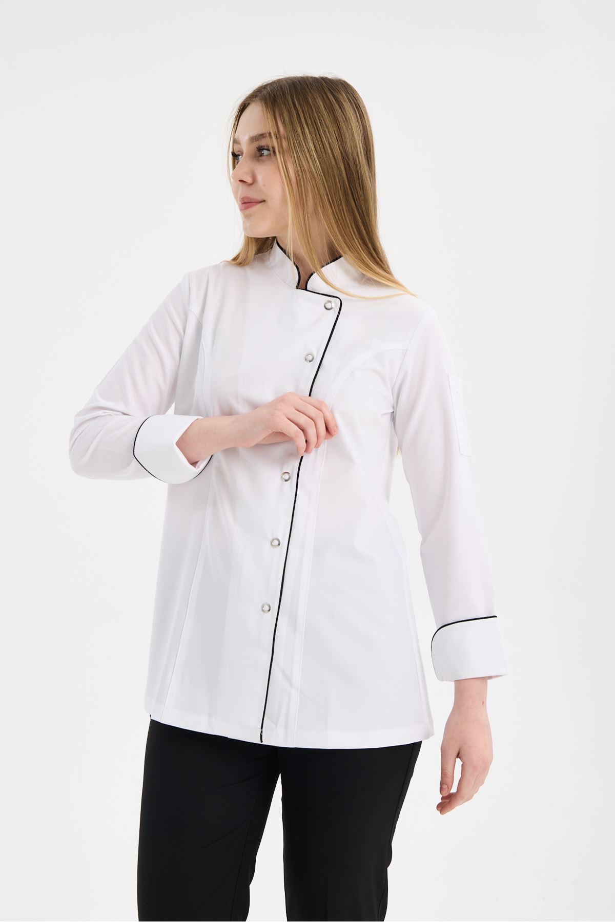 Kadın Chef Üniforma Tek Üst Beyaz