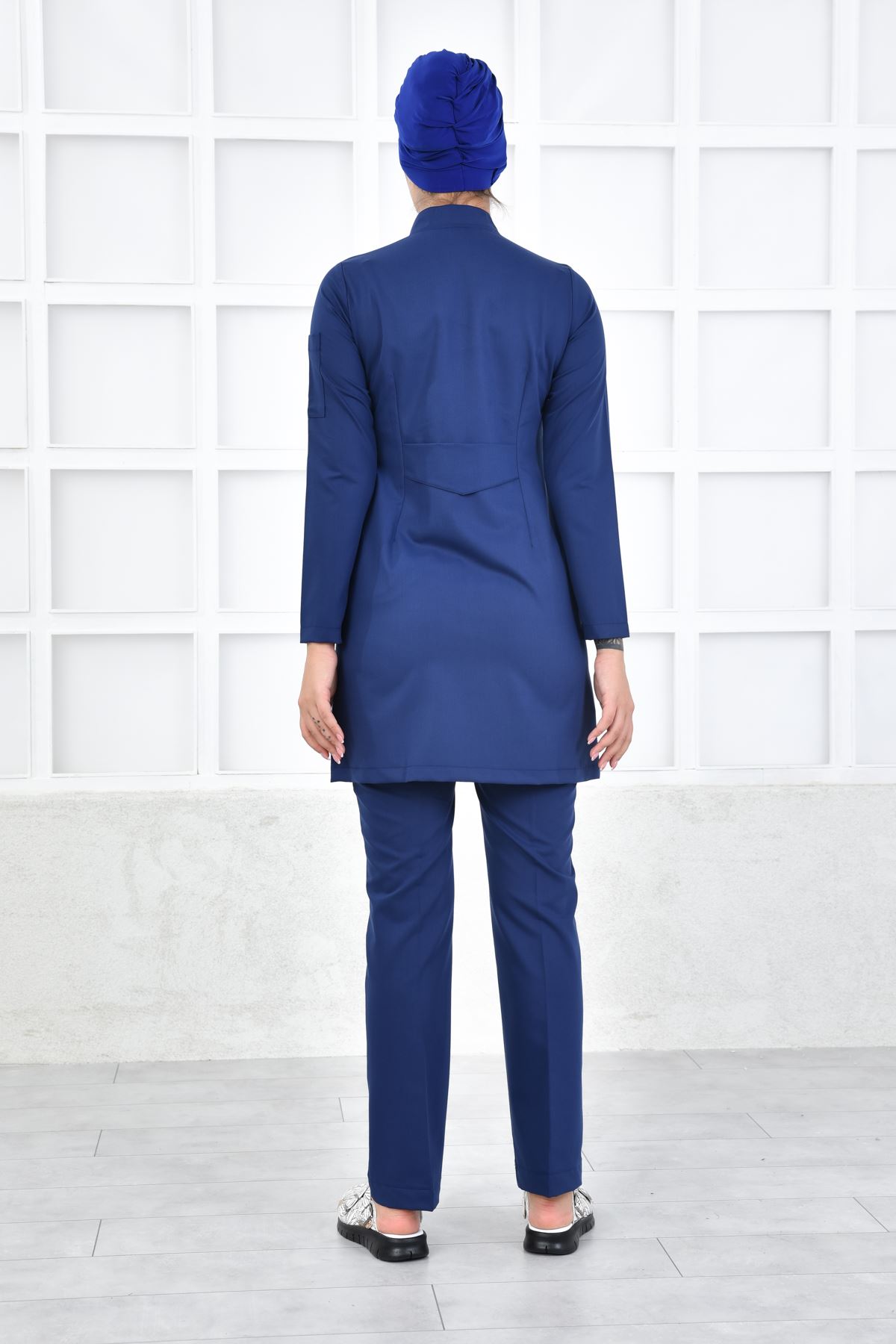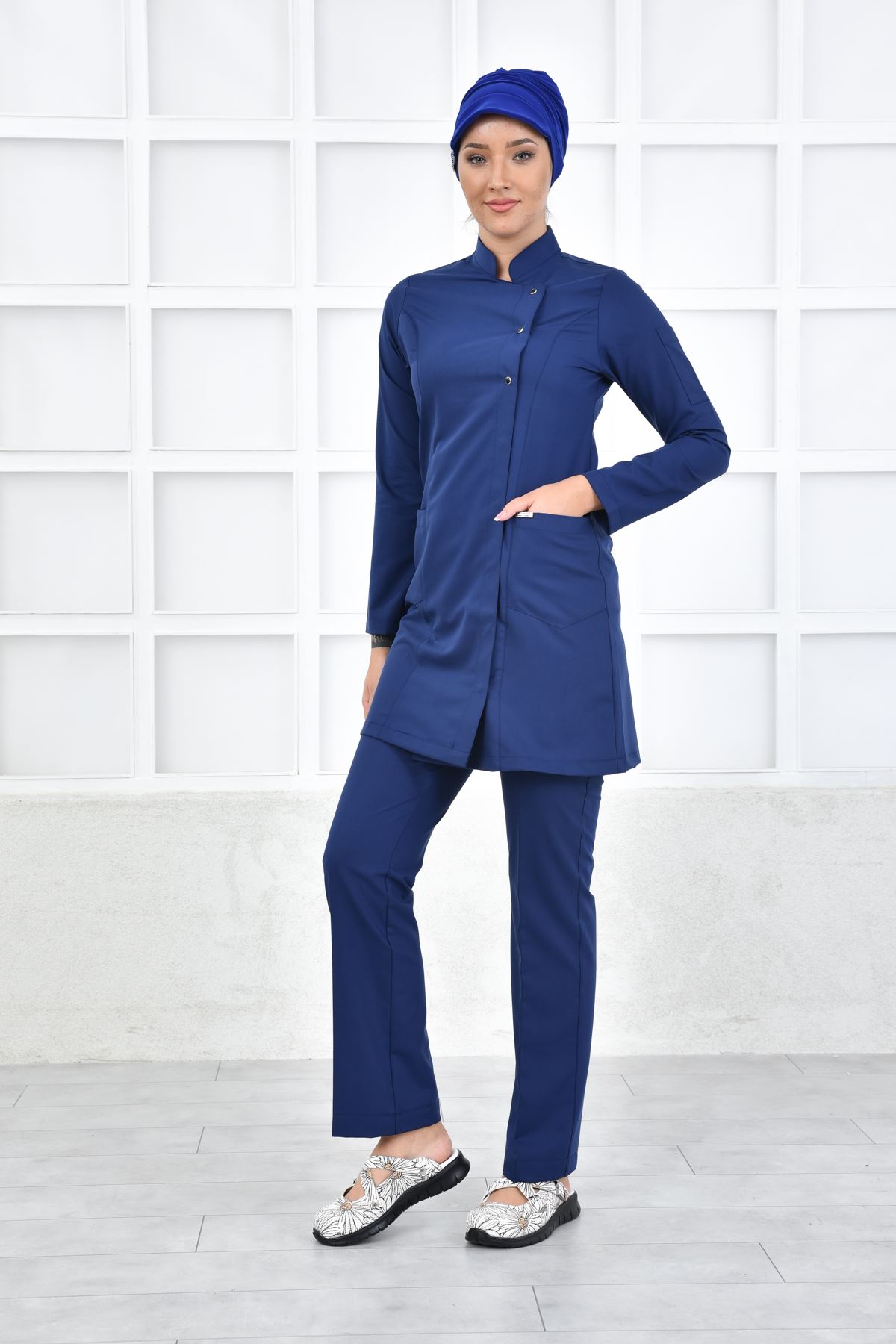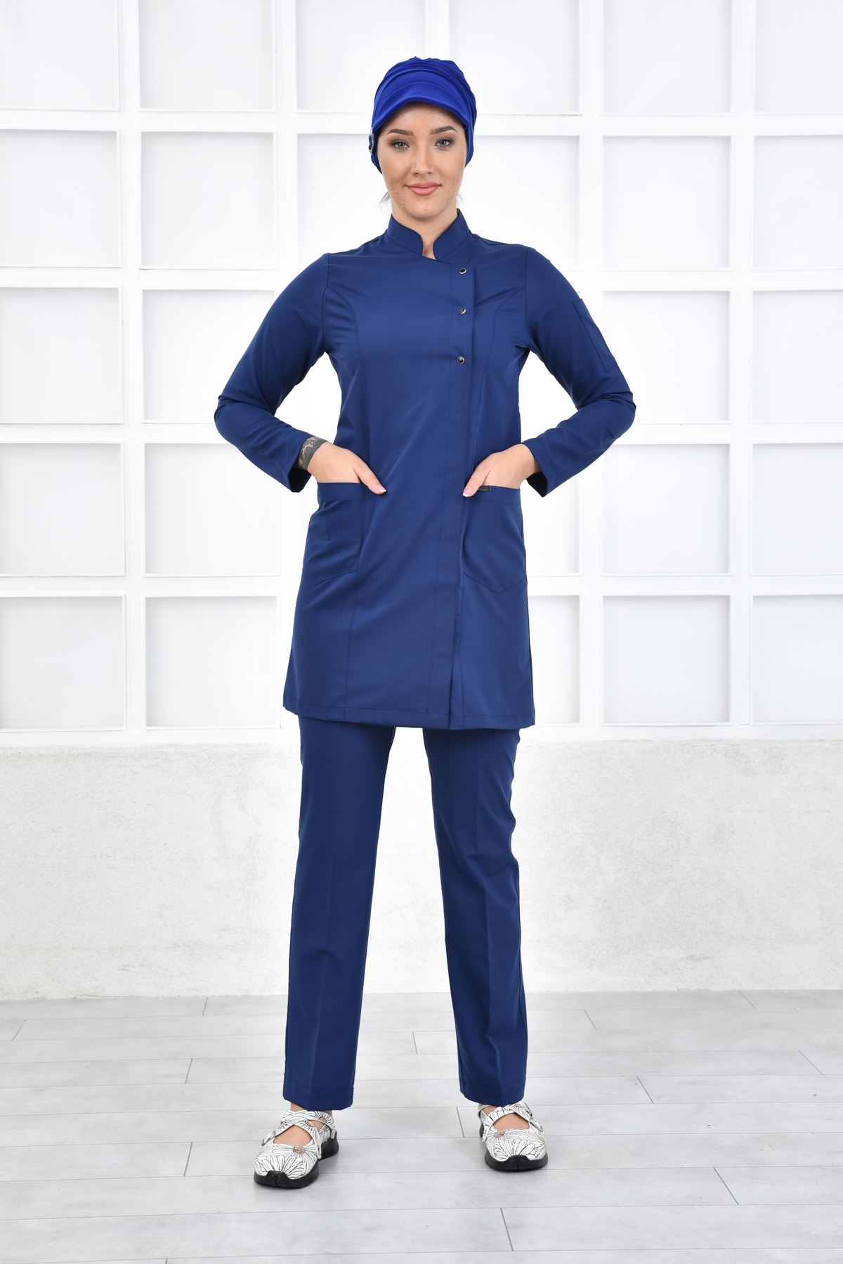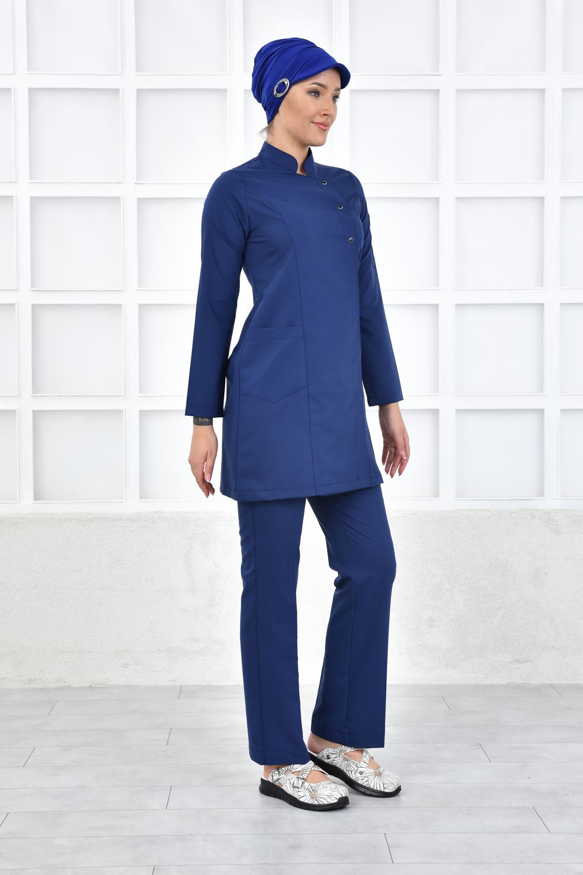 Onur Forma Kare Kruvaze Kadın Tesettür Medikal Takım İndigo Mavi
