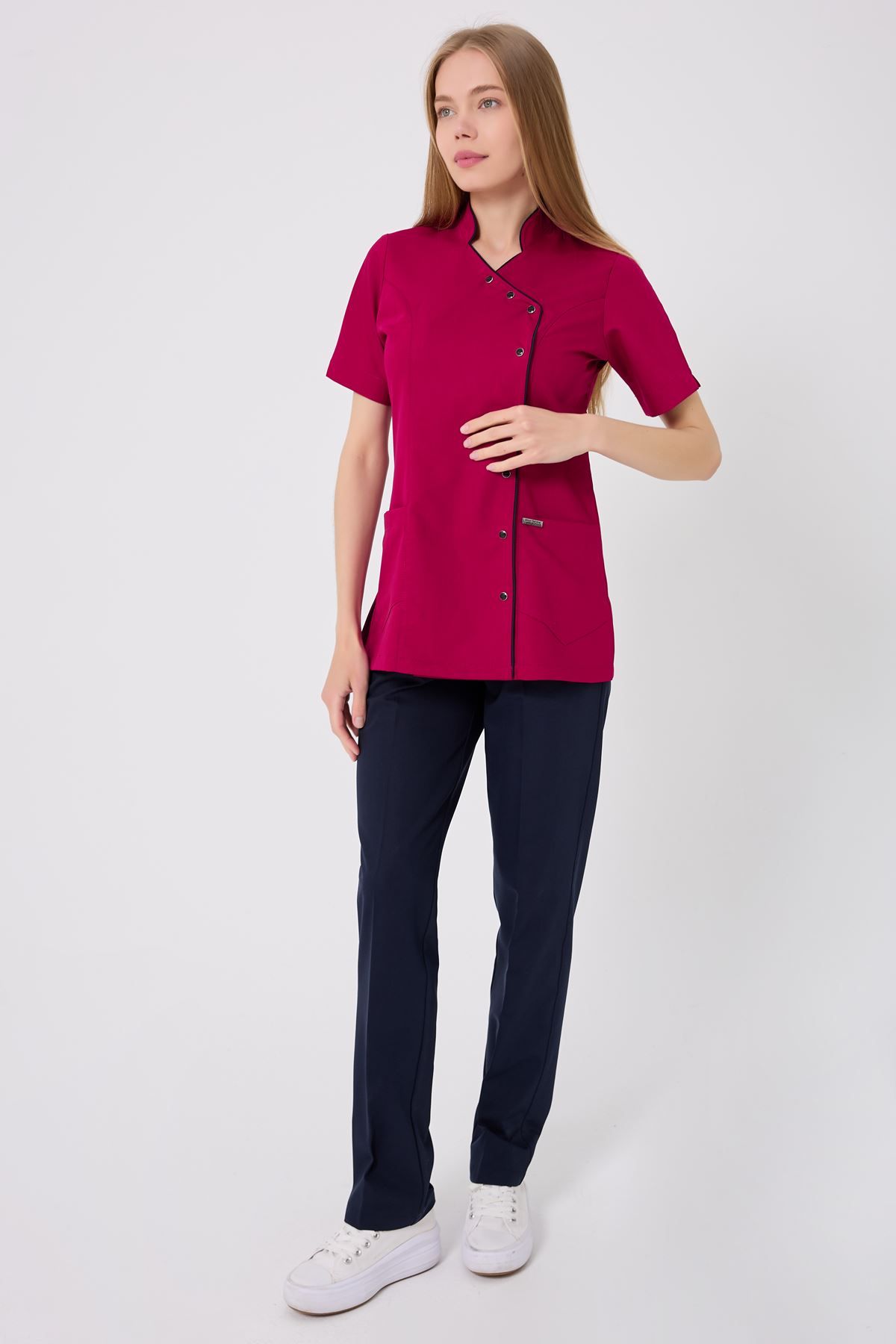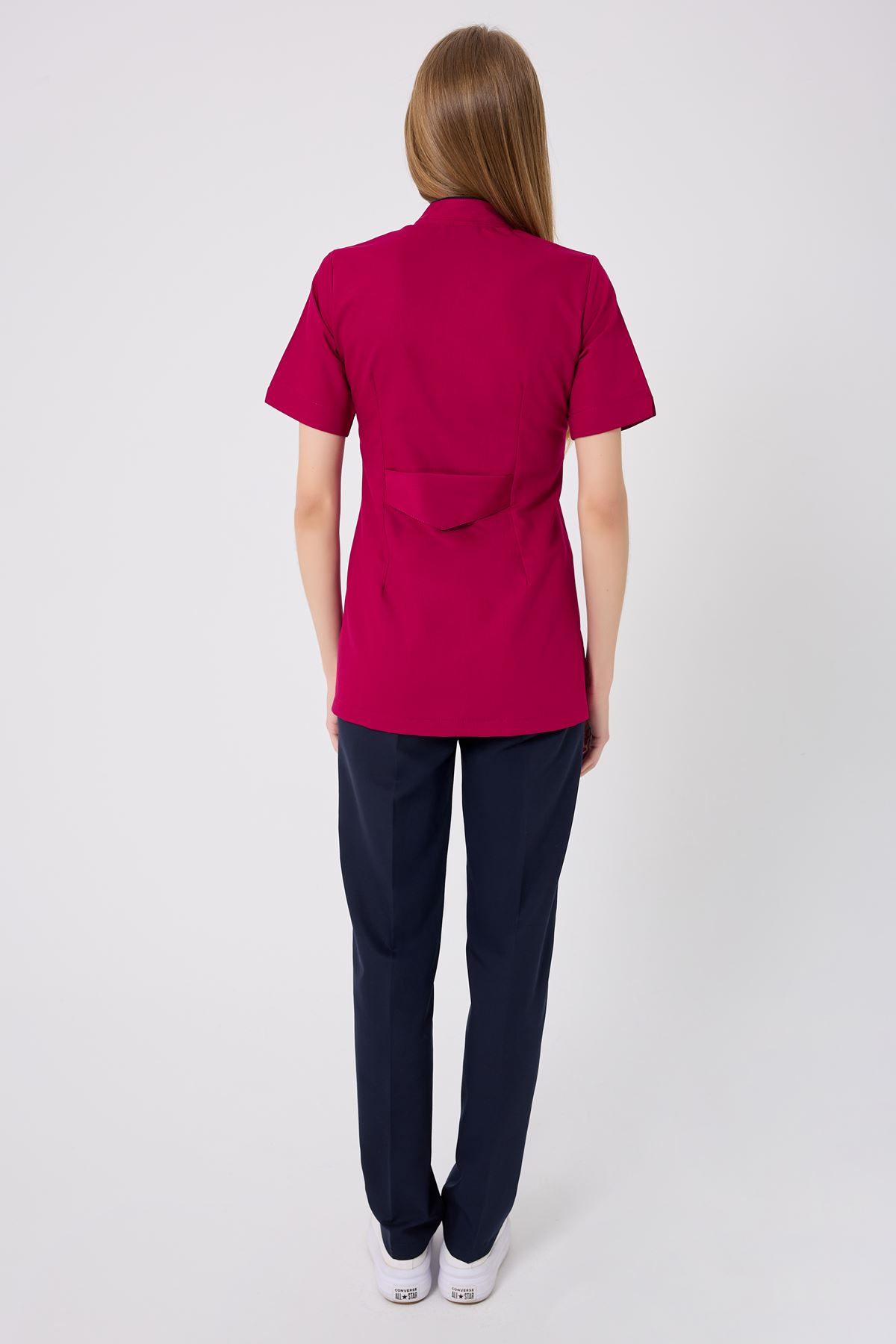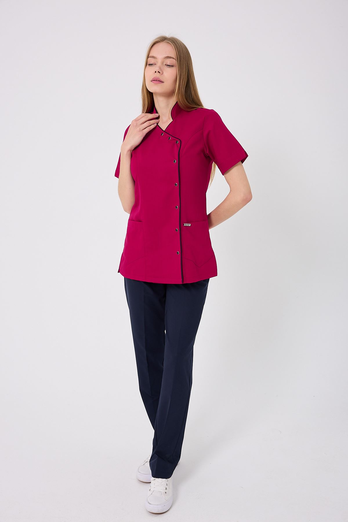 Likralı viskon karışımı esnek, hafif ve rahattır. Fuşya ton steril bir görünüm sağlar. Uzun vadede formu bozulmaz. Klinik ortamlarında güvenle tercih edilir.