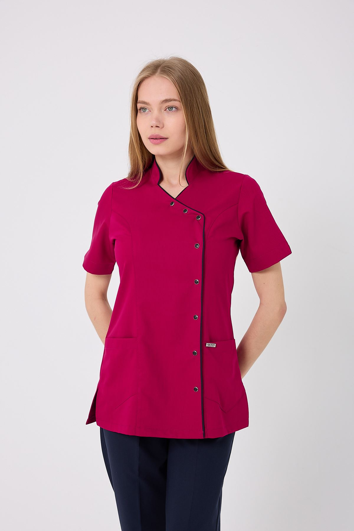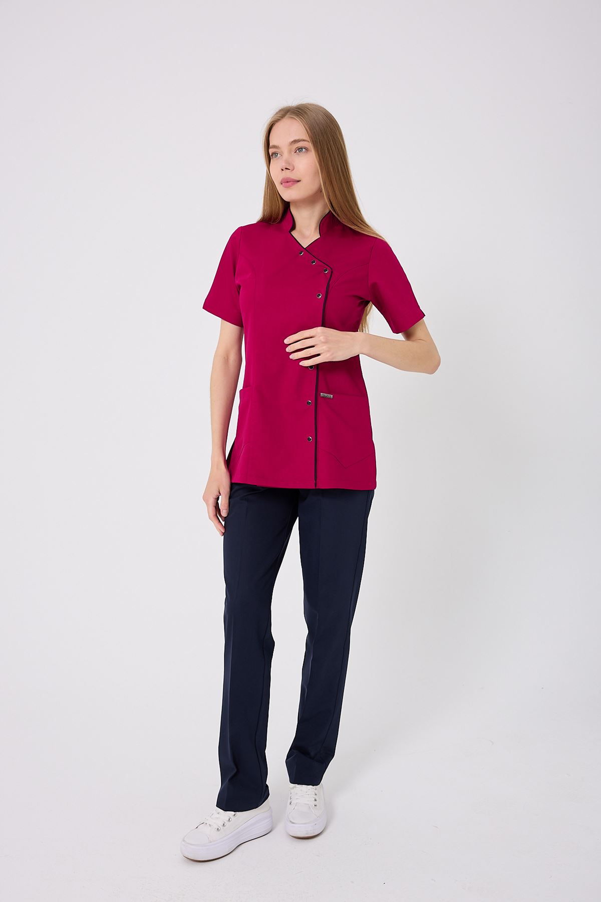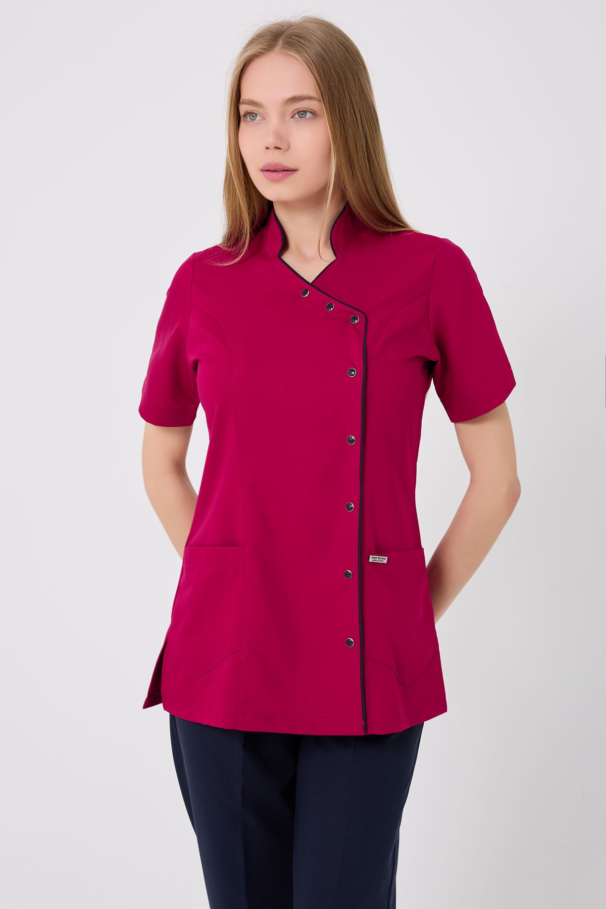 Likralı viskon karışımı esnek, hafif ve rahattır. Fuşya ton steril bir görünüm sağlar. Uzun vadede formu bozulmaz. Klinik ortamlarında güvenle tercih edilir.