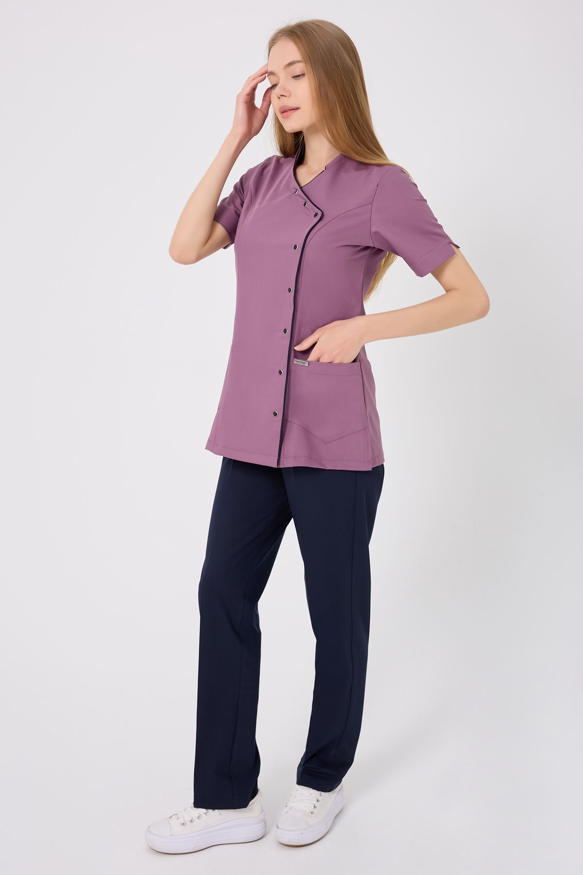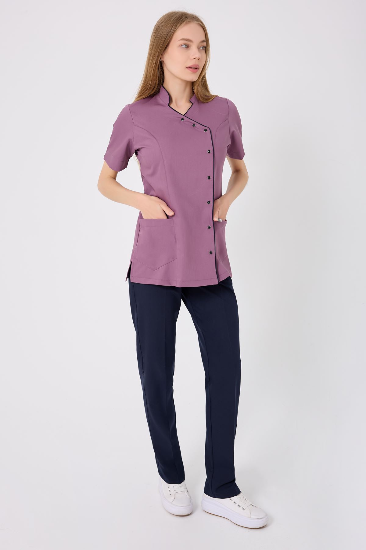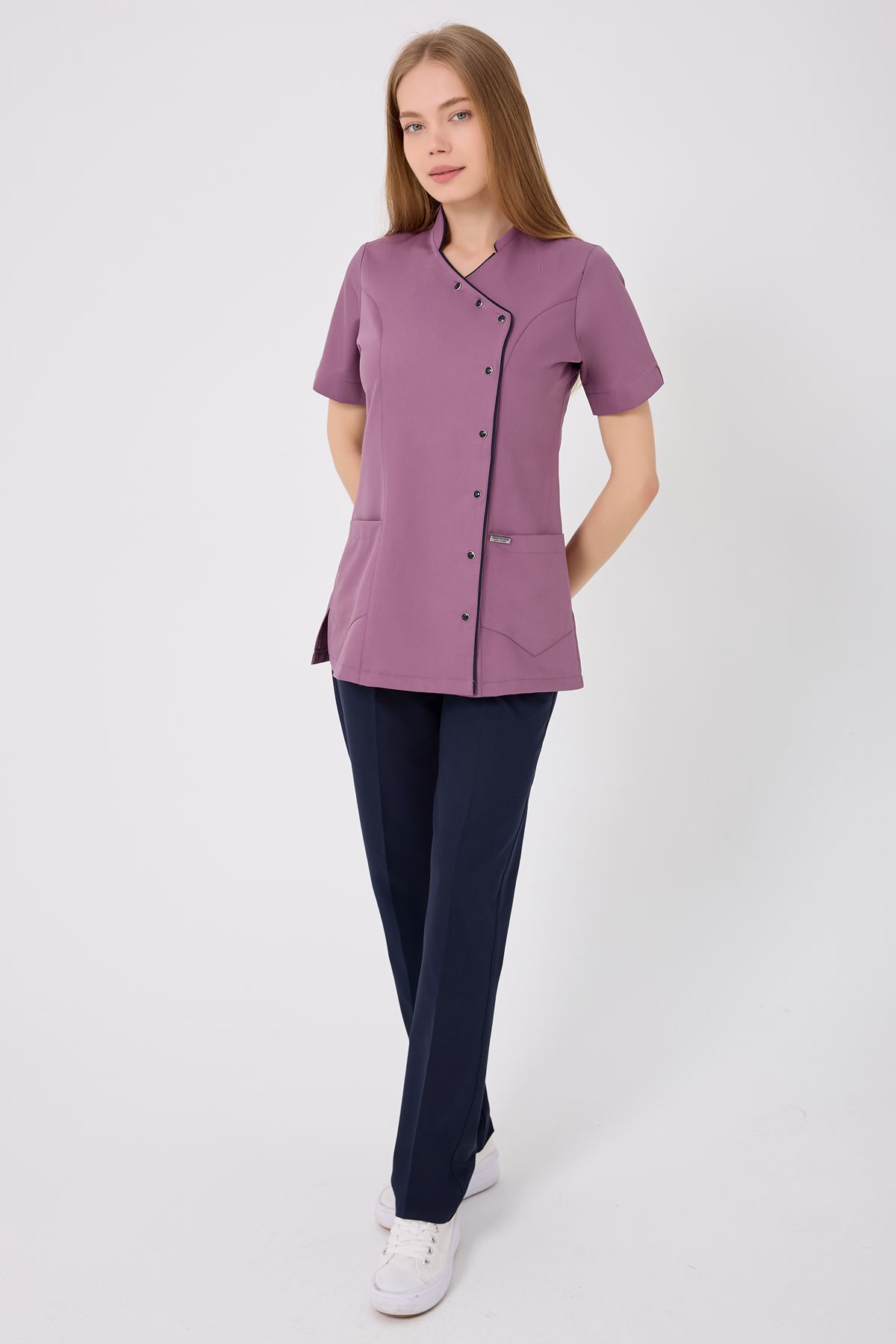 Kruvaze Biyeli Kadın Takım Leylak; zarif görünümü, dayanıklı kumaşı ve rahat kalıbı ile uzun süreli kullanıma uygundur. Endüstriyel yıkamalarda bile formunu korur. Cerrahlar, doktorlar, hemşireler için güvenilir bir seçenektir. Modern çizgileriyle profesyonel şıklığı destekler.