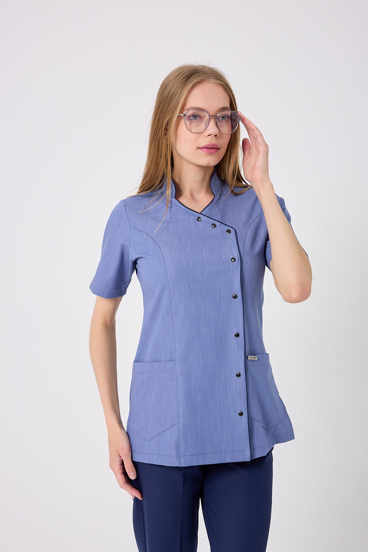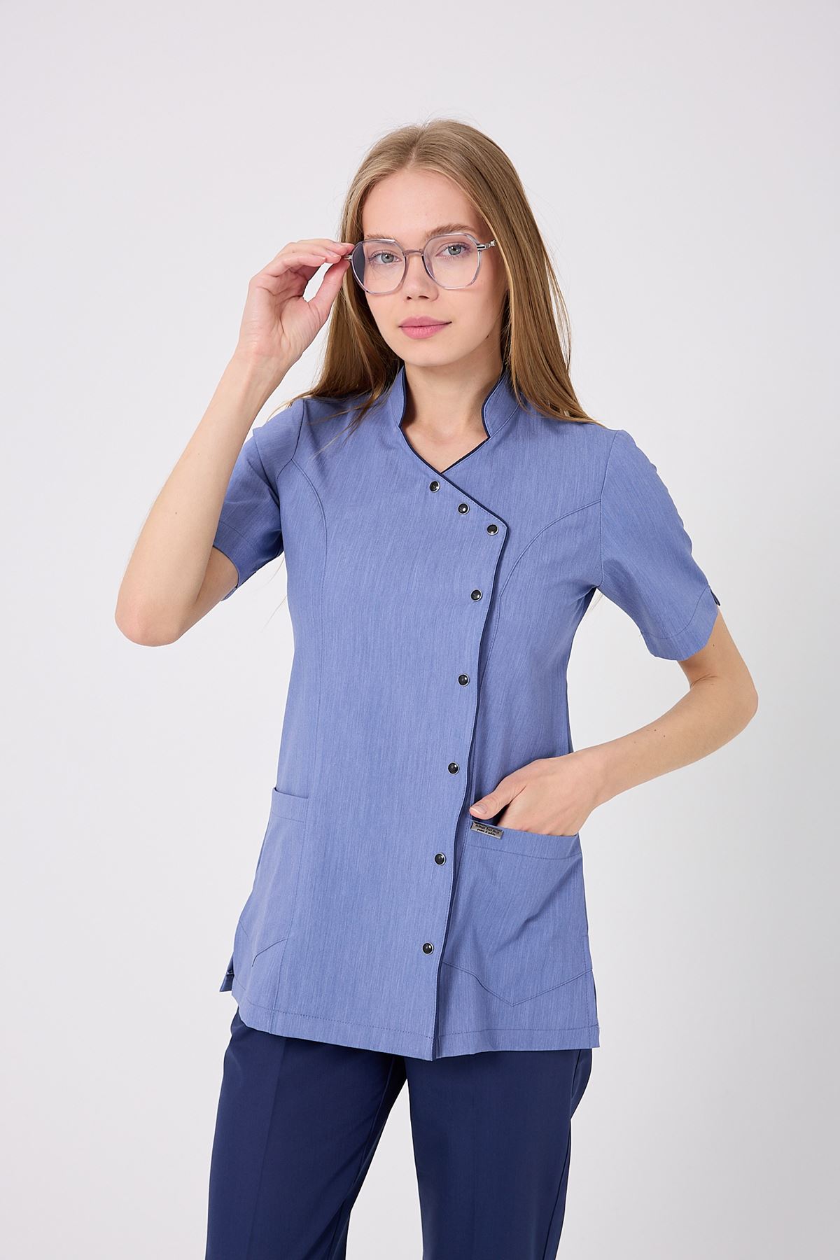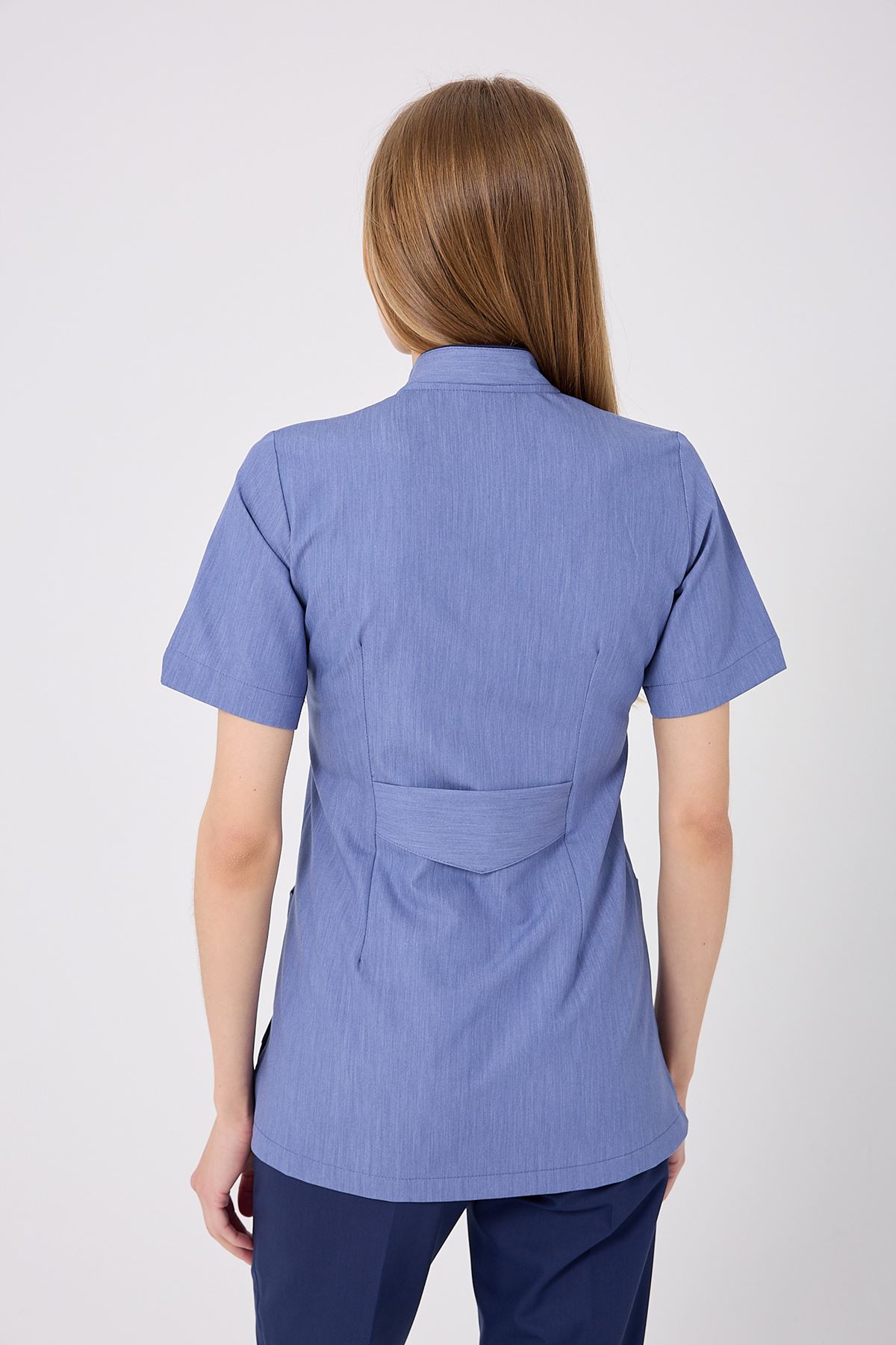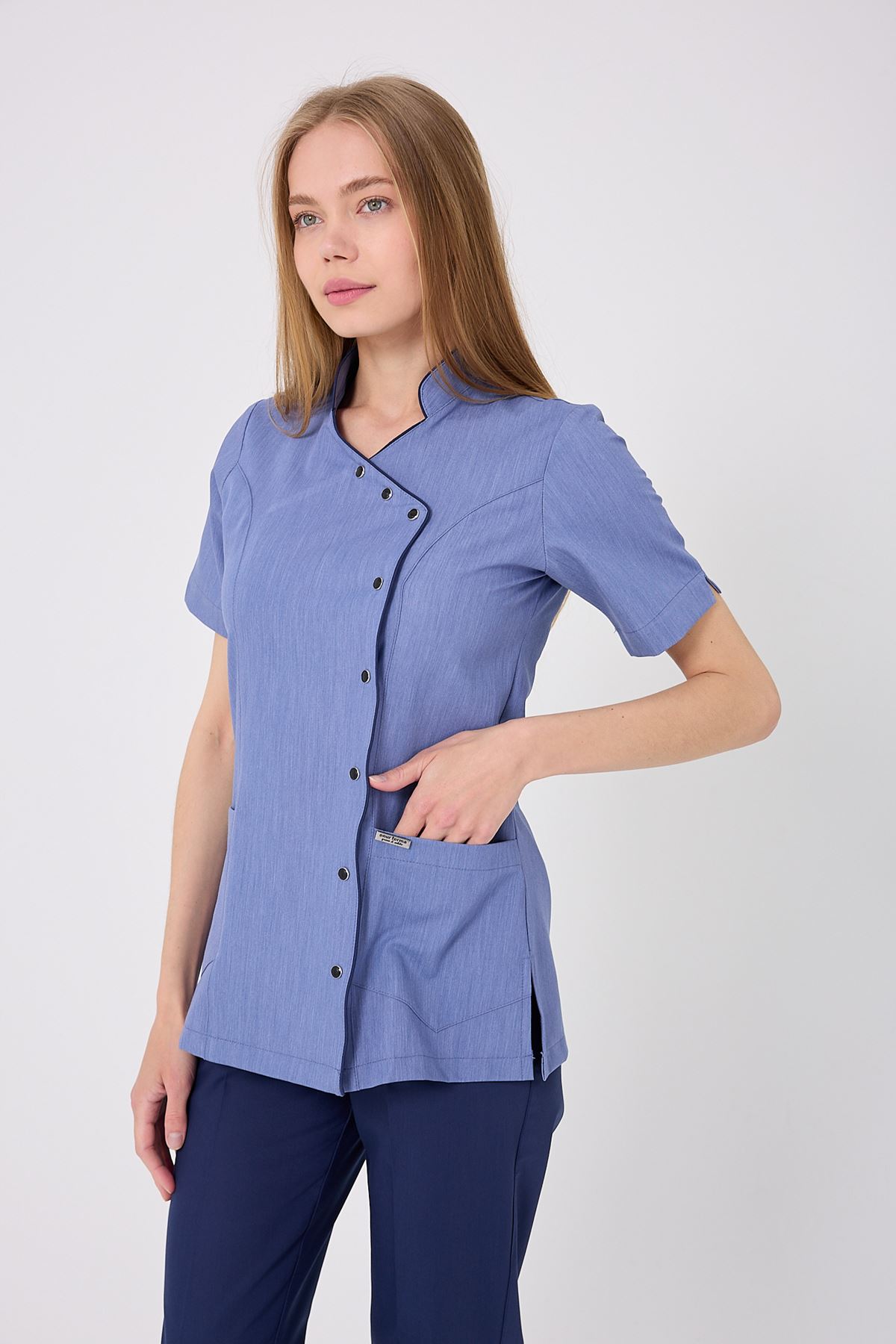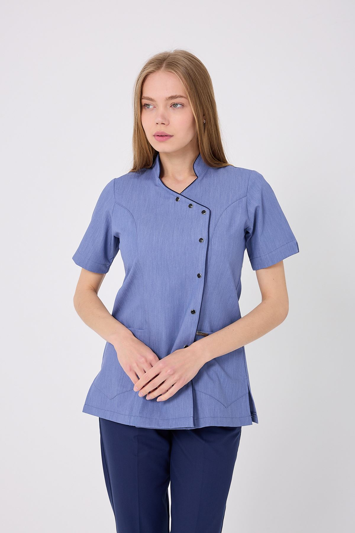 Kravaze İndigo Biyeli Kadın Üst; özgün rengi, konforlu formu ve şık biyeli tasarımıyla fark yaratır. Klinik ve hastane ortamlarında uzun süreli kullanıma uygundur. Kumaşının dayanıklılığı sayesinde formu korunur, çalışma şıklığınız tamamlanır.