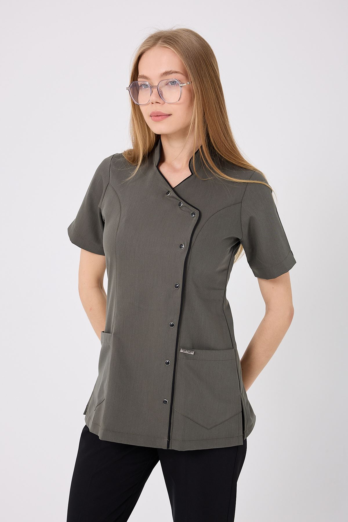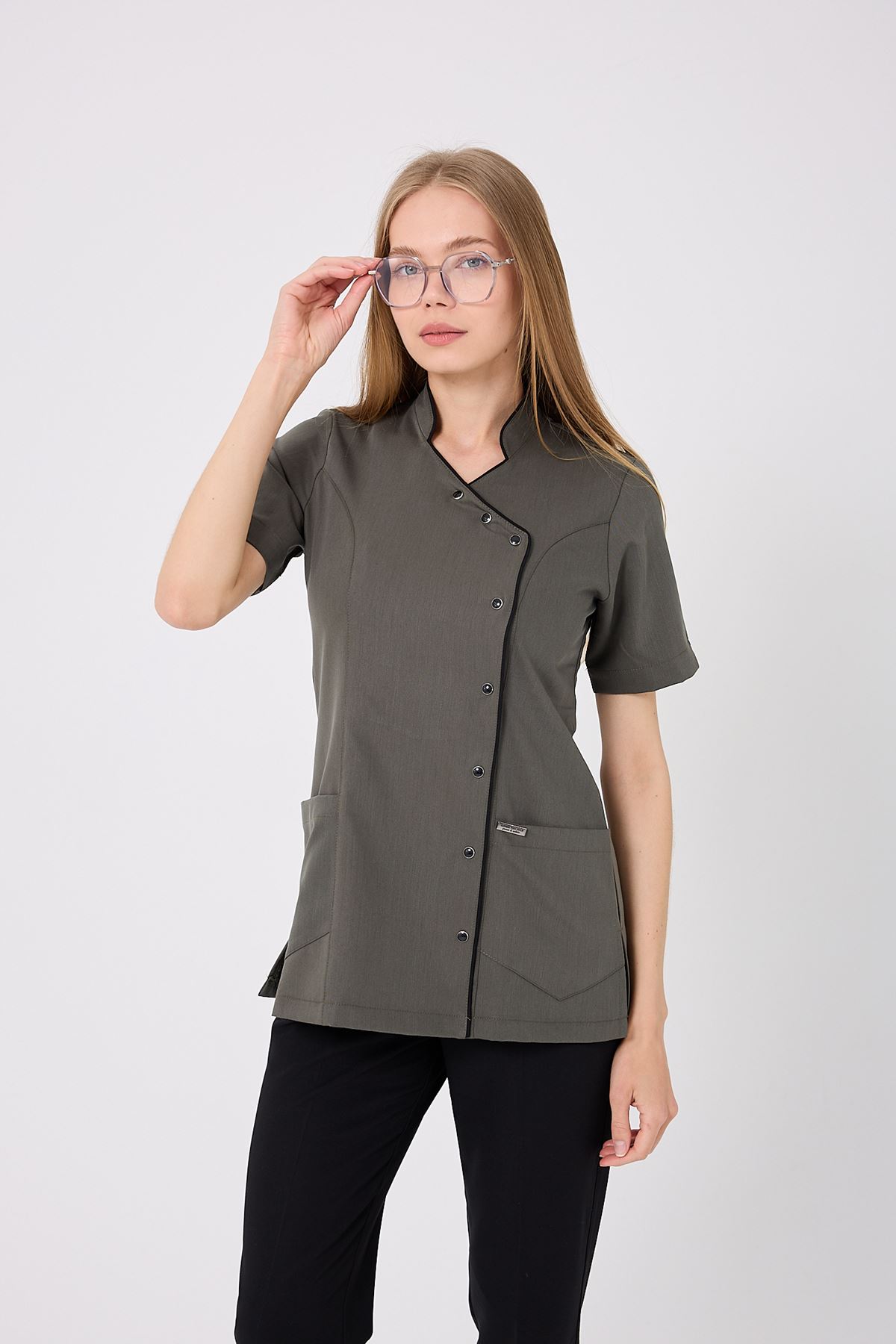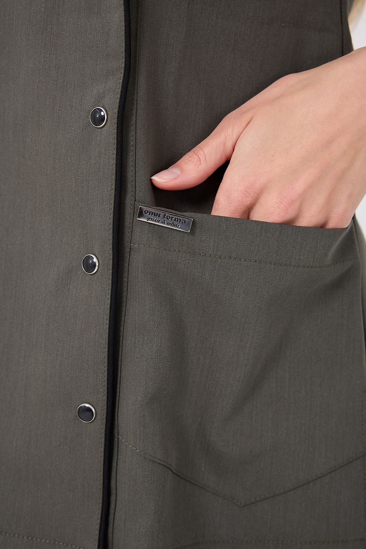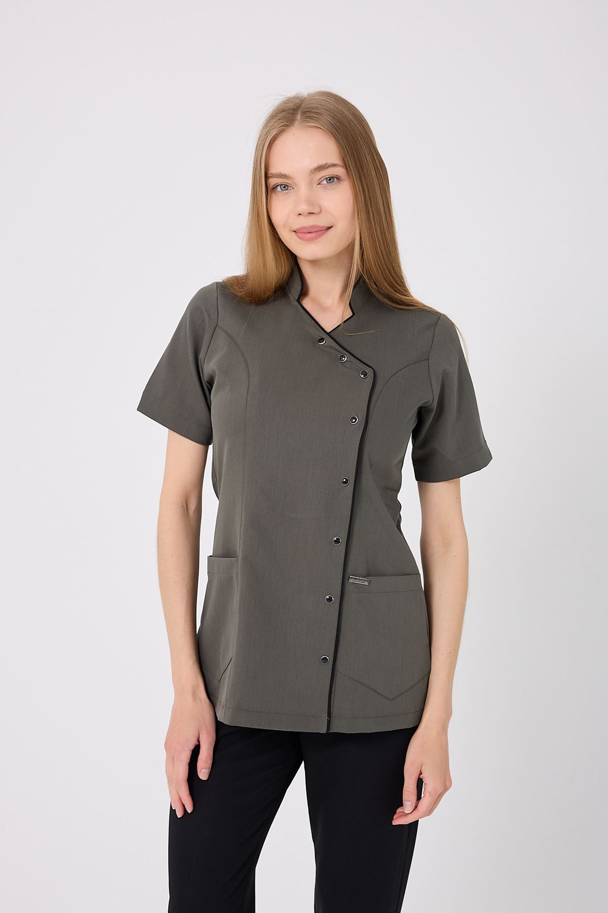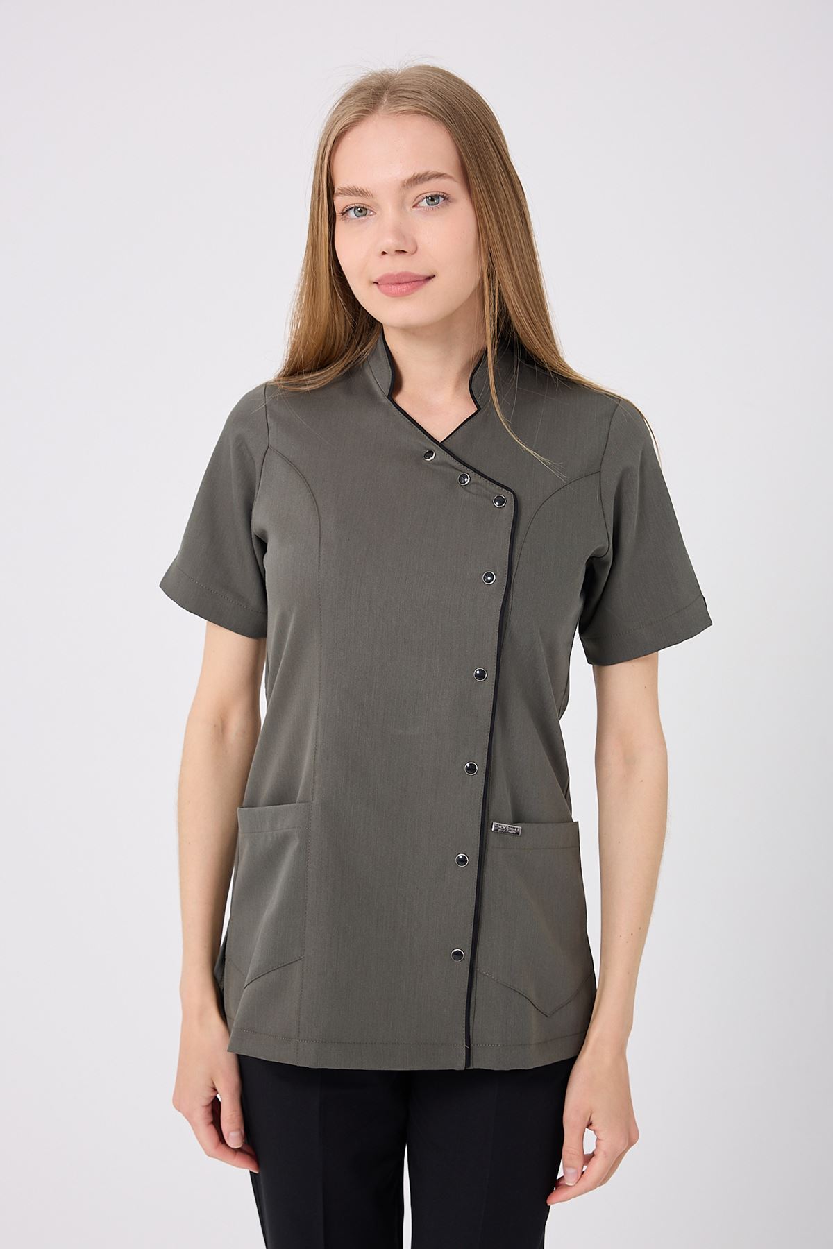 Kravaze Siyah Biyeli Kadın Üst Haki; doğa tonlarının huzurunu fonksiyonel detaylarla buluşturur. Klinik, hastane ve laboratuvar ortamlarında düzenli bir görünüm sağlar. Endüstriyel yıkamalara dayanıklı kumaşı sayesinde uzun ömürlüdür. Profesyonel şıklık ve rahatlığı bir arada arayan sağlık çalışanları için ideal bir tercihtir.