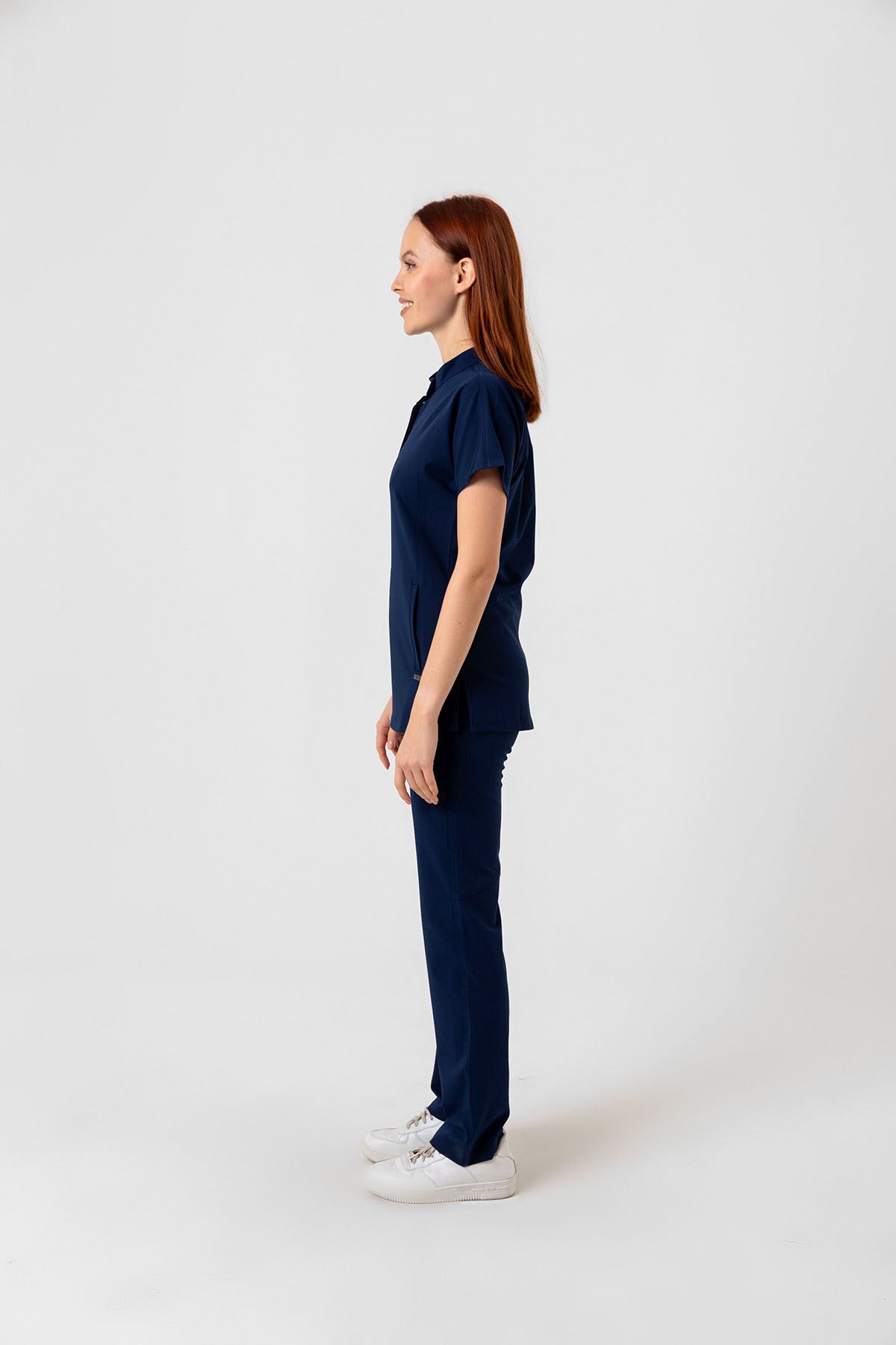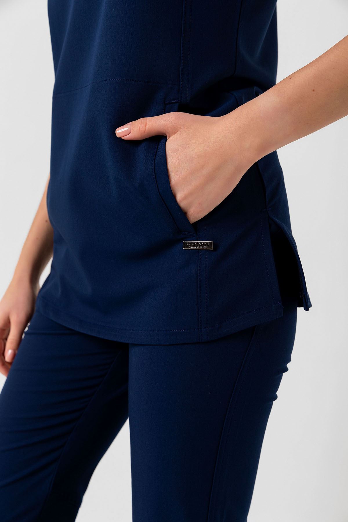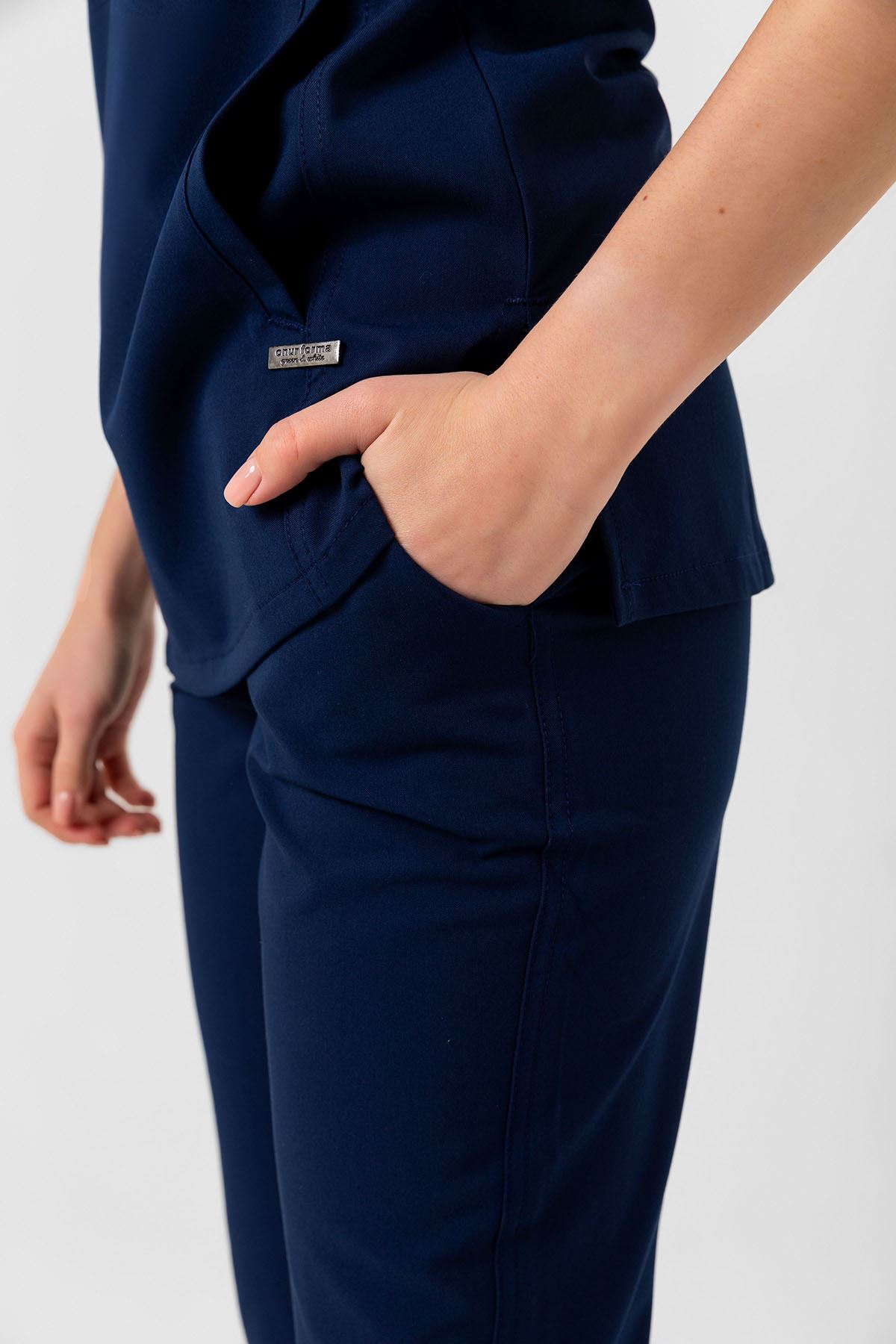 New Line Kadın Medikal Takım, derin İndigo tonu ile zamansız bir şıklık sunar. Viskon karışımlı kumaşı %11-14 rutubet toplar, %80’e kadar su emer ve %15-30 esneme oranıyla konfor sağlar. Hafif dokusu cilde nefes aldırır, uzun vardiyalarda ferahlık hissi verir. İndigo rengi profesyonel duruşu öne çıkarır.