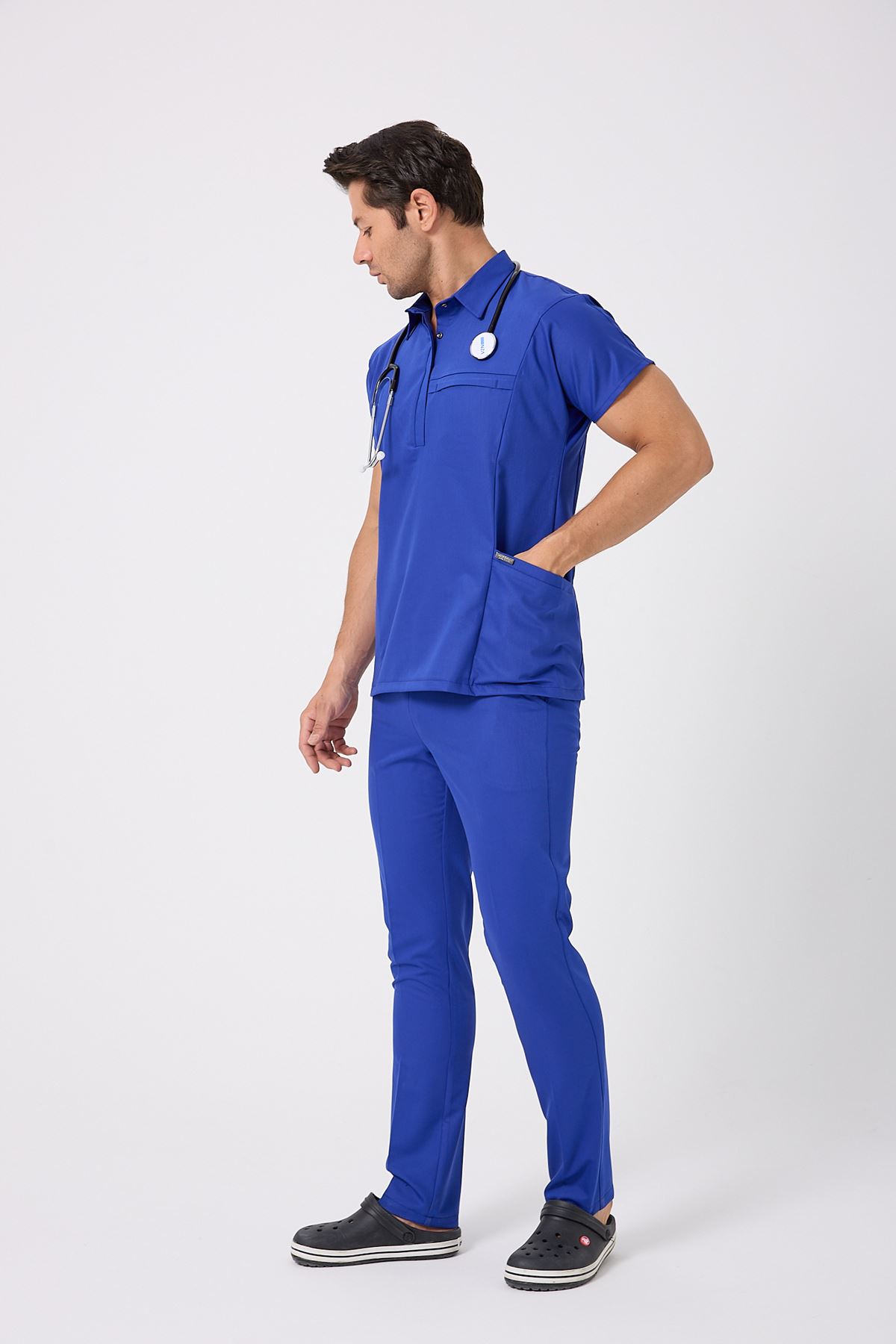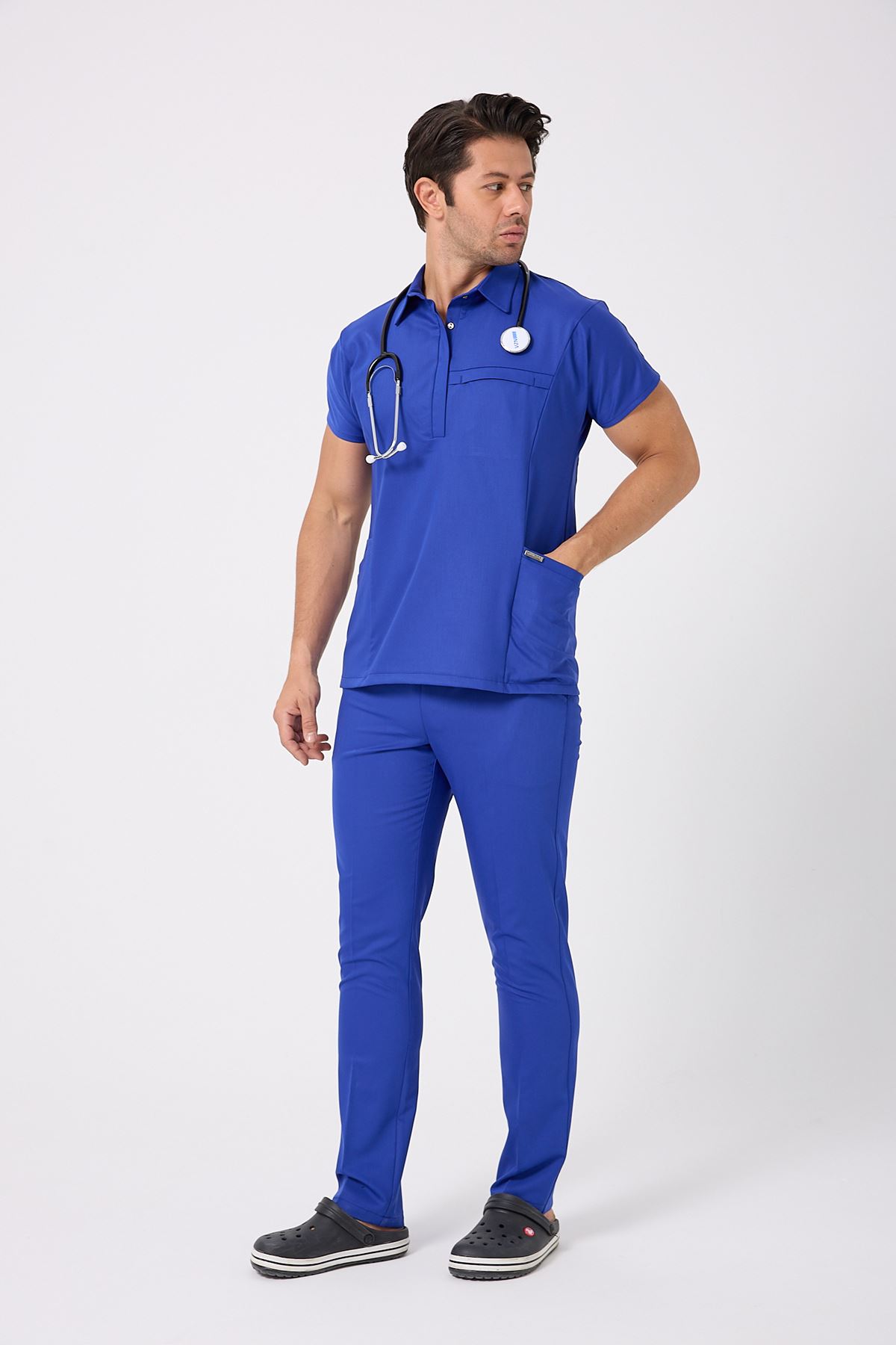 Planet Erkek Takım Saks Mavi; klasik şıklık ile modern rahatlığı bir araya getirir. Klinik, hastane ve laboratuvar gibi tüm medikal alanlarda konforlu kullanım sağlar. Endüstriyel yıkamalara dayanıklı kumaşı formunu uzun süre korur. Stil ve rahatlığı aynı anda önemseyen profesyoneller için vazgeçilmezdir.