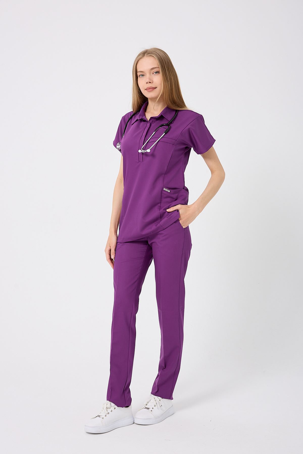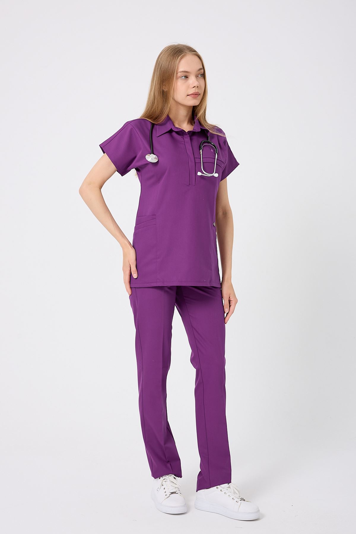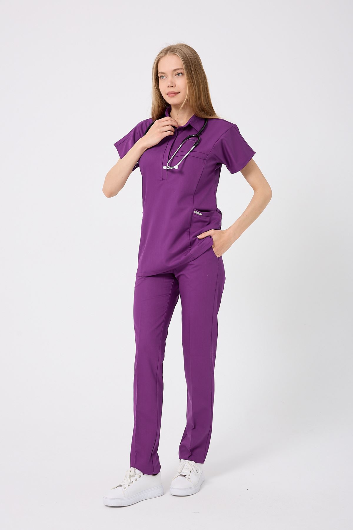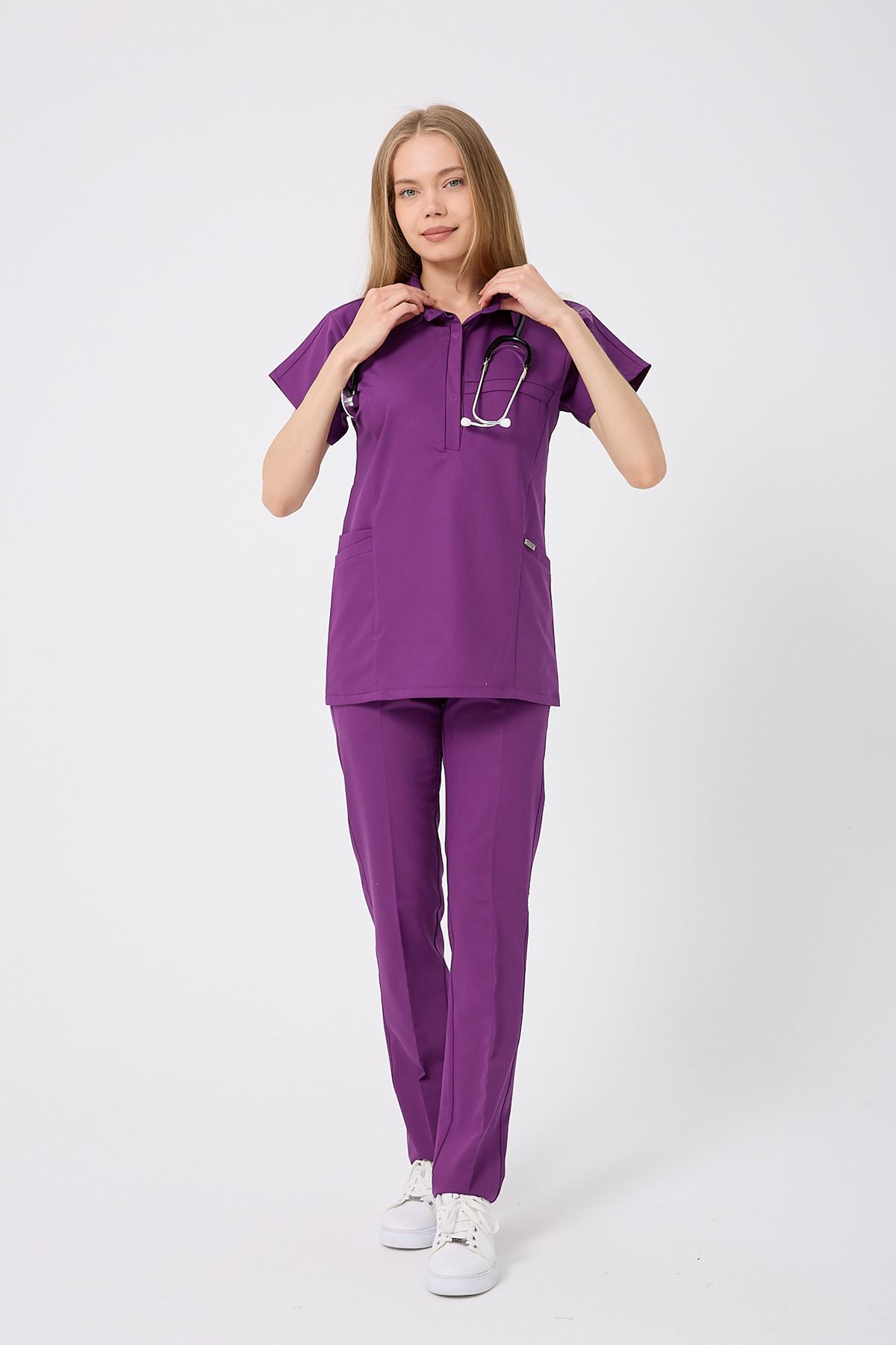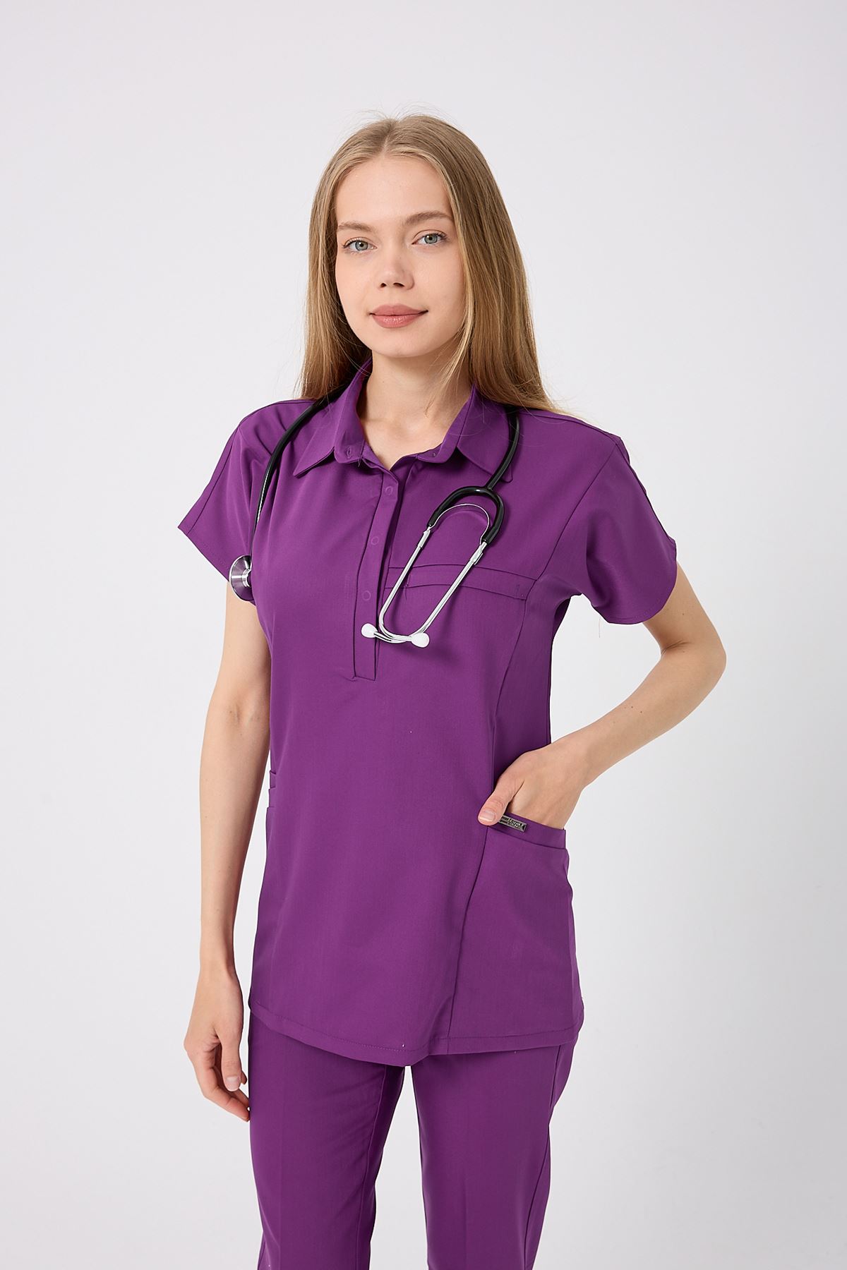 Planet koleksiyonunun Eflatun takımı; sıcak tonları, zamansız kalıbı ve kaliteli kumaşıyla dikkat çeker. Kliniklerde veya muayenehanelerde şıklığıyla fark yaratır. Sık yıkamalarda formunu korur, uzun ömürlü kullanım sunar. Sadelikten vazgeçmeyen sağlık çalışanları için zarif bir seçenektir.