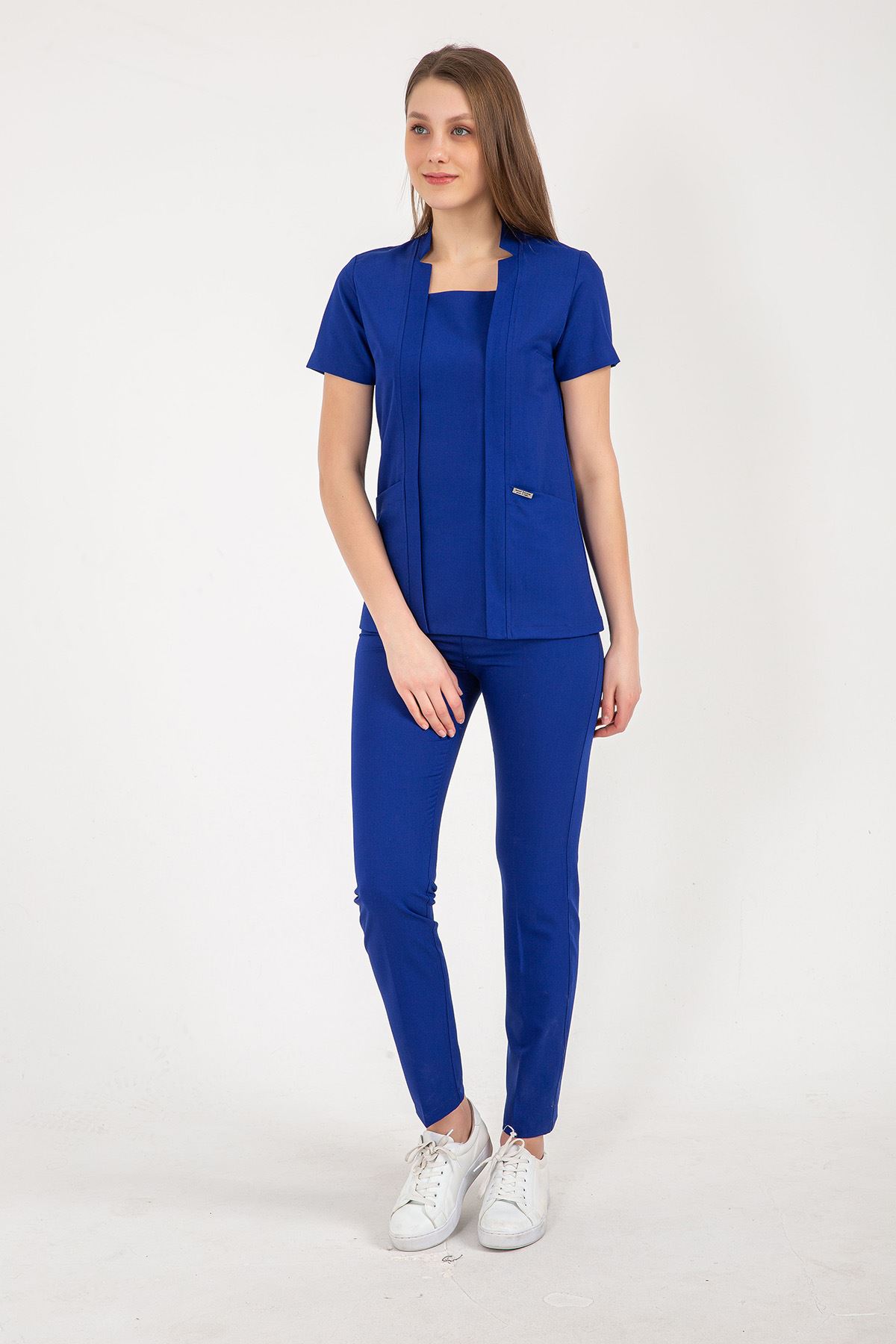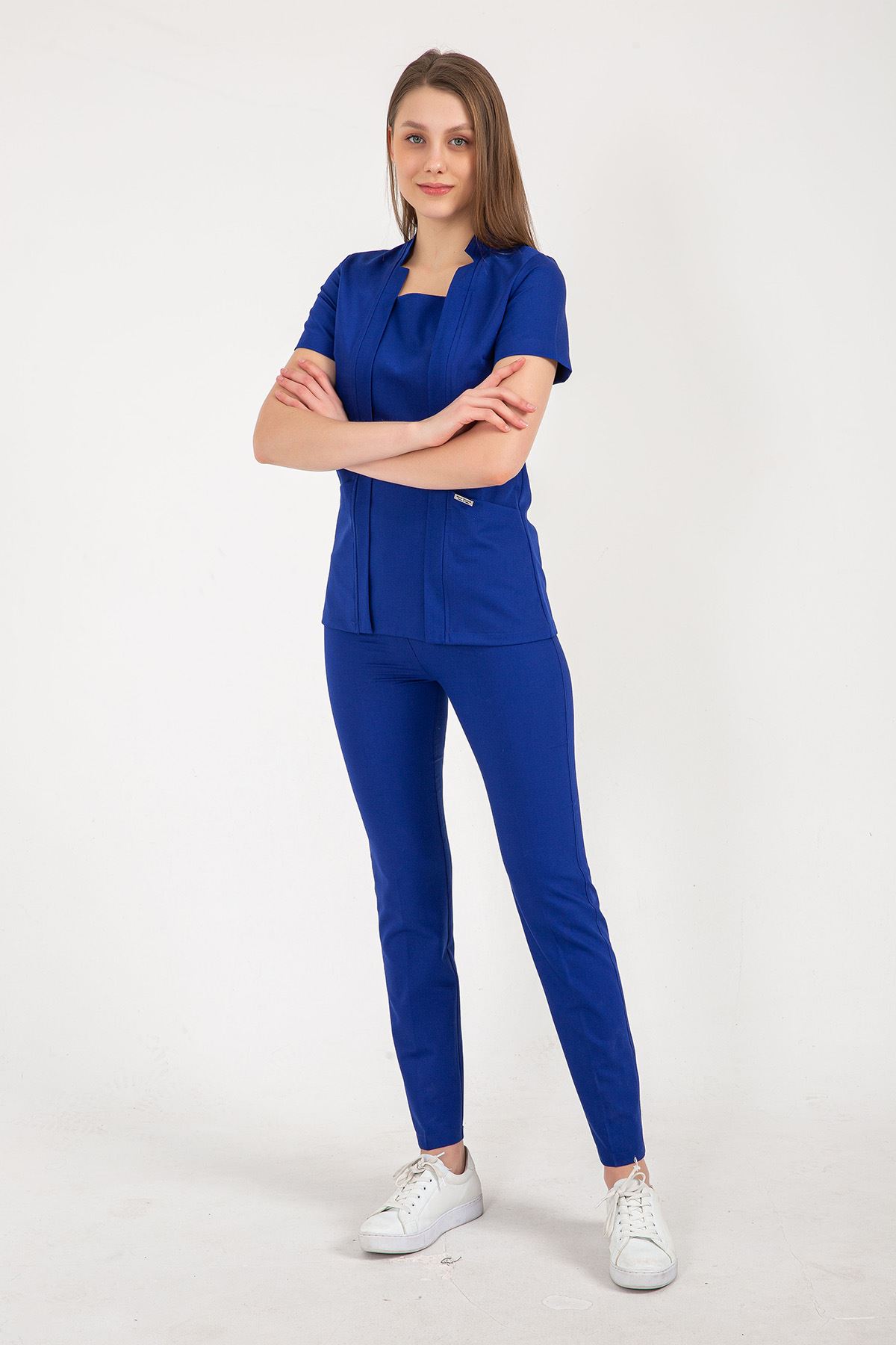 Square Collor Style Koleksiyonu’nun Saks Mavi takımı; zamansız tasarımı ve endüstriyel dayanıklılığıyla uzun ömürlüdür. Klinik, hastane ve polikliniklerde şık bir görünüm sunar. Modern kare yaka kesimi ve işlevsel detaylarıyla fark yaratır. Klasik ama enerjik bir stil arayan kadın sağlık profesyonelleri için idealdir.