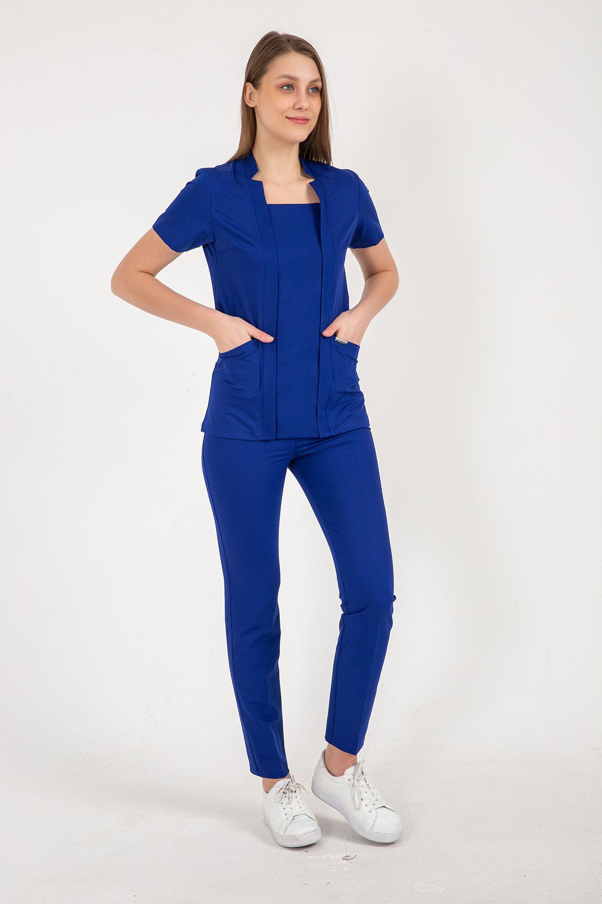 Square Collor Style Kadın Medikal Takım Saks Mavi/Dazzlıng Blue