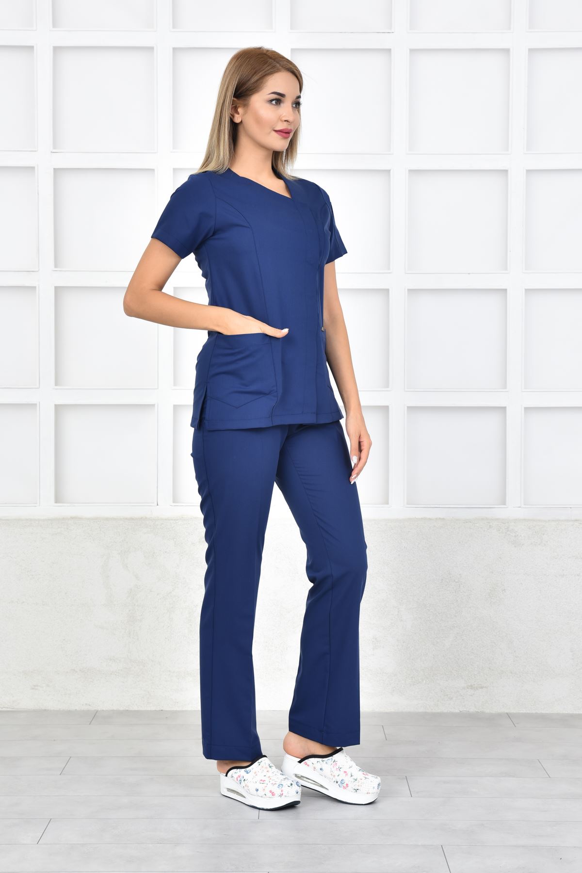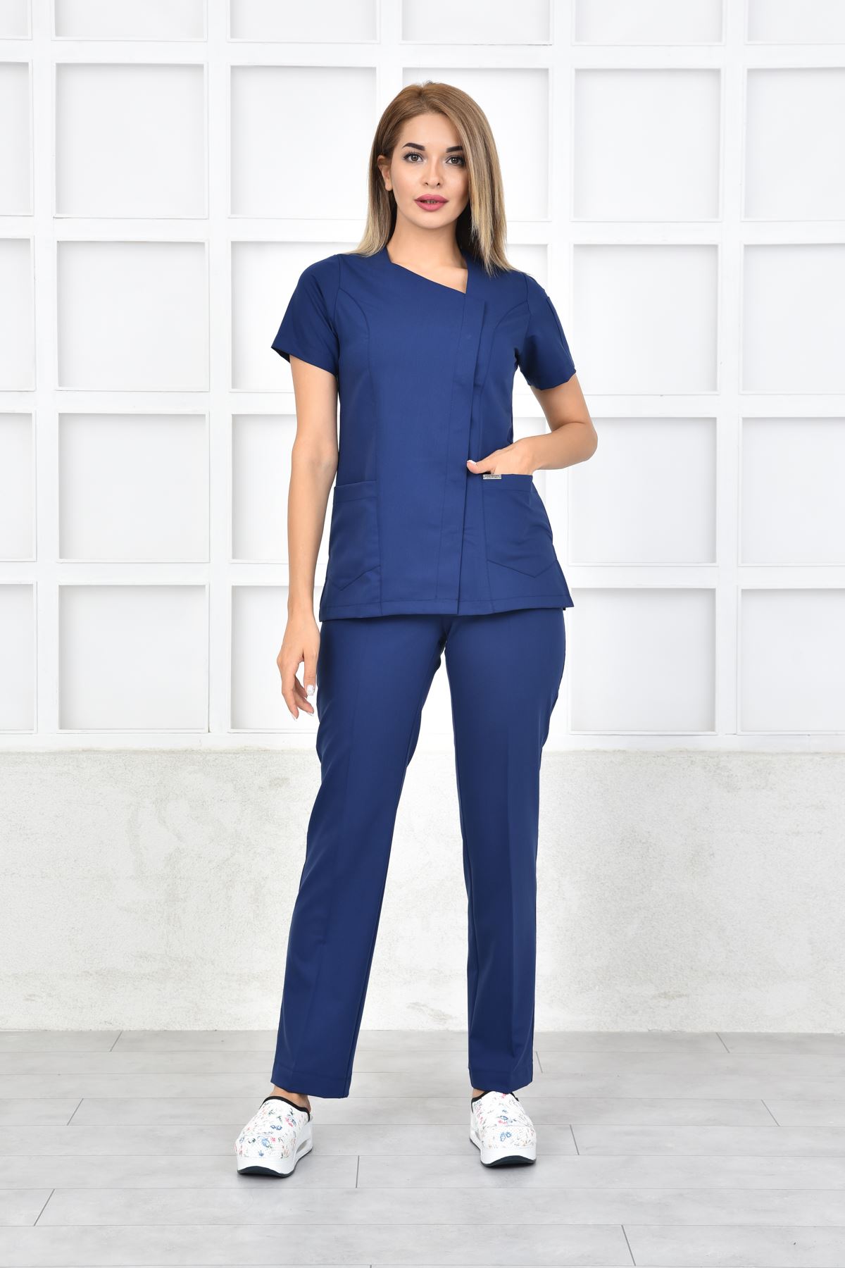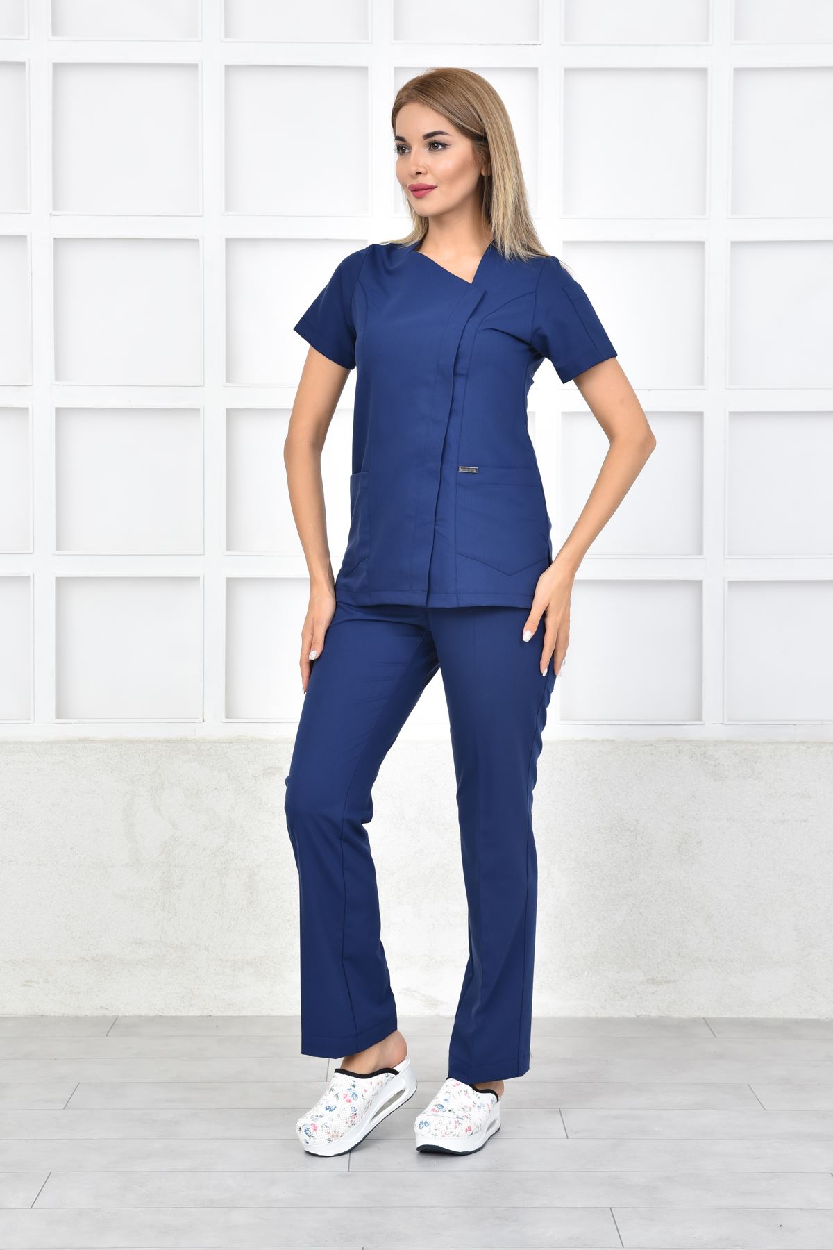 White Kadın Takım - İndigo; rahat kalıbı, sade çizgileri ve yüksek performans kumaşıyla profesyonel bir kullanım sunar. Klinik ve hastane ortamlarında, tüm sağlık profesyonellerine uygun şık bir alternatiftir.