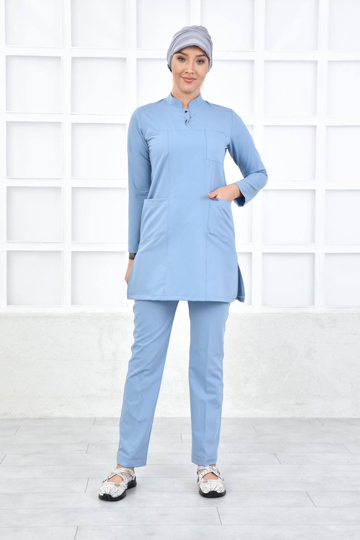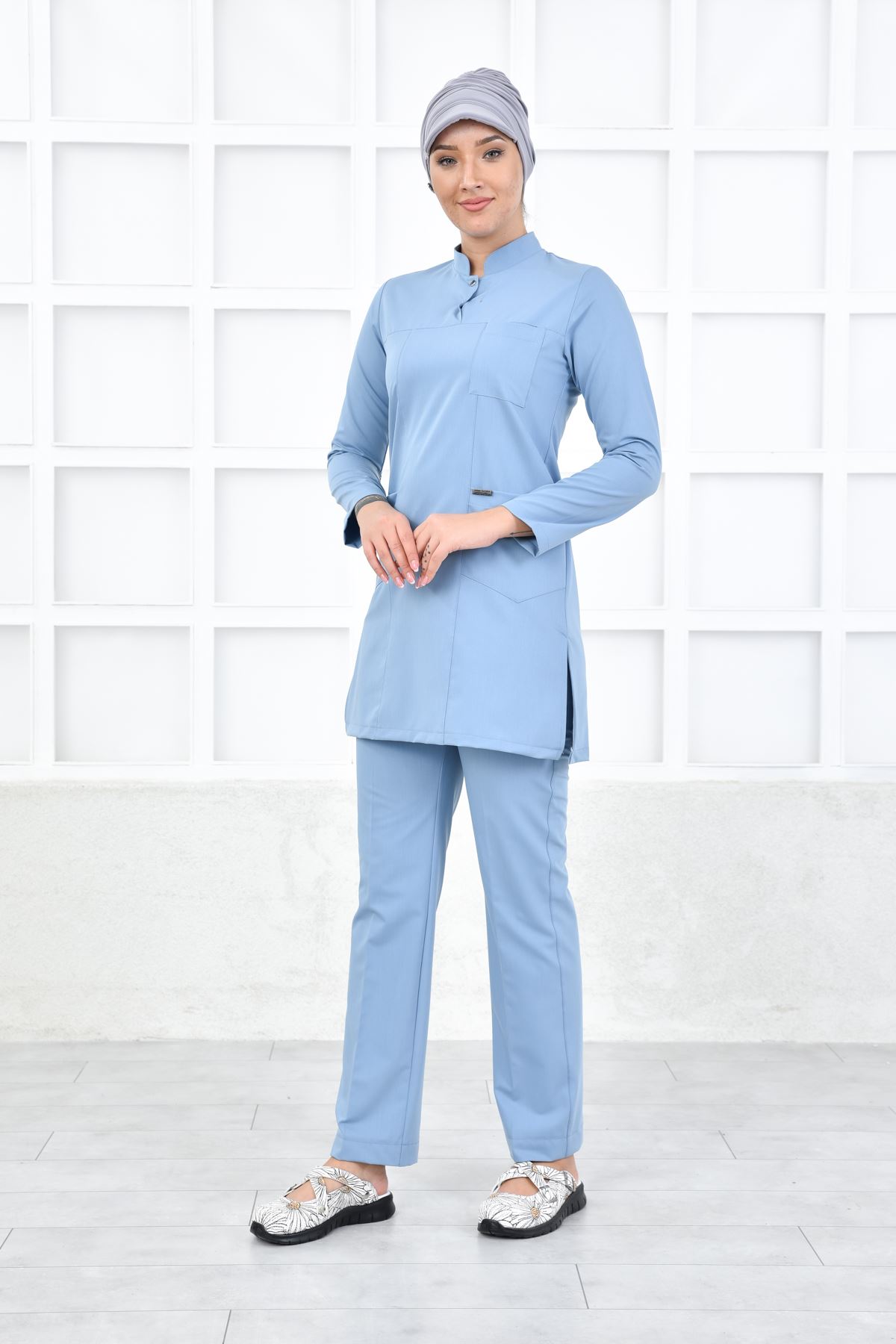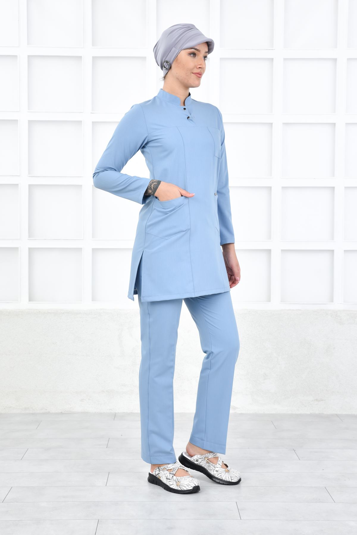 Onur Forma Yarım Hakim Yaka Kadın Tesettür Medikal Takım  Bulut Mavi