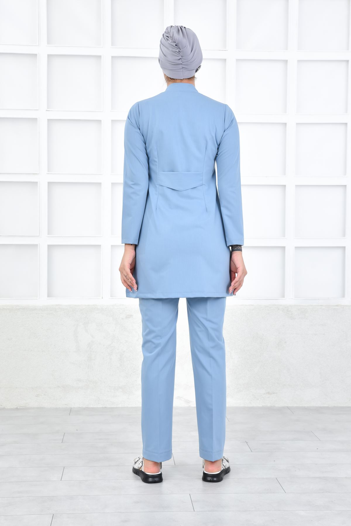 Yarım Hakim Yaka Kadın Tesettür Takım - Bulut Mavi/Alaskan Blue
